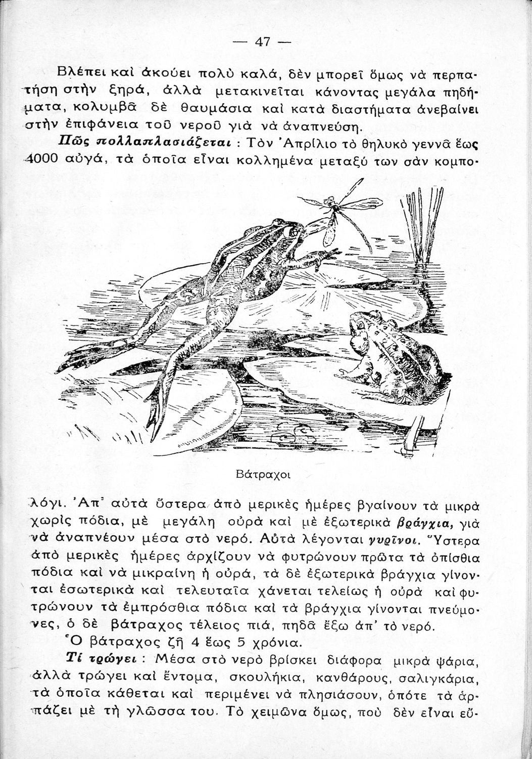 Μαθητικό βοήθημα της Δ΄ Δημοτικού για το μάθημα της Φυσικής Ιστορίας. Περιέχει πληροφορίες για τη φυτολογία, ορυκτολογία και τη ζωολογία. Το βιβλίο έχει εικόνες, οι οποίες διευκολύνουν τη διδασκαλία. Ο λόγος των κειμένων είναι απλός και κατανοητός για τους μαθητές.