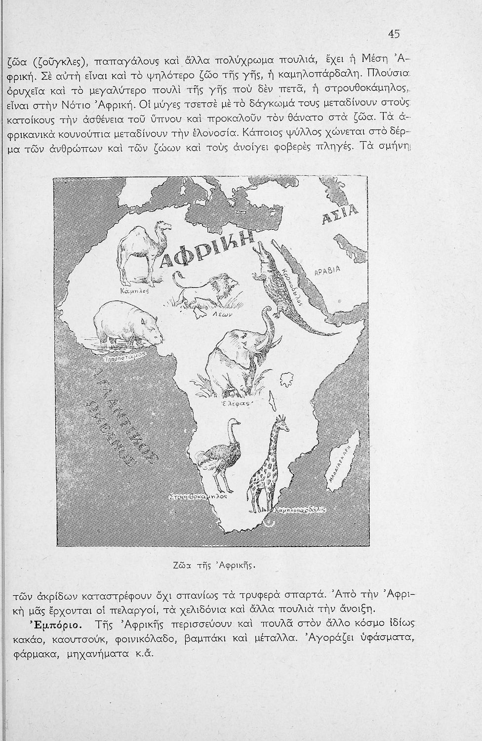 Σχολικό εγχειρίδιο Γεωγραφίας Ε΄ Δημοτικού που περιλαμβάνει στοιχεία φυσικής, μαθηματικής και πολιτικής γεωγραφίας και εστιάζει στη γεωμορφολογική και γεωπολιτική κατάσταση της Ασίας, της Αφρικής, της Αμερικής