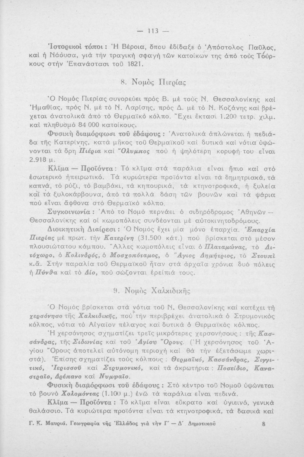 Σχολικό εγχειρίδιο Γεωγραφίας για τη Γ΄, Δ΄ Δημοτικού. Μελετά την Ελλάδα ανά γεωγραφικό νομό με πληροφορίες από το χάρτη της περιοχής και στοιχεία της ιστορίας και της οικονομικής ζωής.