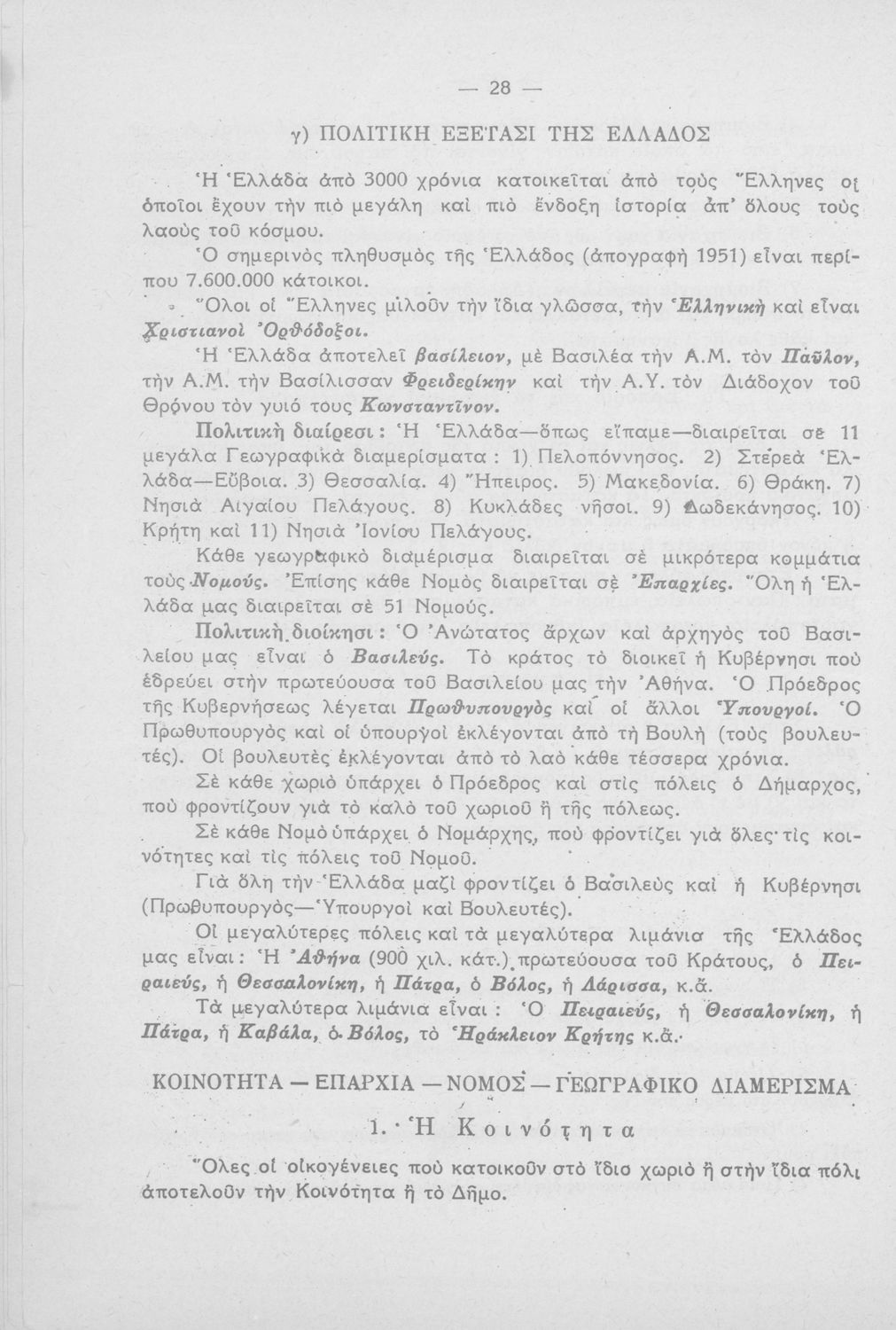 Μαθητικό βοήθημα Γεωγραφίας Γ΄ και Δ΄ Δημοτικού που αποτελεί μια γενική επισκόπηση της Ελλάδας ανά διαμέρισμα και νομό. Περιέχει και στατιστικούς πίνακες.