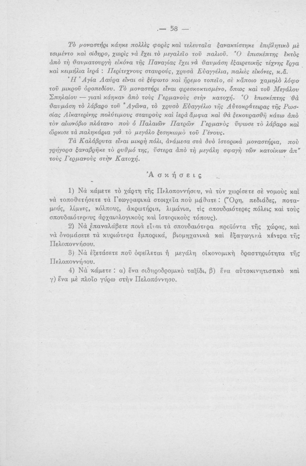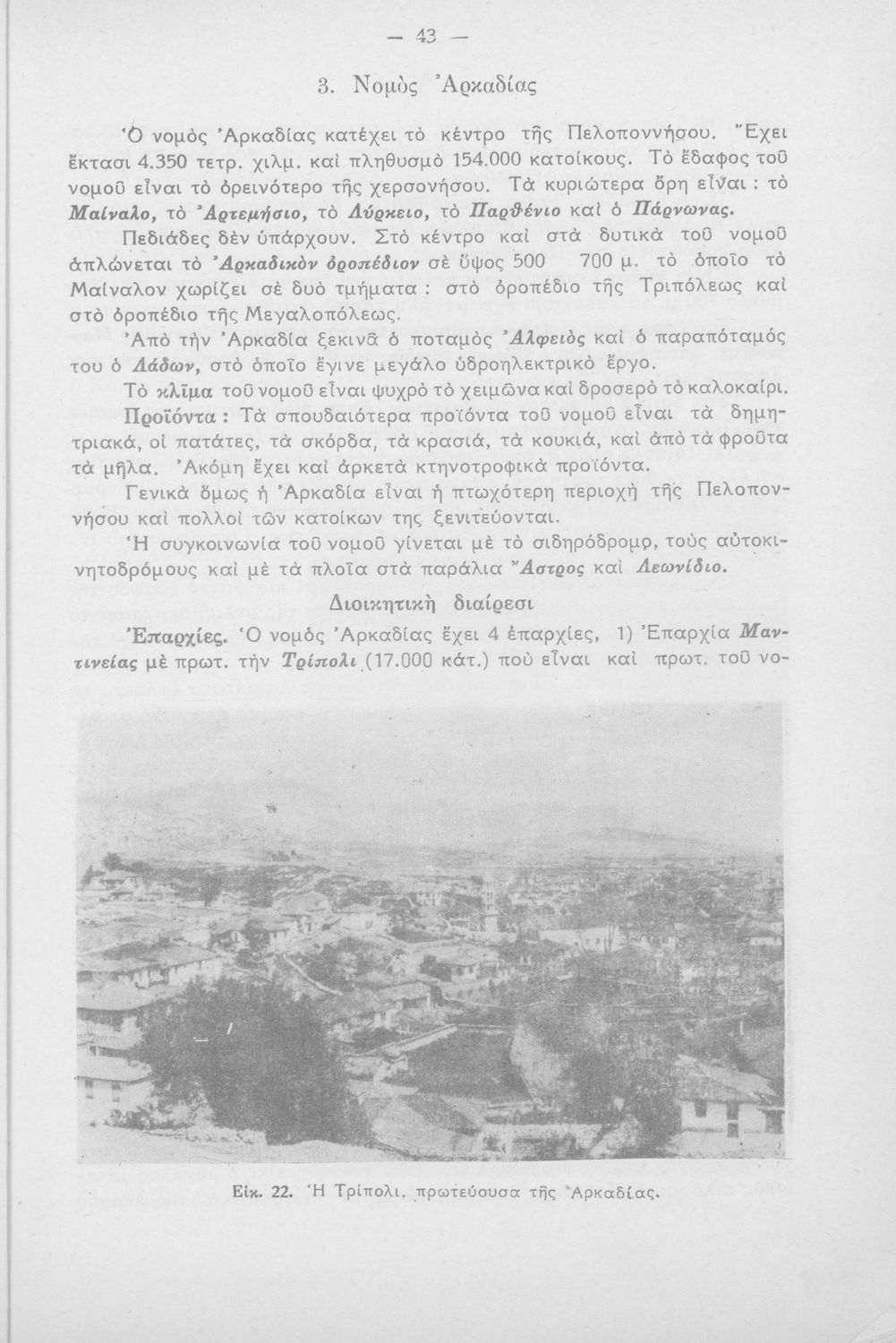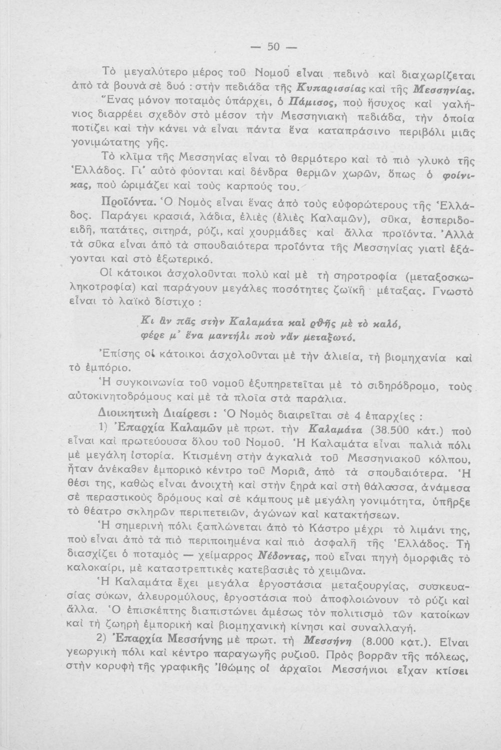 Σχολικό εγχειρίδιο Γεωγραφίας για τη Γ΄, Δ΄ Δημοτικού. Μελετά την Ελλάδα ανά γεωγραφικό νομό με πληροφορίες από το χάρτη της περιοχής και στοιχεία της ιστορίας και της οικονομικής ζωής.