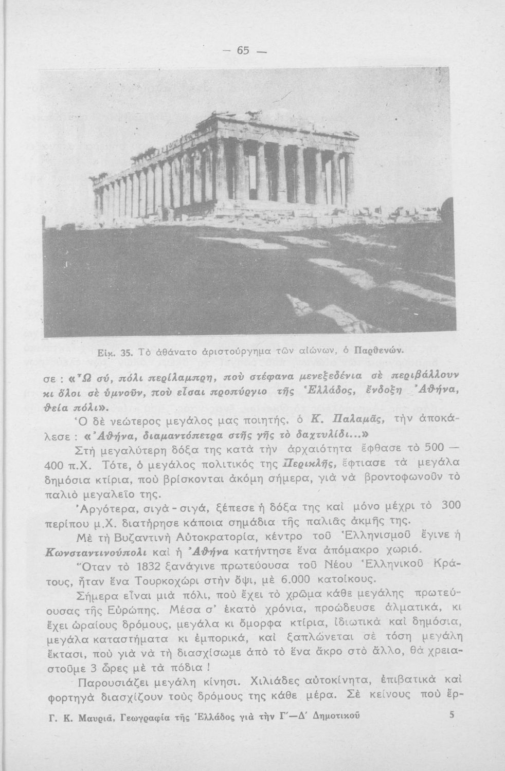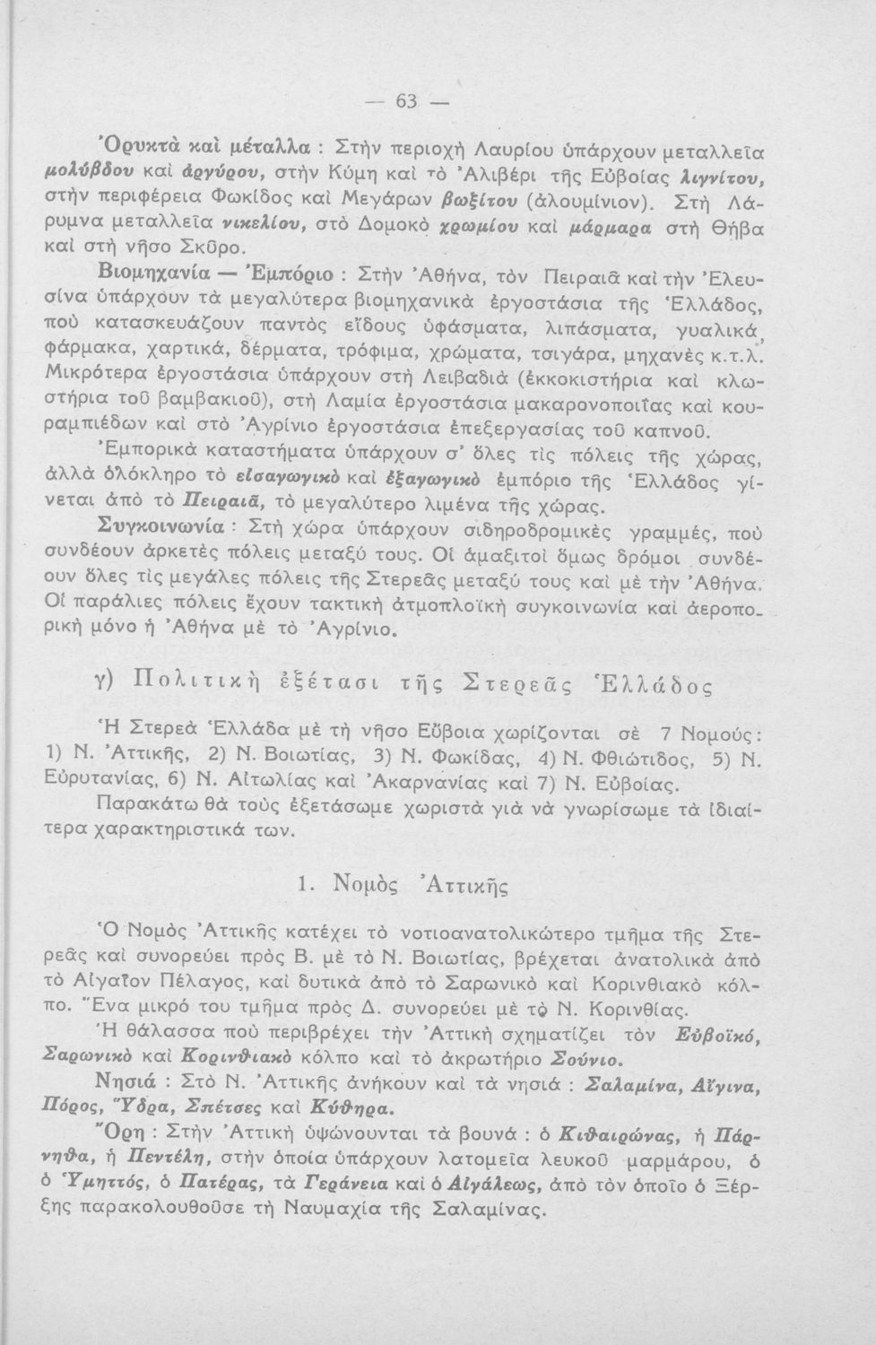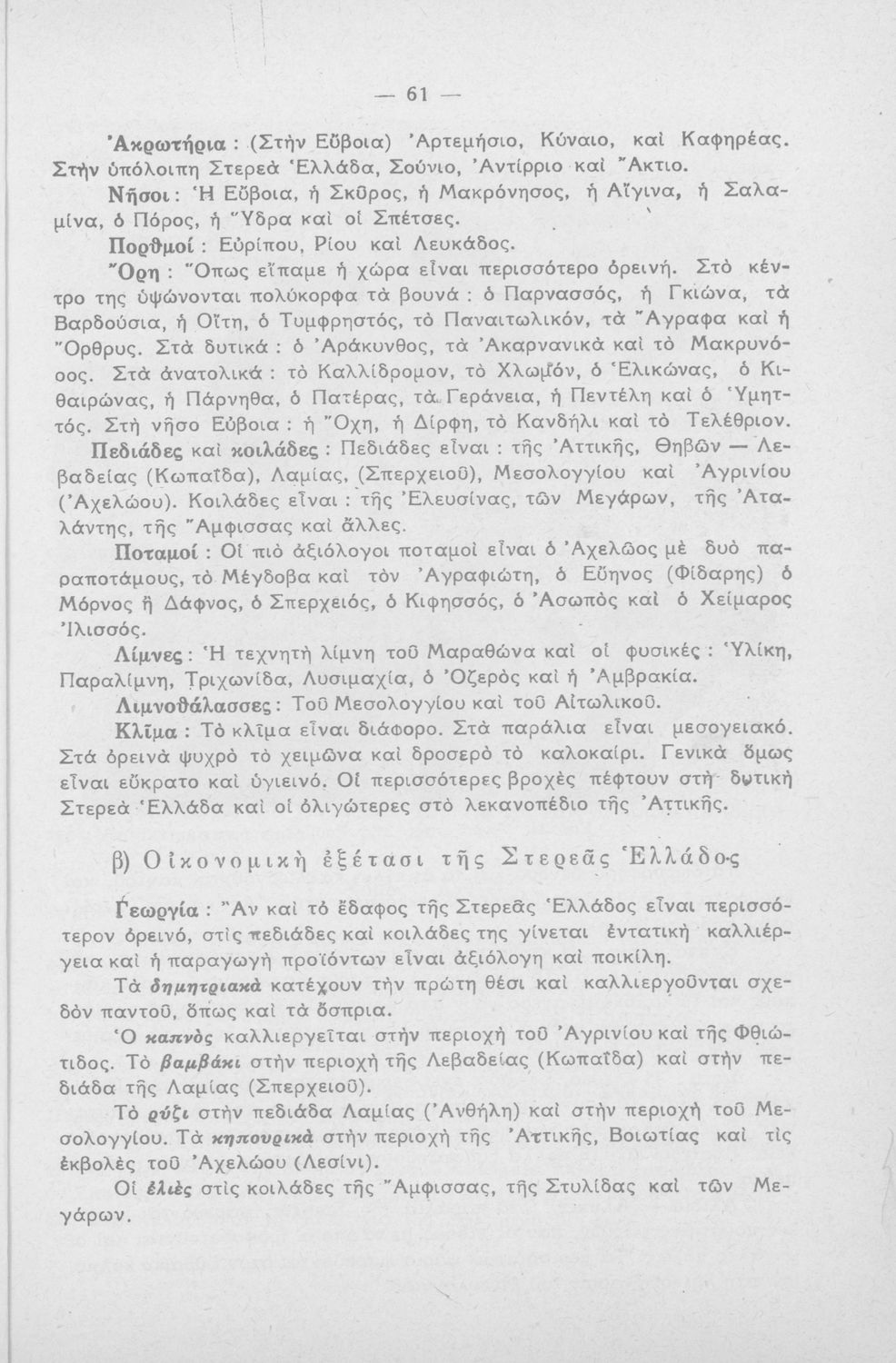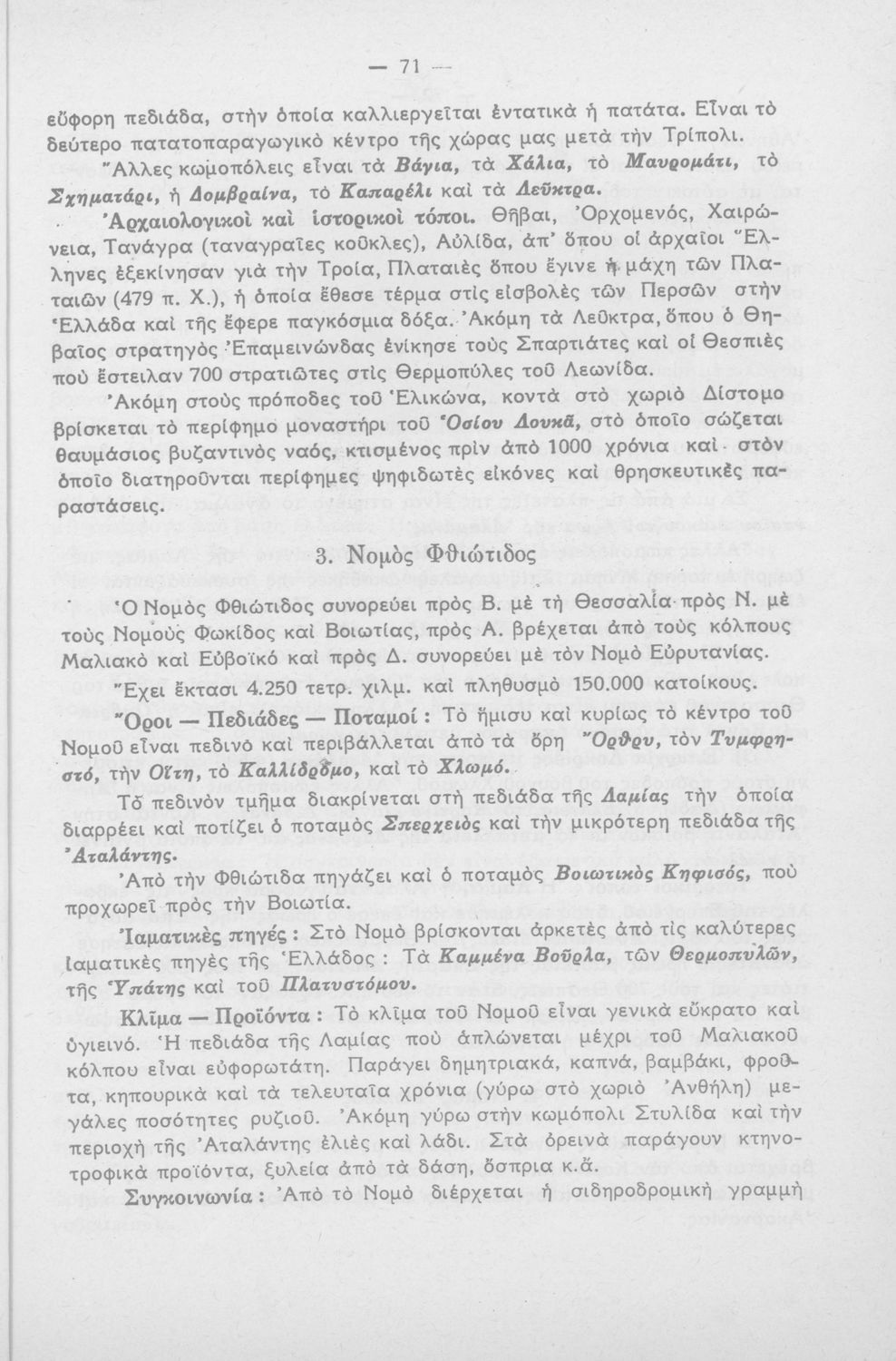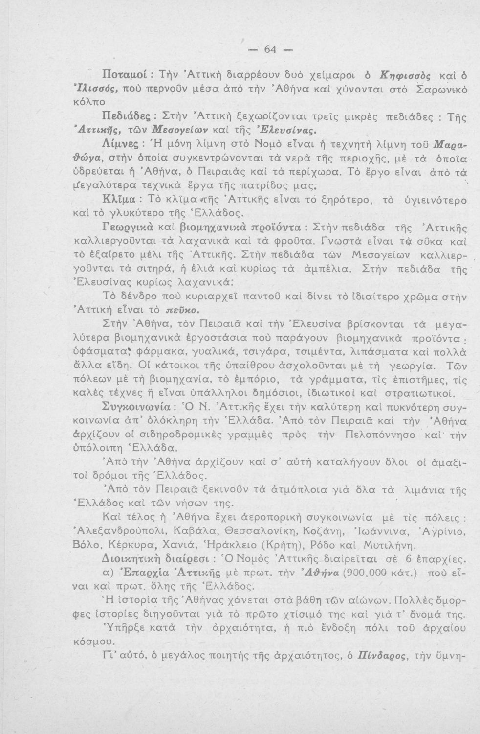 Σχολικό εγχειρίδιο Γεωγραφίας για τη Γ΄, Δ΄ Δημοτικού. Μελετά την Ελλάδα ανά γεωγραφικό νομό με πληροφορίες από το χάρτη της περιοχής και στοιχεία της ιστορίας και της οικονομικής ζωής.