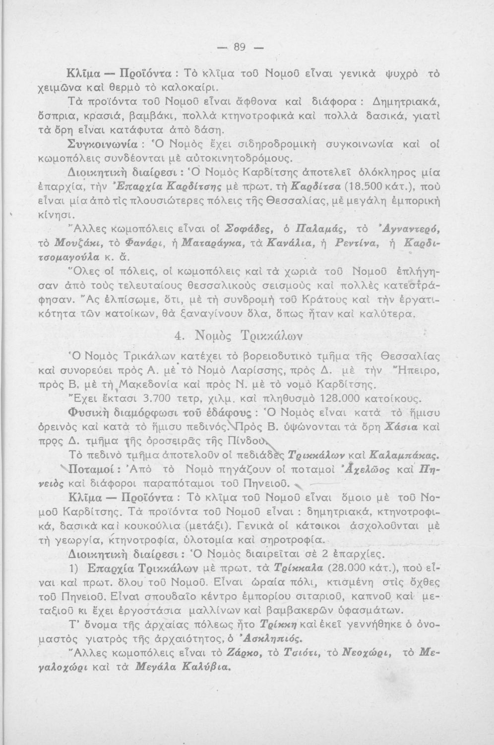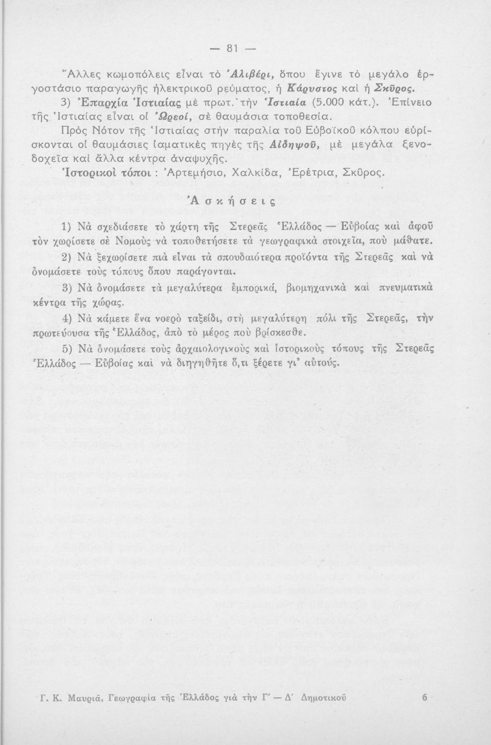 Σχολικό εγχειρίδιο Γεωγραφίας για τη Γ΄, Δ΄ Δημοτικού. Μελετά την Ελλάδα ανά γεωγραφικό νομό με πληροφορίες από το χάρτη της περιοχής και στοιχεία της ιστορίας και της οικονομικής ζωής.
