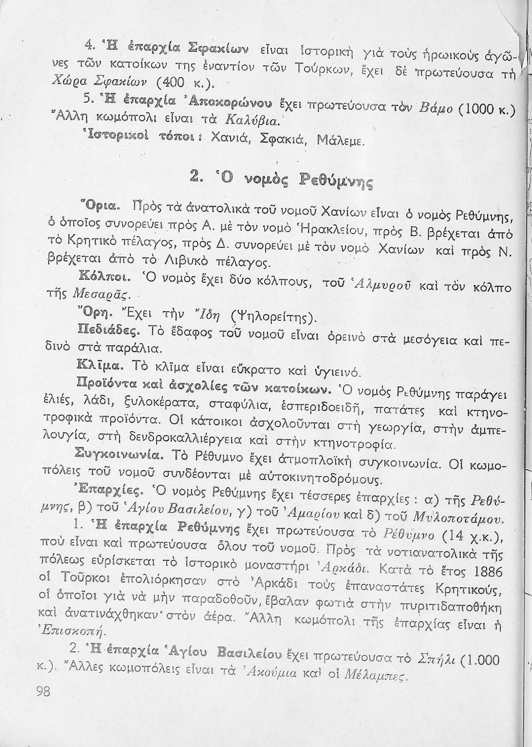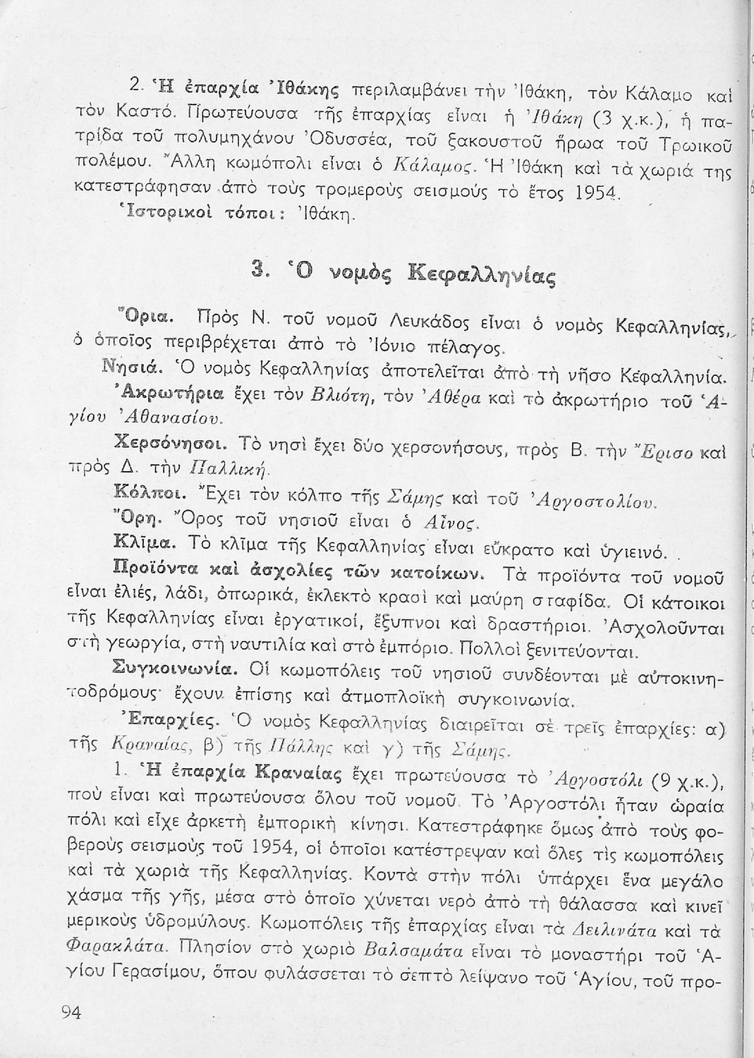 Μαθητικό βοήθημα Γεωγραφίας για τις Γ΄ και Δ΄ Δημοτικού που εξετάζει την Ελλάδα ανά διαμέρισμα και νομό από γεωφυσική και οικονομική άποψη.