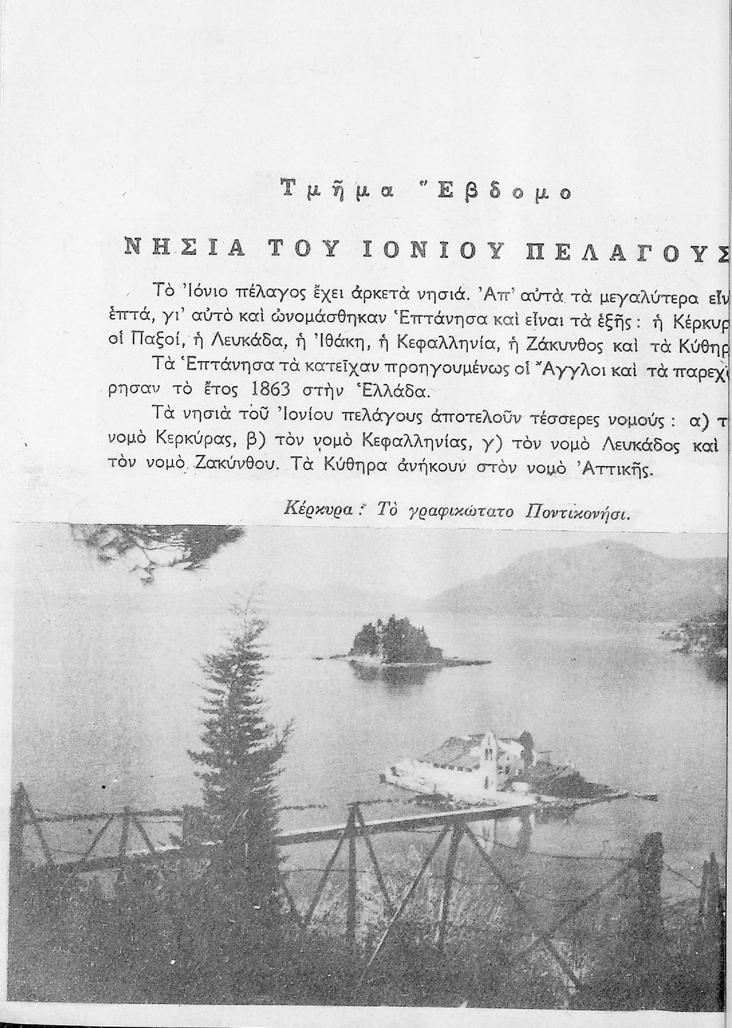 Μαθητικό βοήθημα Γεωγραφίας για τις Γ΄ και Δ΄ Δημοτικού που περιέχει εισαγωγή στη φυσική γεωγραφία και εξετάζει την Ελλάδα ανά διαμέρισμα και νομό από γεωφυσική, οικονομική και πολιτική άποψη.