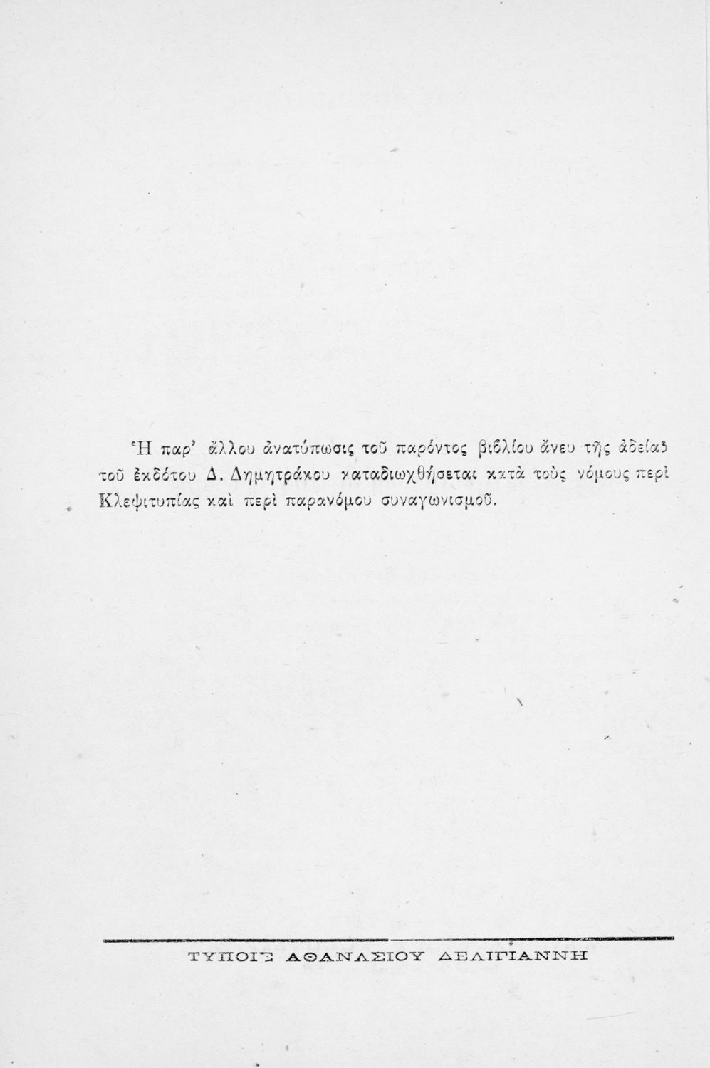 Εκδότης: Δ. Δημητράκος Τόπος έκδοσης: Αθήνα |