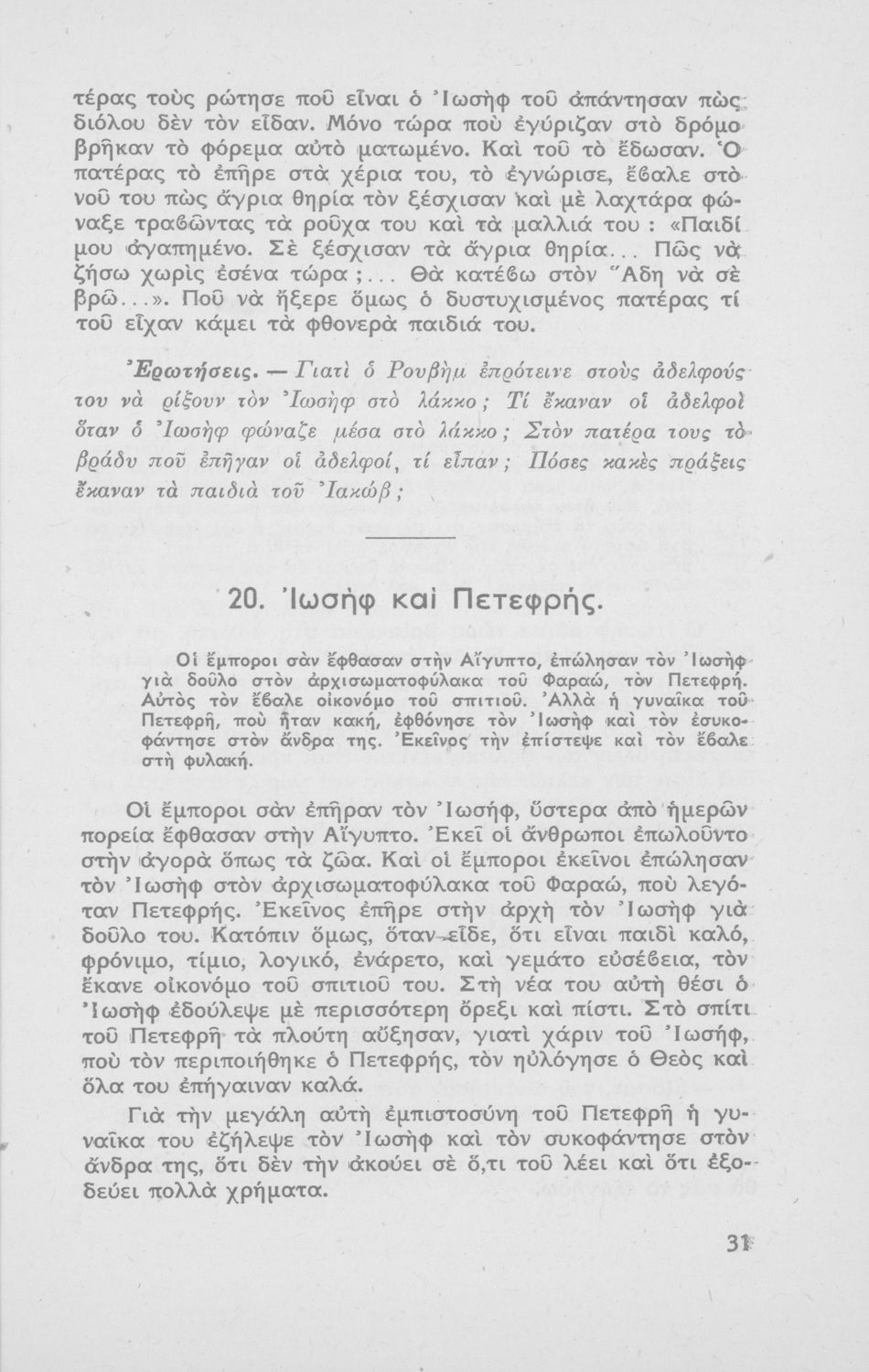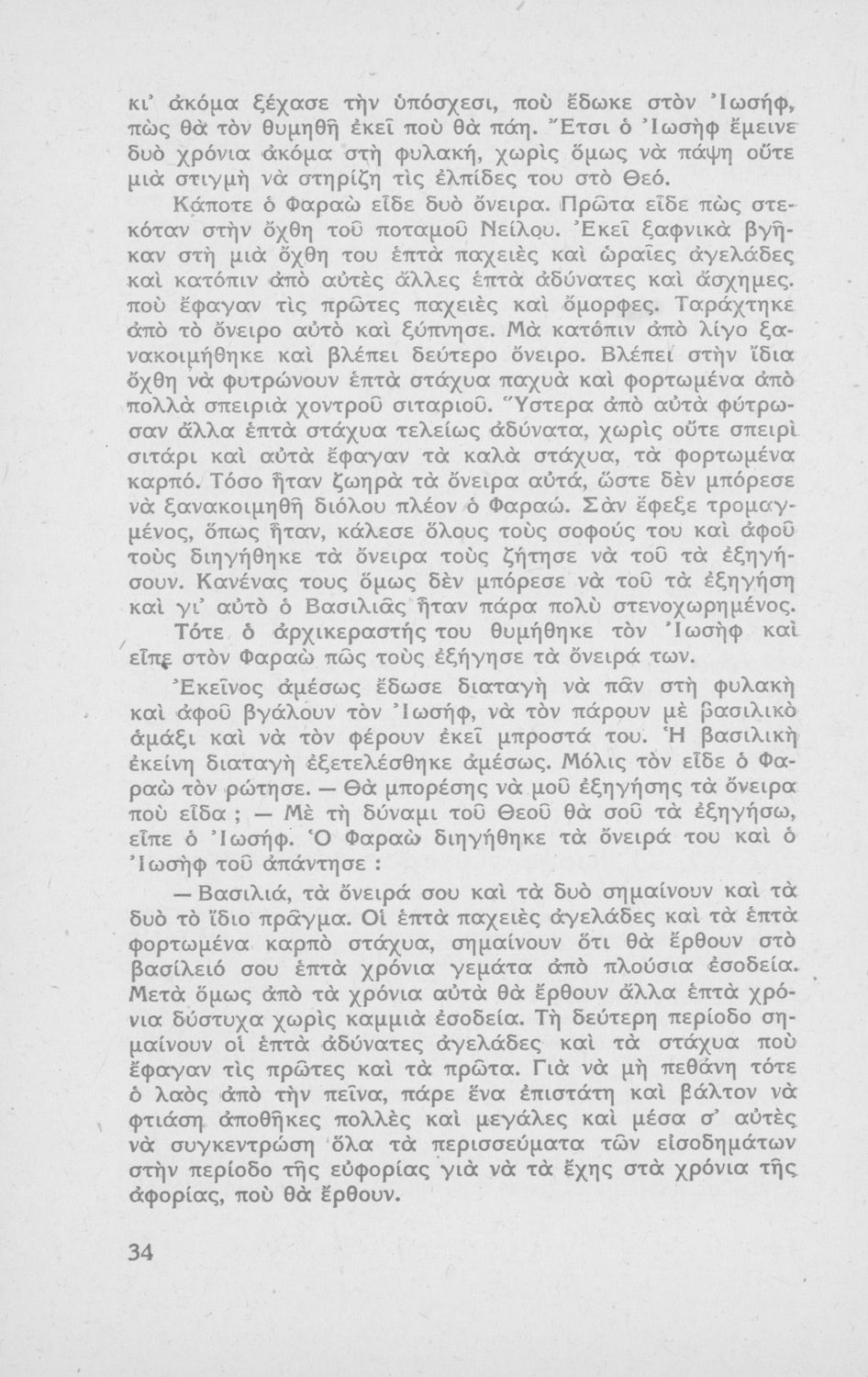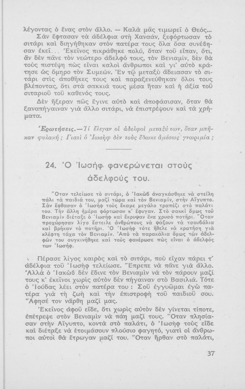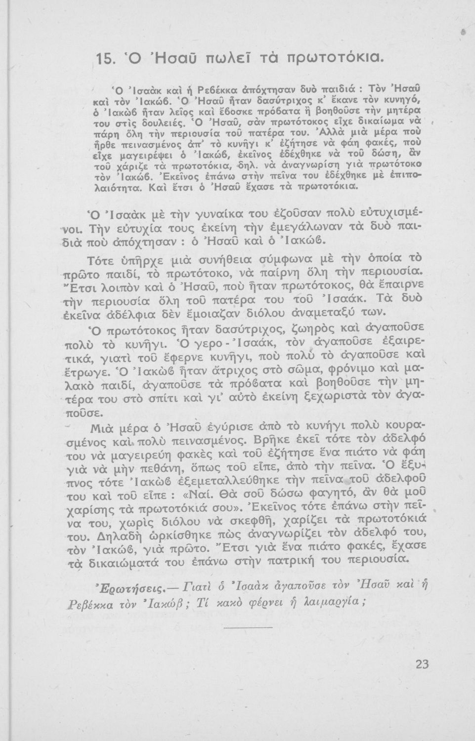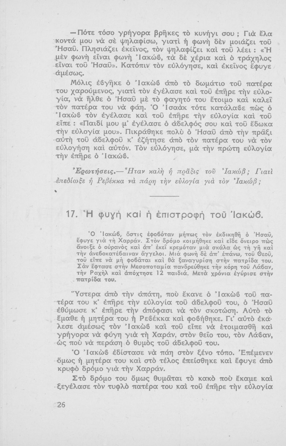 Σχολικό εγχειρίδιο για την Γ΄ Τάξη πιθανόν της Εκκλησιαστικής Γεωργικής Σχολής. Αναφέρεται στα γεγονότα της Παλαιάς Διαθήκης. Περιέχει τη δράση του Ιακώβ, του Μωυσή, μέχρι και τους προφήτες.