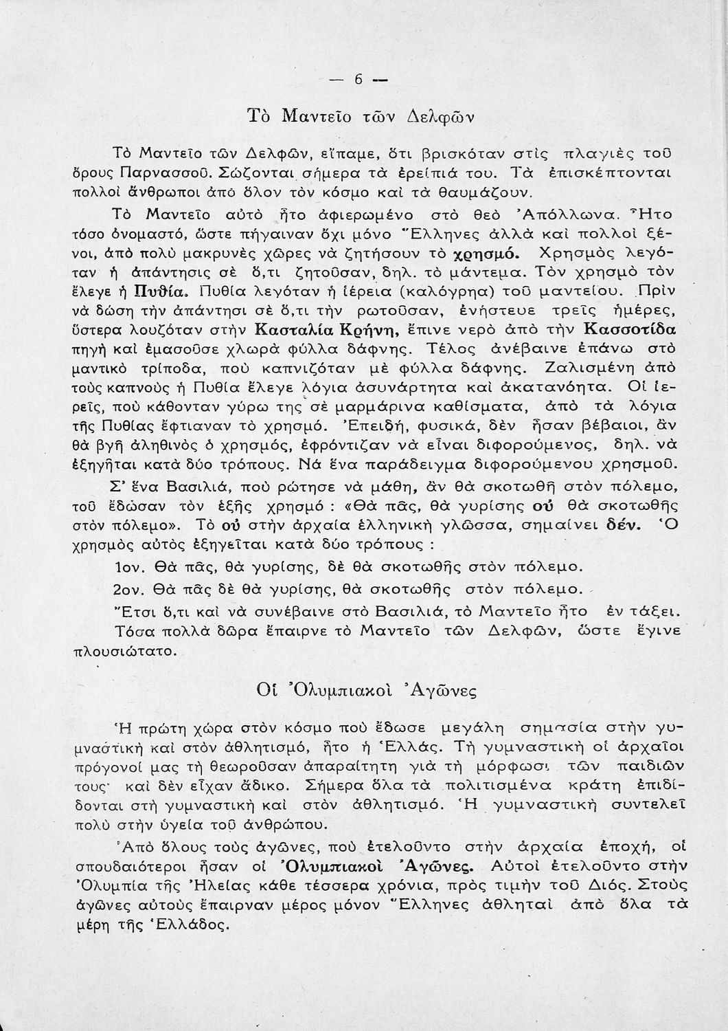 Κωδικός αναγνώρισης: 01-18445 Τίτλος: Ιστορία της Αρχαίας Ελλάδος. Τάξις Δ΄ Δημοτικού Συγγραφέας: Χ.Δ. Γεωργόπουλος Μέγεθος και υπόστρωμα: Μαθητικό βοήθημα, μαλακό εξώφυλλο, 77 σελίδες. Σκίτσα, χάρτης, εικόνες (ασπρόμαυρα). |