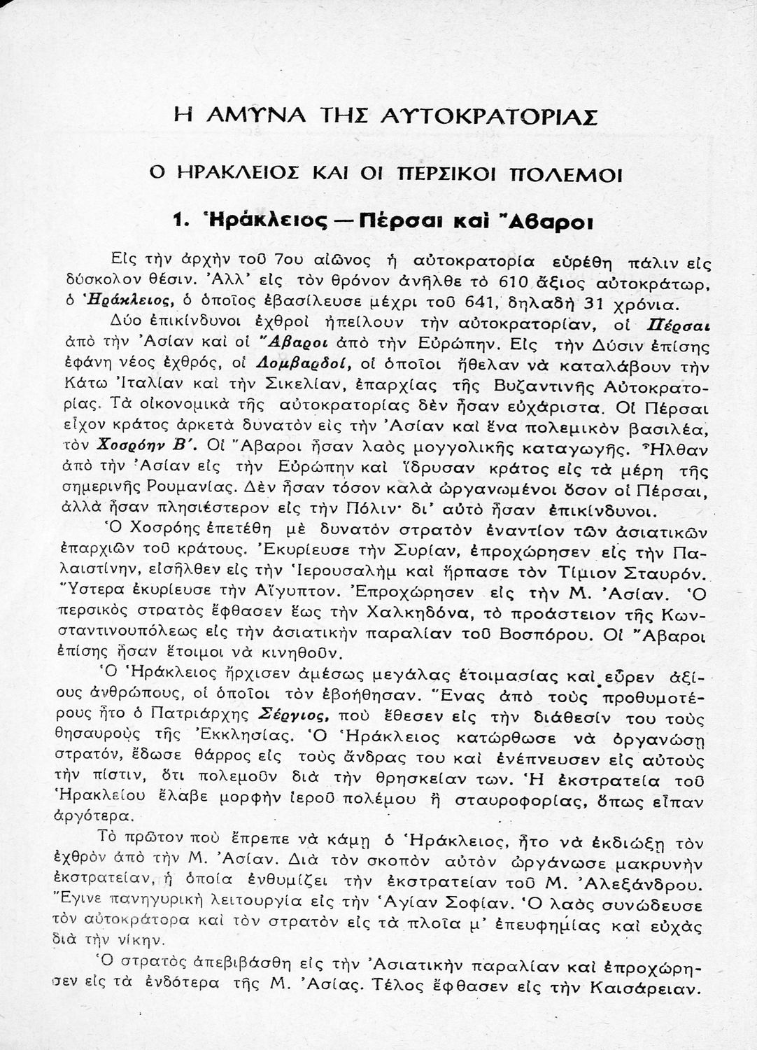 Σχολικό εγχειρίδιο για το μάθημα της Ιστορίας στους μαθητές του Δημοτικού. Αναφέρεται στα χρόνια της Βυζαντινής Αυτοκρατορίας μέχρι και την άλωση της Πόλης. Το τελευταίο κεφάλαιο αναφέρεται στα επιτεύγματα της