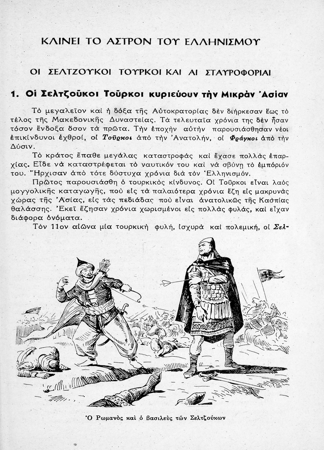 Βαθμίδα εκπαίδευσης: Πρωτοβάθμια Τάξη: Ε' Δημοτικού Μάθημα: Ιστορία Γλώσσα: Απλή καθαρεύουσα Παρουσίαση περιεχομένου: Μαθητικό βοήθημα Ιστορίας Ε΄ Δημοτικού που περιλαμβάνει την ιστορία της Βυζαντινής Αυτοκρατορίας και εστιάζει στο έργο και τη δράση του κάθε αυτοκράτορα μέχρι και την άλωση της Κωνσταντινούπολης. |