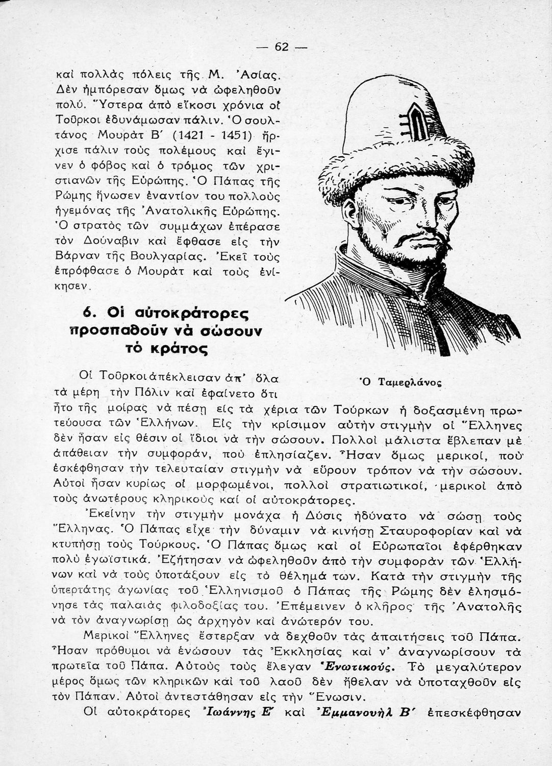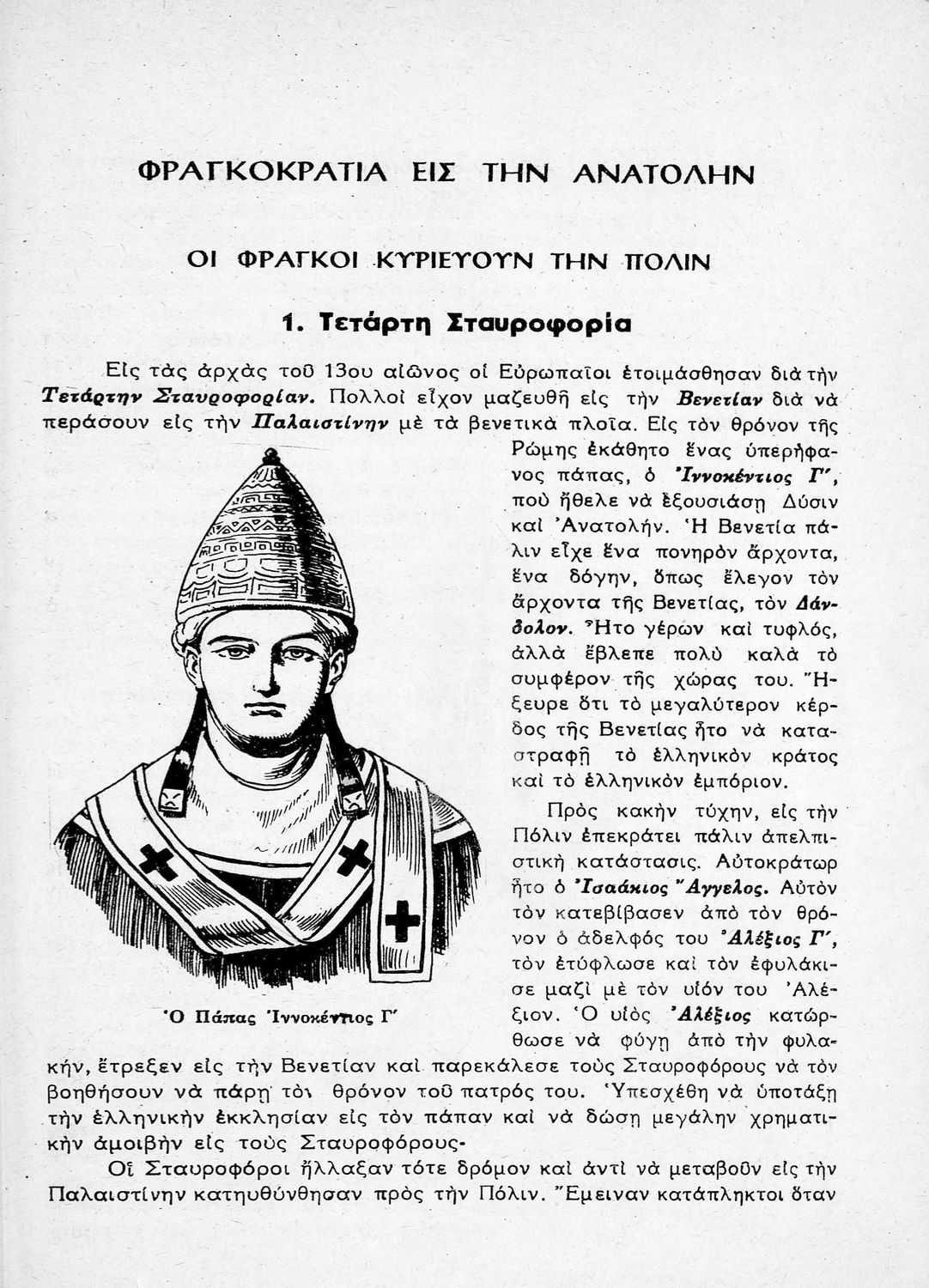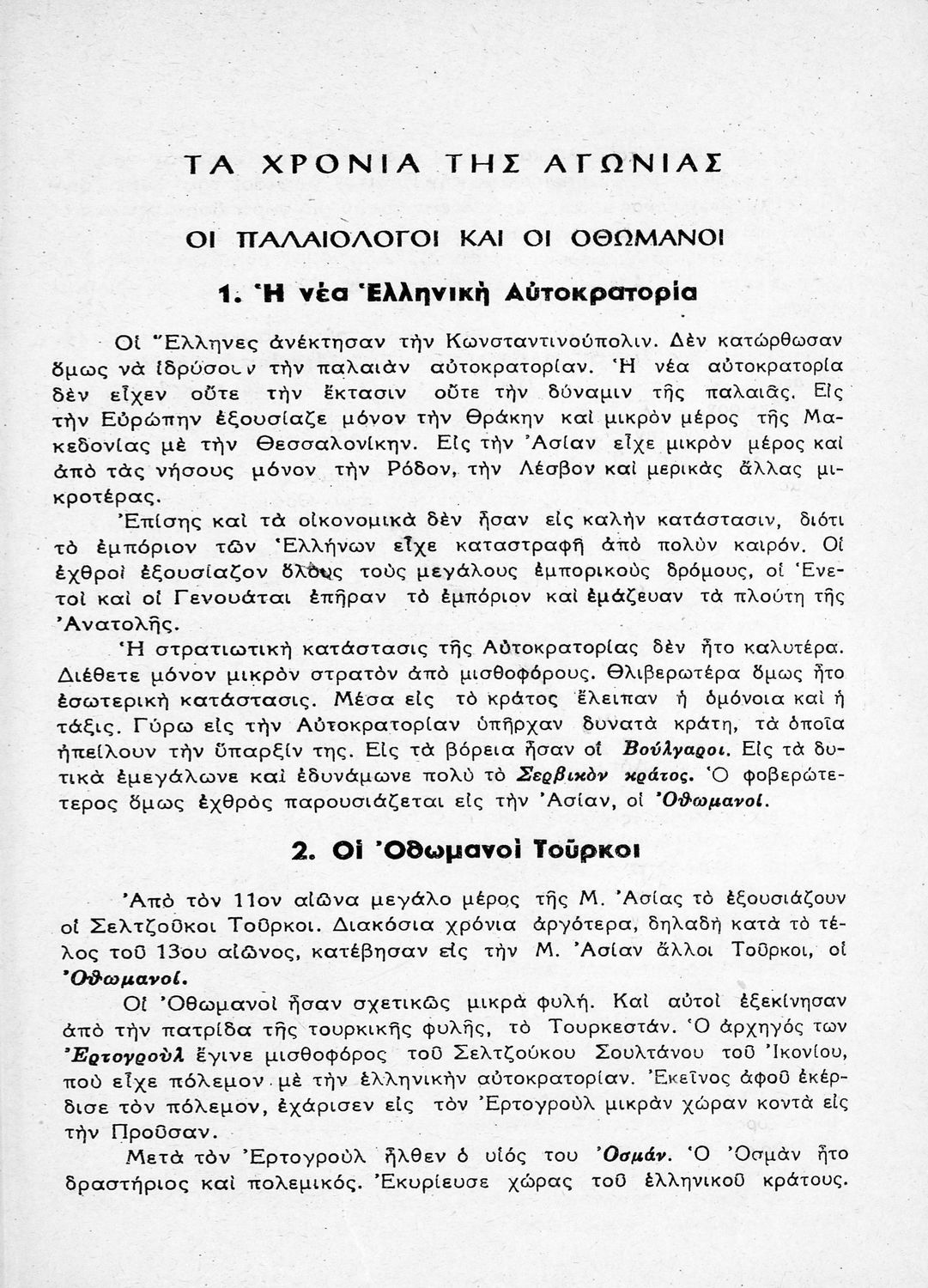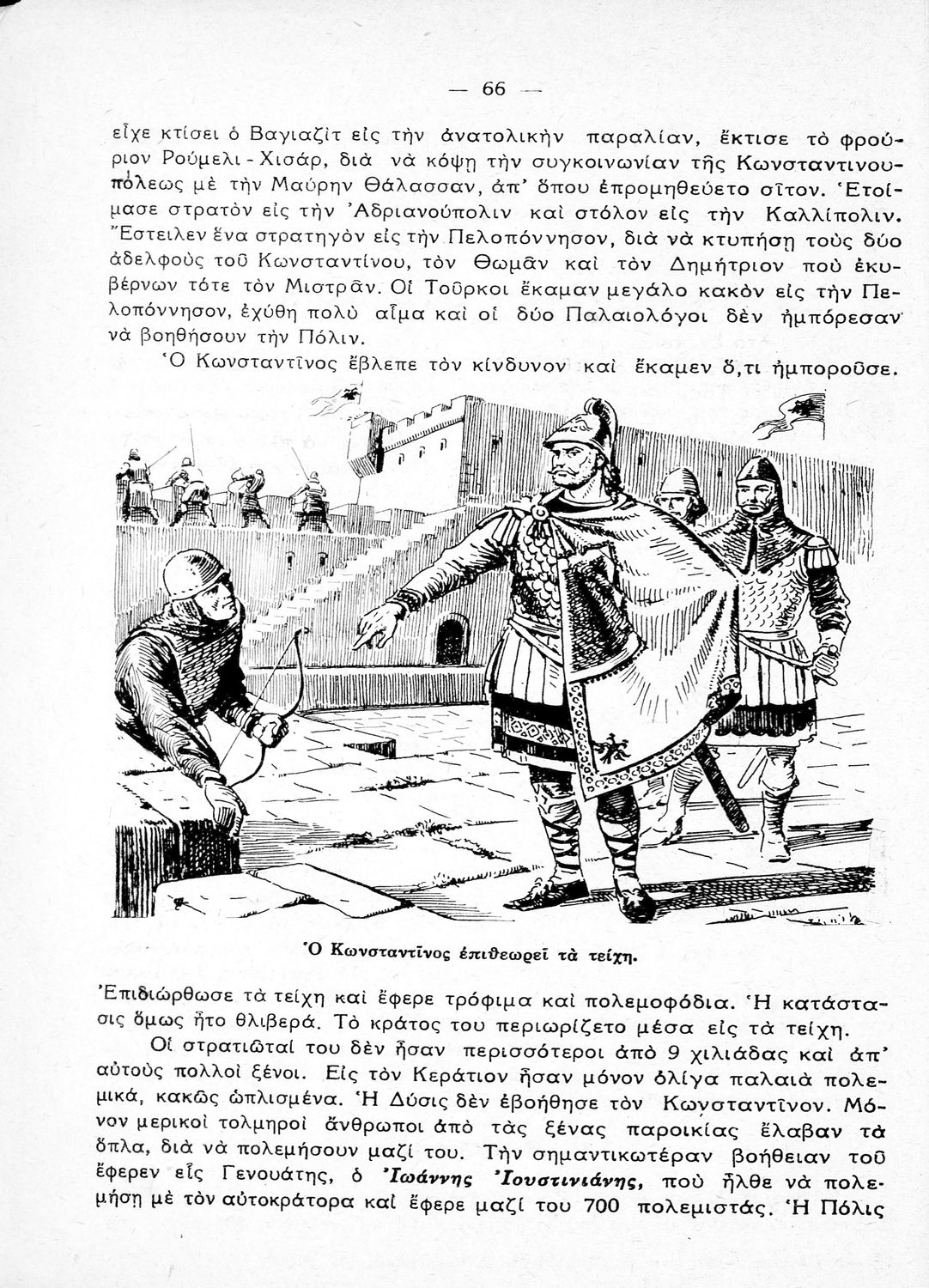 Σχολικό εγχειρίδιο για το μάθημα της Ιστορίας στους μαθητές του Δημοτικού. Αναφέρεται στα χρόνια της Βυζαντινής Αυτοκρατορίας μέχρι και την άλωση της Πόλης. Το τελευταίο κεφάλαιο αναφέρεται στα επιτεύγματα της