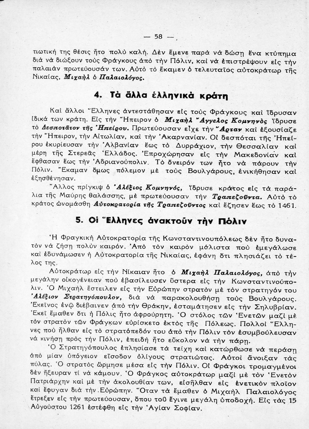 Μαθητικό βοήθημα Ιστορίας Δ΄ Δημοτικού που καλύπτει την περίοδο της Ρωμαϊκής και Βυζαντινής Αυτοκρατορίας μέχρι και την άλωση της Κωνσταντινούπολης. Ο συγγραφέας ήταν επιθεωρητής Δημοτικών Σχολείων.