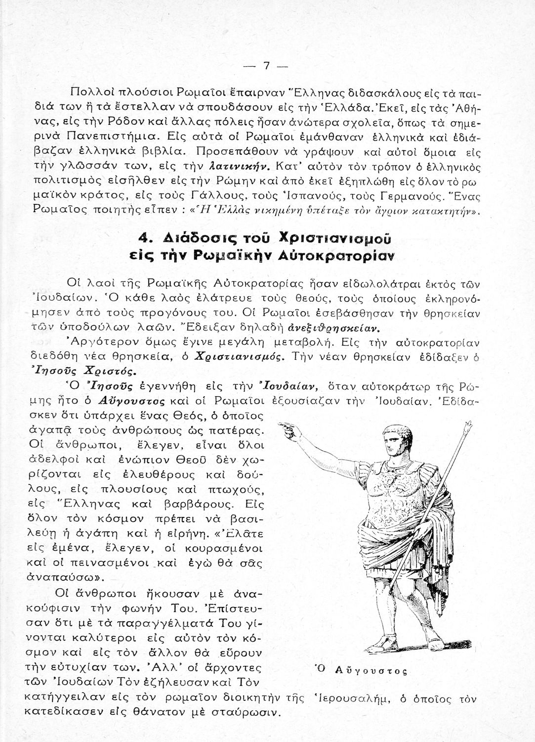 Μαθητικό βοήθημα Ιστορίας Δ΄ Δημοτικού που καλύπτει την περίοδο της Ρωμαϊκής και Βυζαντινής Αυτοκρατορίας μέχρι και την άλωση της Κωνσταντινούπολης. Ο συγγραφέας ήταν επιθεωρητής Δημοτικών Σχολείων.