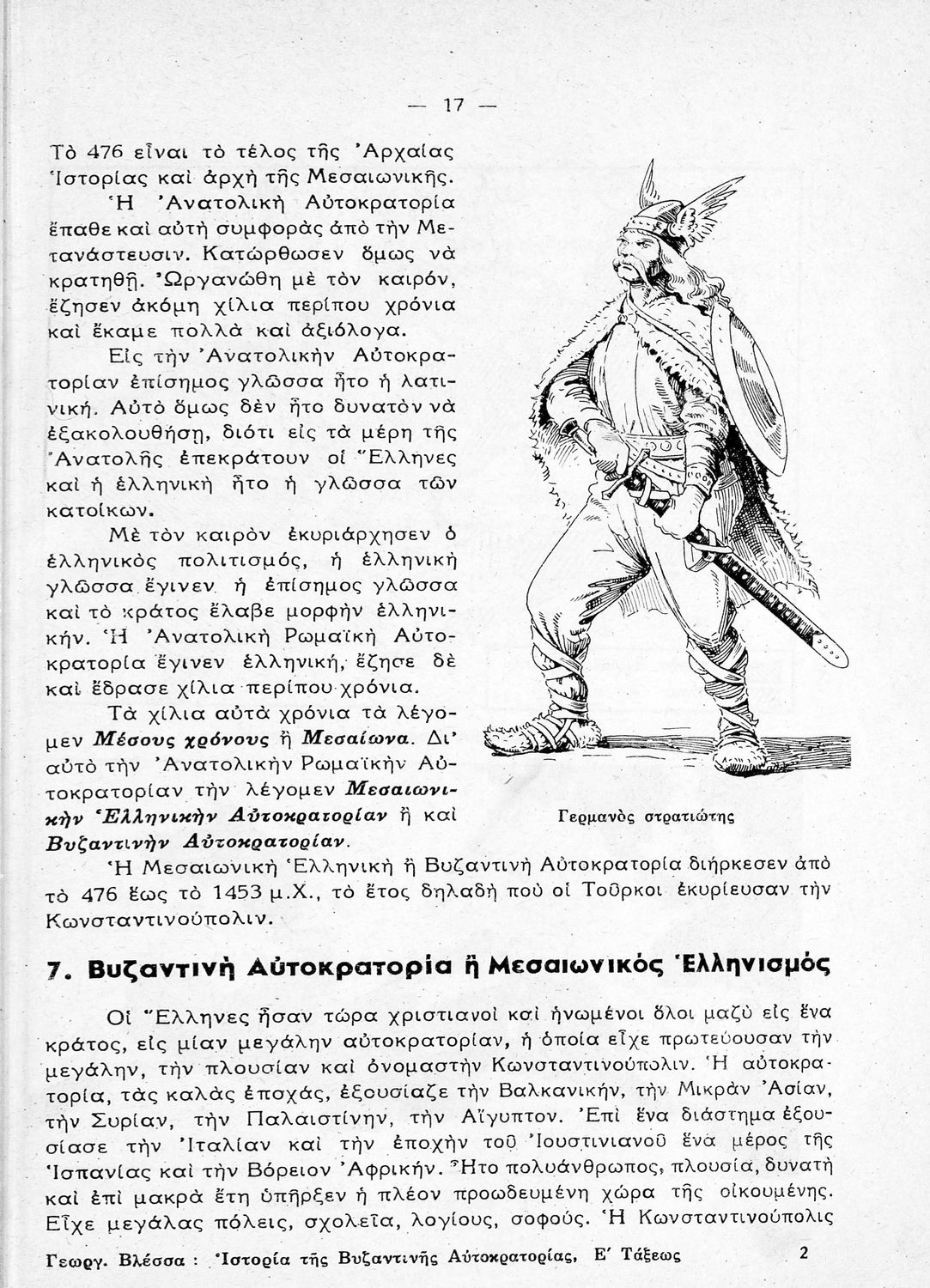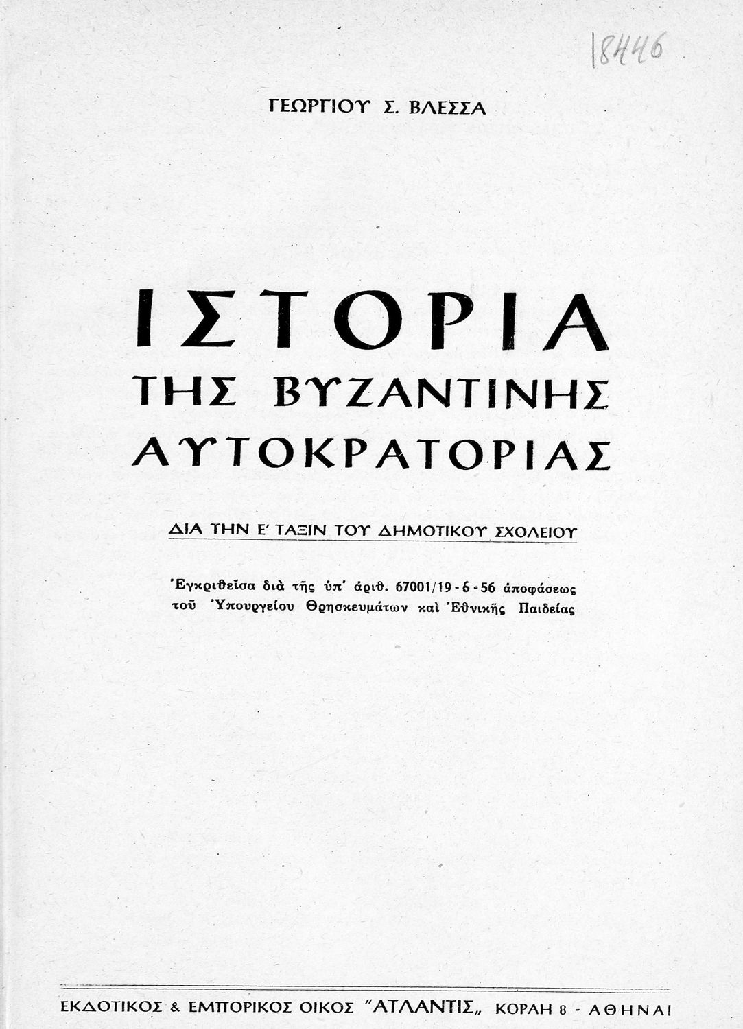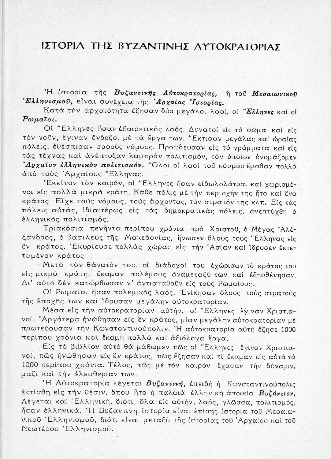 Σχολικό εγχειρίδιο για το μάθημα της Ιστορίας στους μαθητές του Δημοτικού. Αναφέρεται στα χρόνια της Βυζαντινής Αυτοκρατορίας μέχρι και την άλωση της Πόλης. Το τελευταίο κεφάλαιο αναφέρεται στα επιτεύγματα της