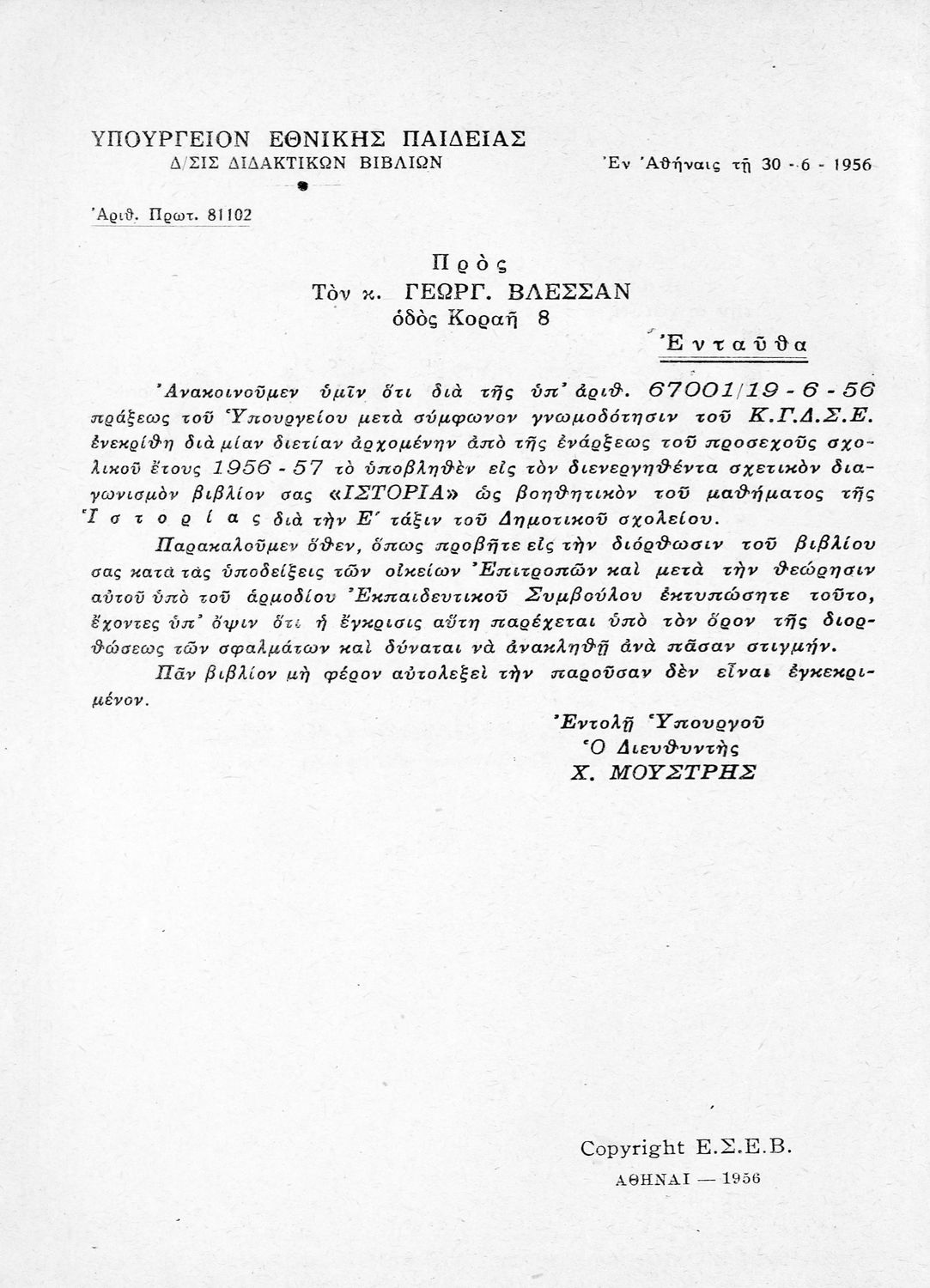 Υπουργική απόφαση / Σύμβαση: 81102/30-6-1956