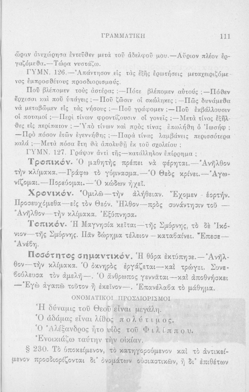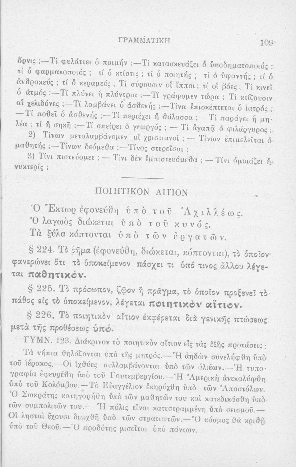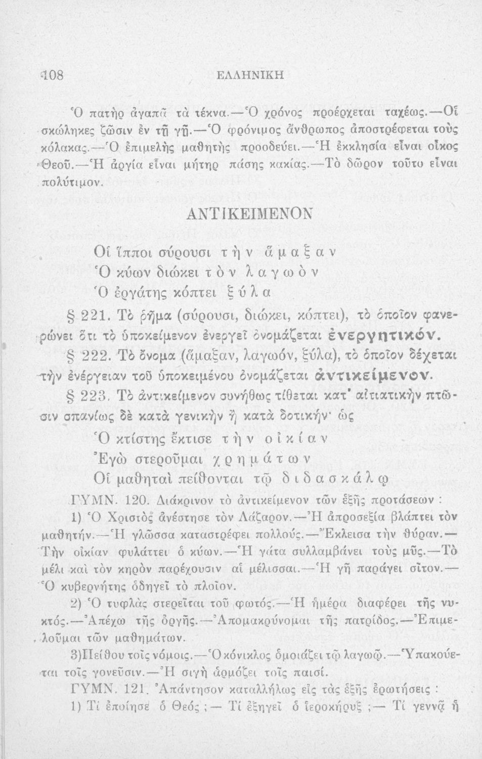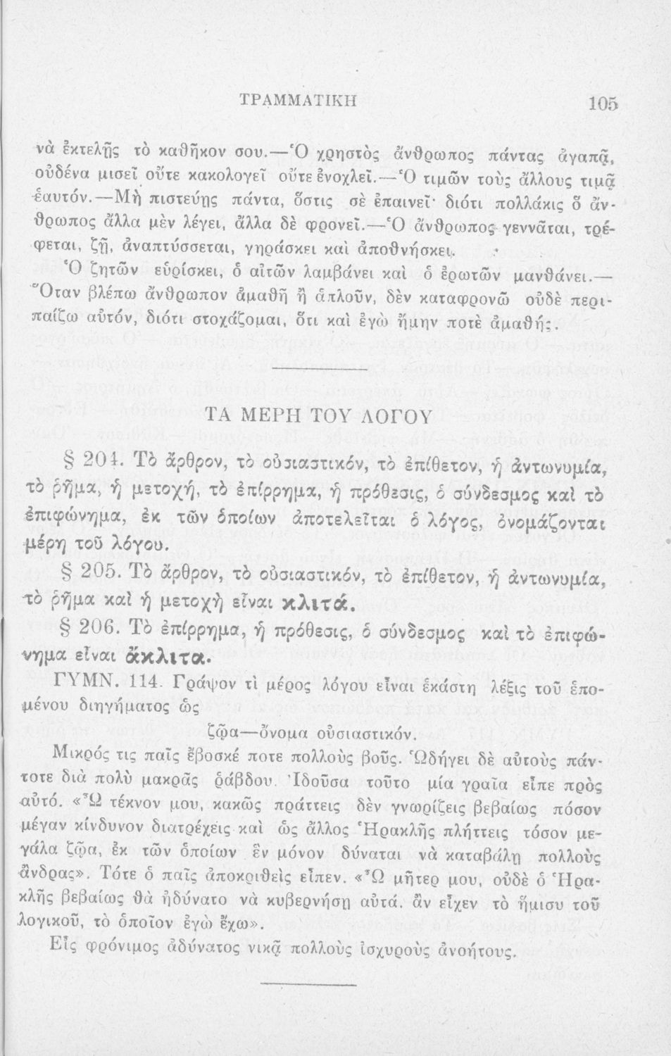 Σχολικό εγχειρίδιο Αρχαίων Ελληνικών Δημοτικού που περιλαμβάνει τους κανόνες γραμματικής και είναι χωρισμένο σε φθογγολογικό, τυπικό και ετυμολογικό μέρος.