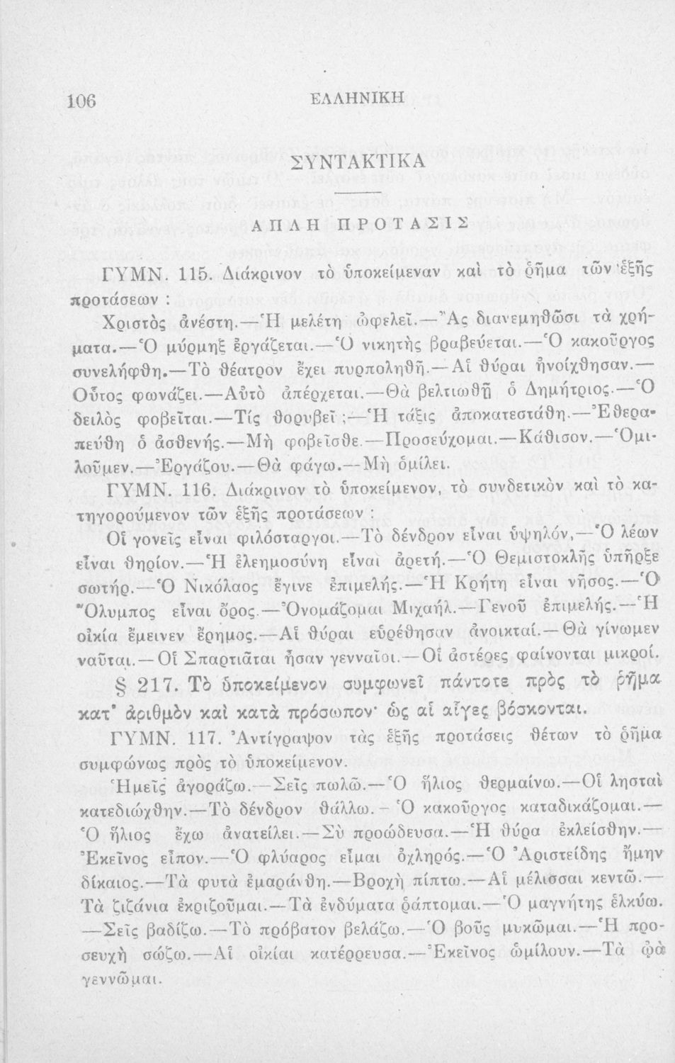 Σχολικό εγχειρίδιο που περιλαμβάνει τη γραμματική της αρχαίας ελληνικής, λεξικό ρημάτων και τους βασικότερους κανόνες του συντακτικού.