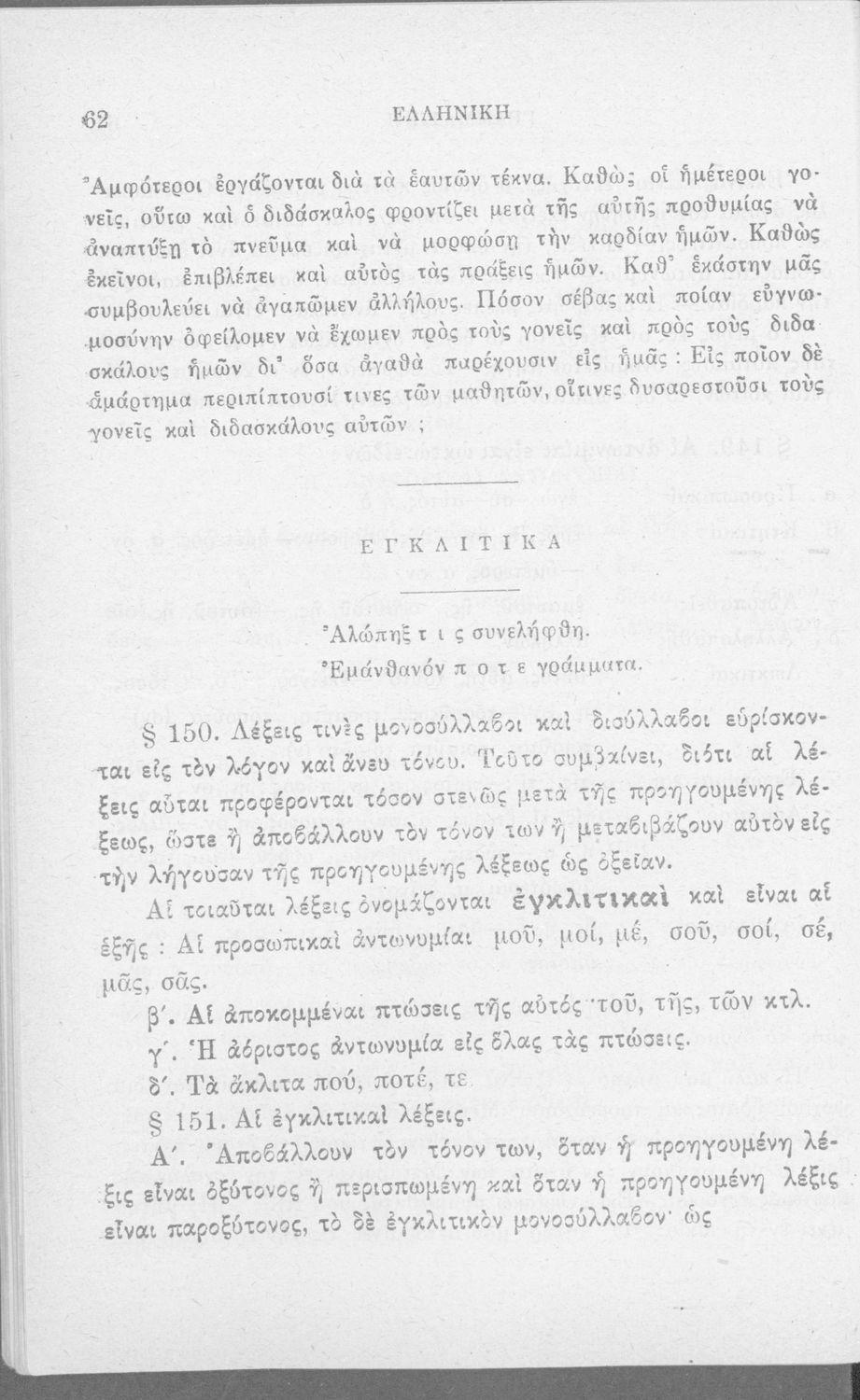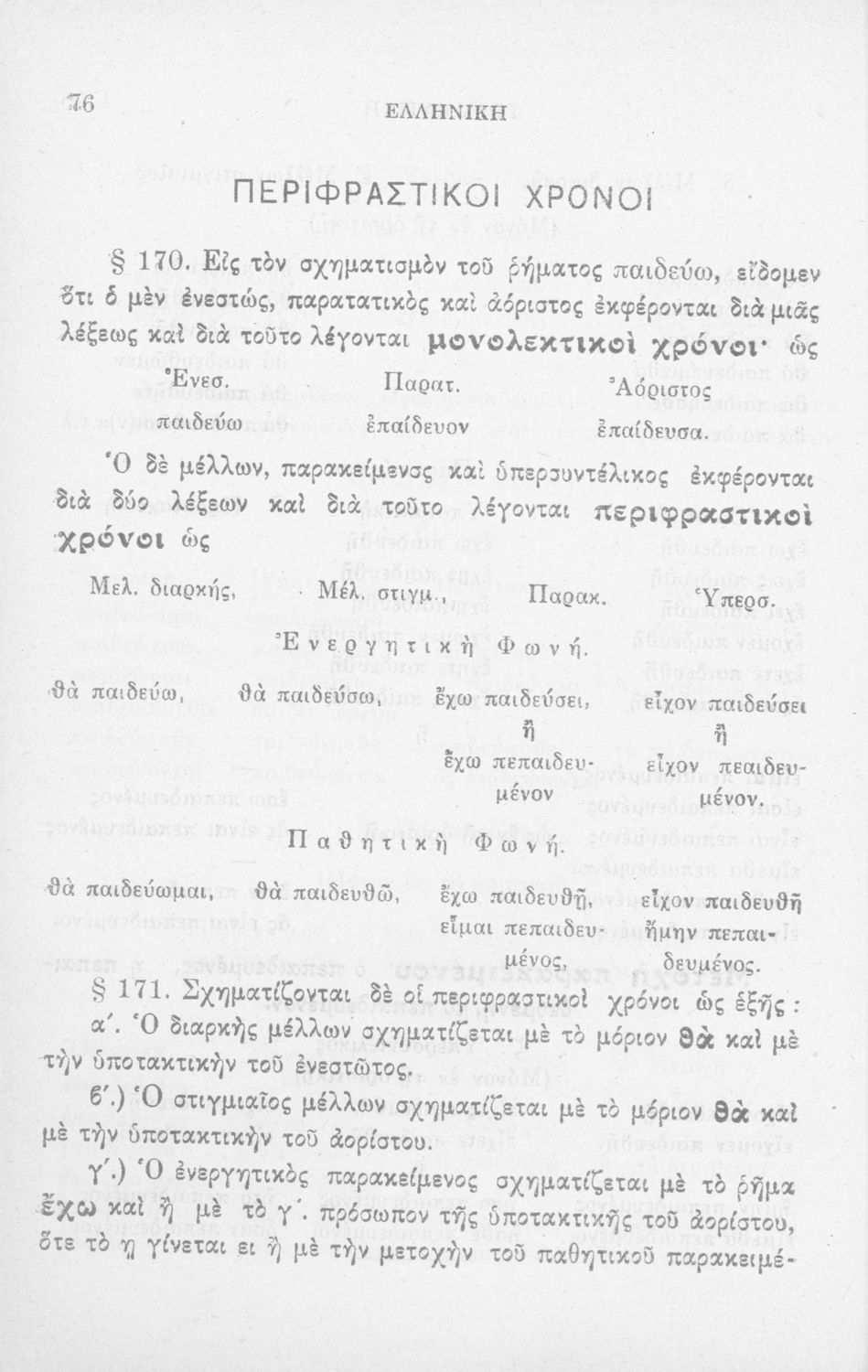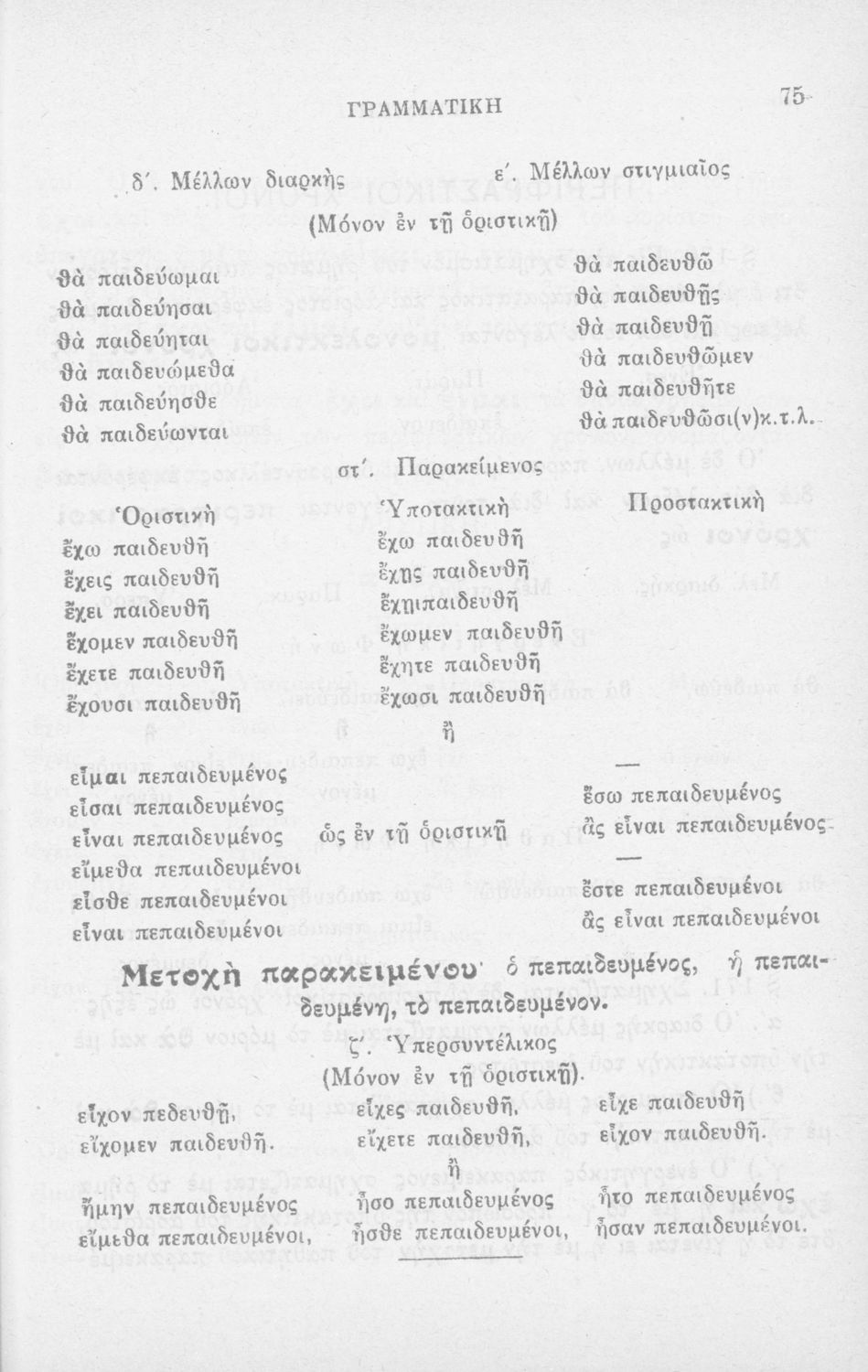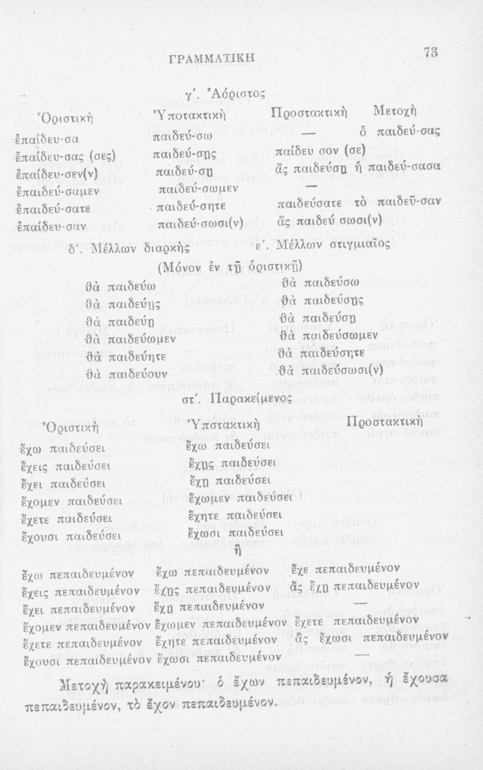 Σχολικό εγχειρίδιο Γ΄ και Δ΄ Δημοτικού που περιέχει τη γραμματικής της νέας ελληνικής. Την έκδοση επιμελήθηκε ο Γ. Λογοθέτης, τέως διευθυντής του επταταξίου δημ. Τμήμ.της Ευαγγελικής Σχολής.