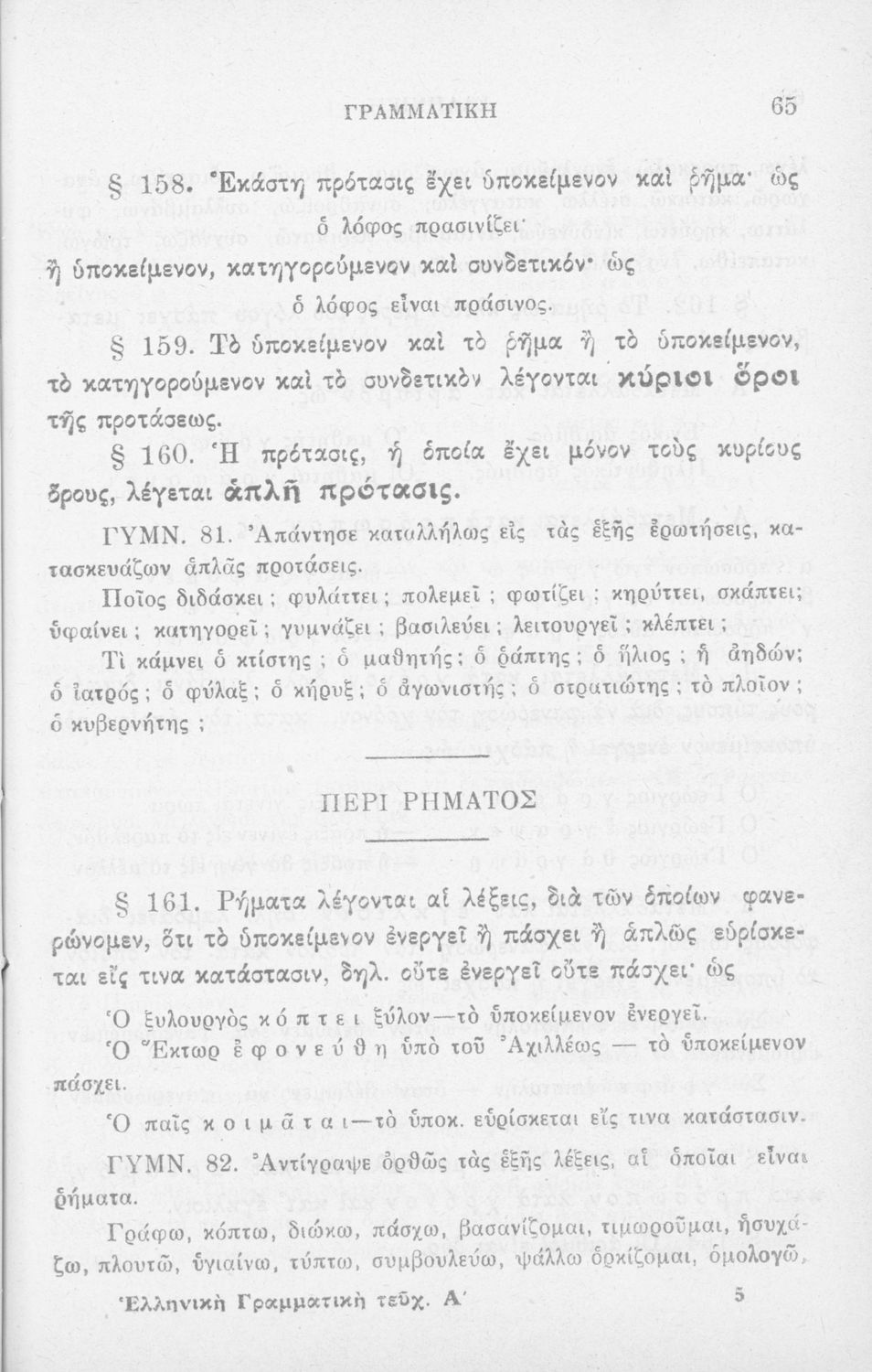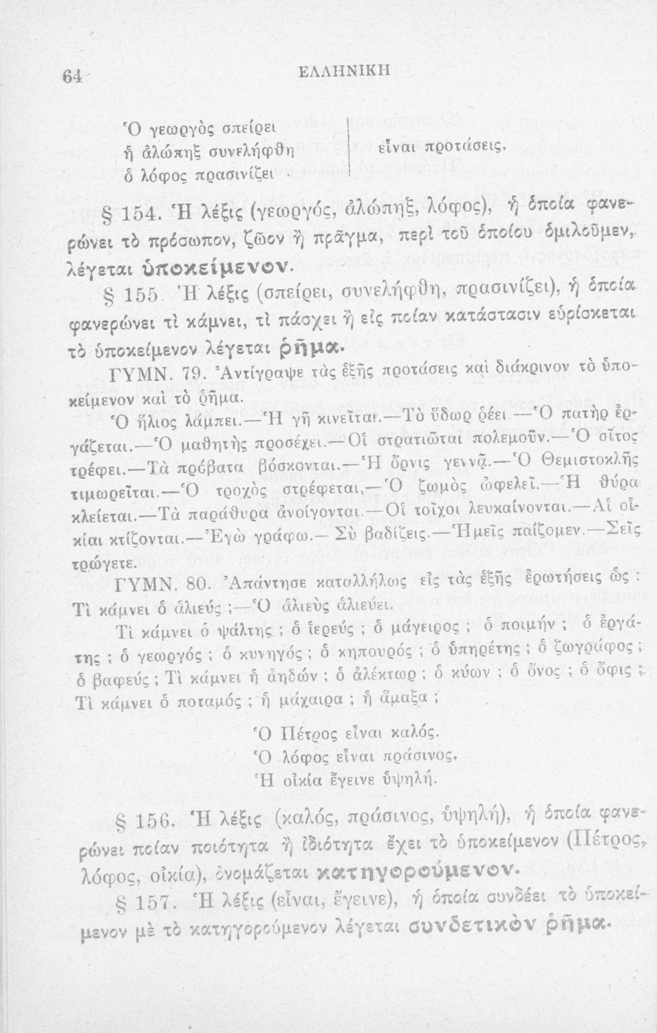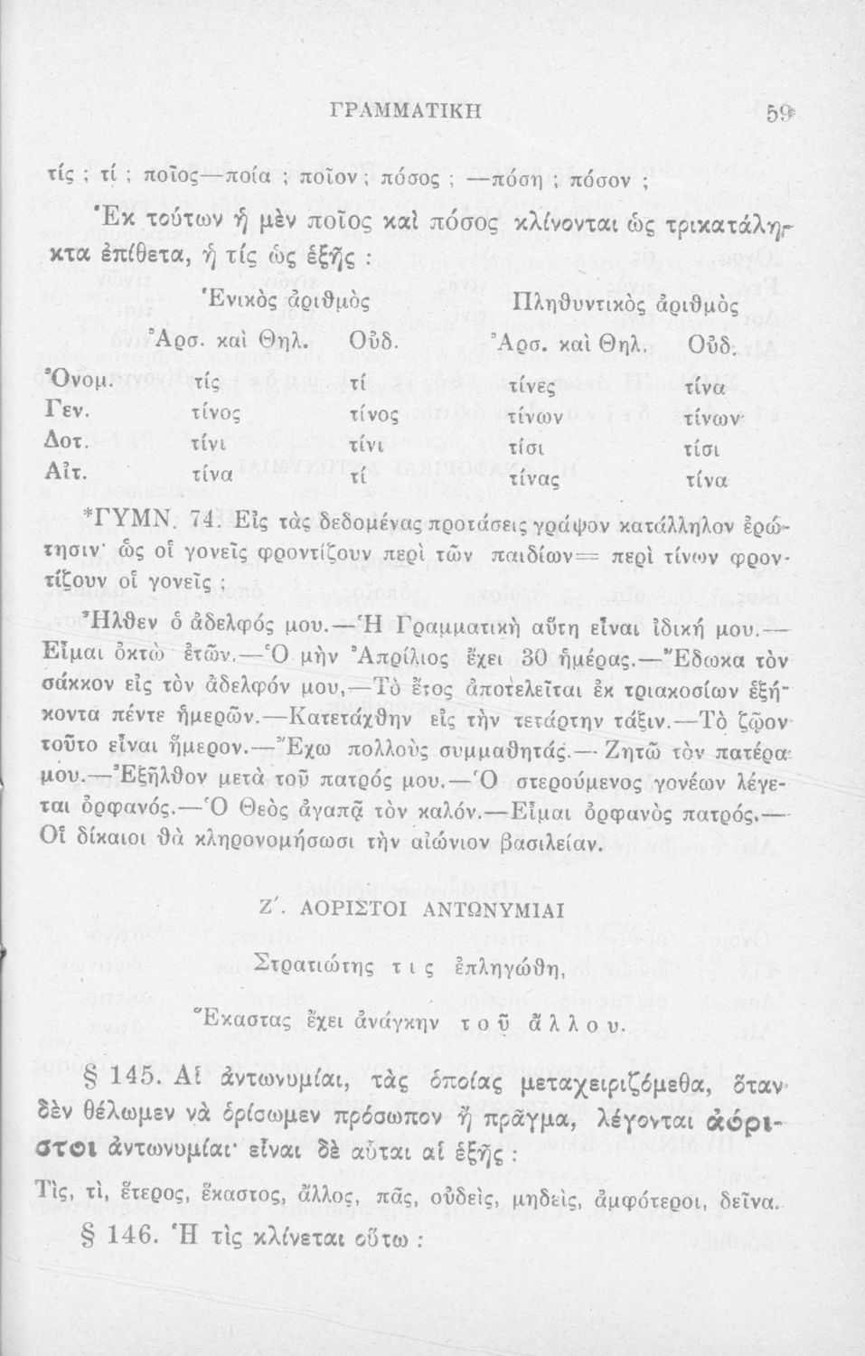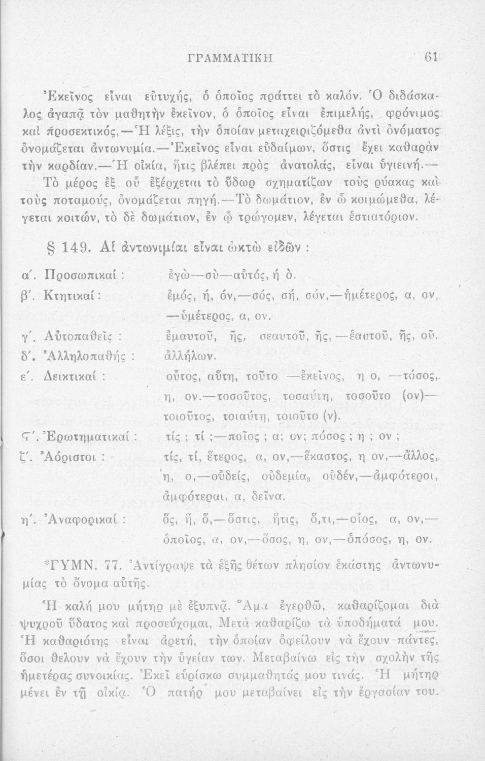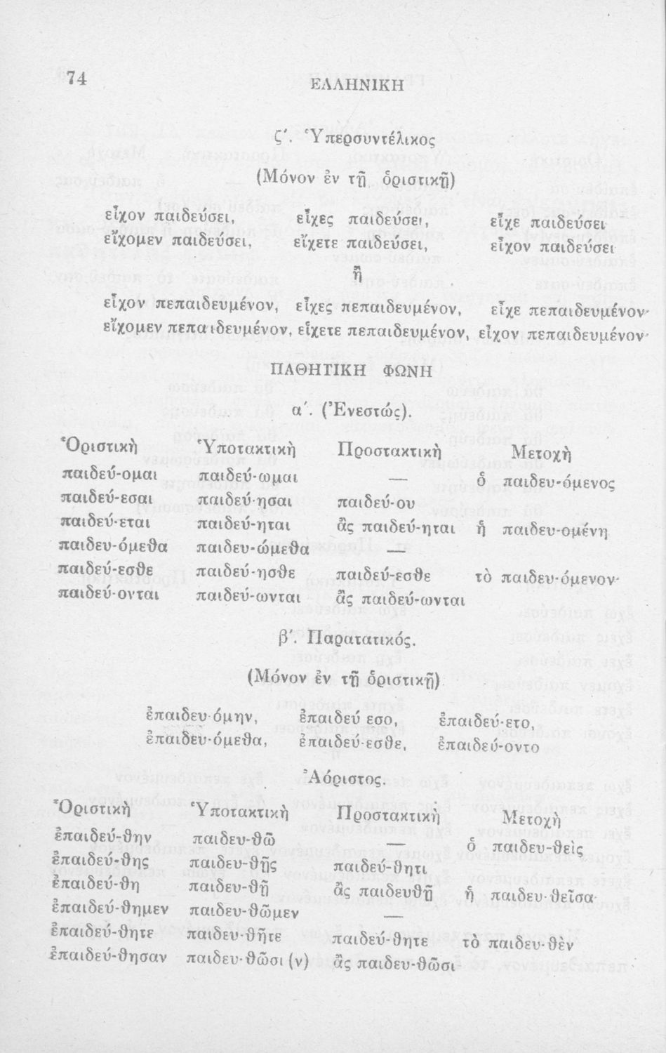 Σχολικό εγχειρίδιο Γ΄ και Δ΄ Δημοτικού που περιέχει τη γραμματικής της νέας ελληνικής. Την έκδοση επιμελήθηκε ο Γ. Λογοθέτης, τέως διευθυντής του επταταξίου δημ. Τμήμ.της Ευαγγελικής Σχολής.