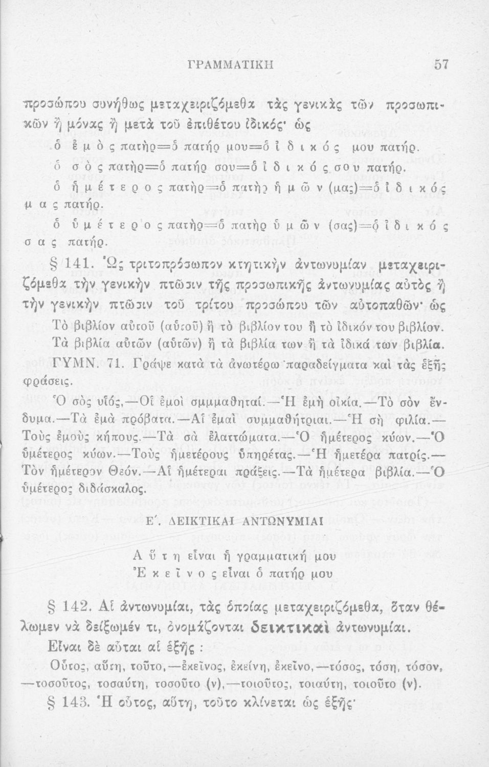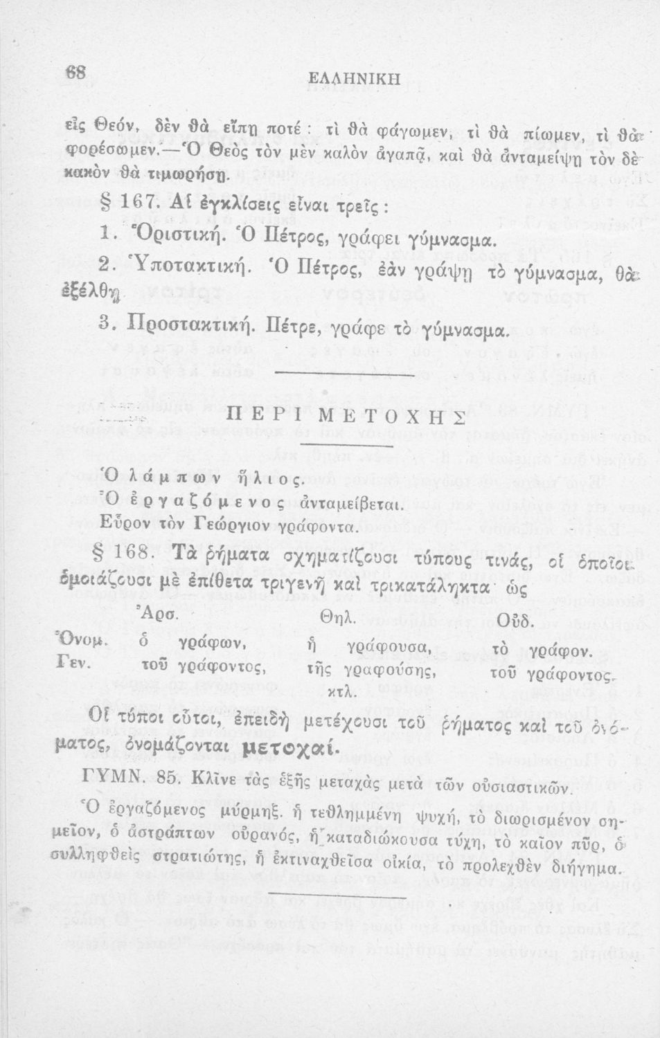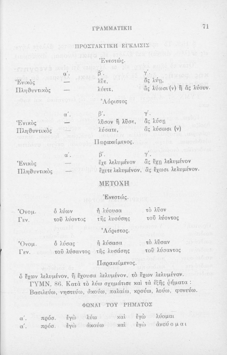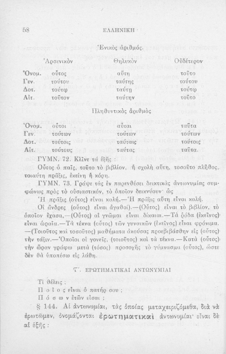 Σχολικό εγχειρίδιο Γ΄ και Δ΄ Δημοτικού που περιέχει τη γραμματικής της νέας ελληνικής. Την έκδοση επιμελήθηκε ο Γ. Λογοθέτης, τέως διευθυντής του επταταξίου δημ. Τμήμ.της Ευαγγελικής Σχολής.