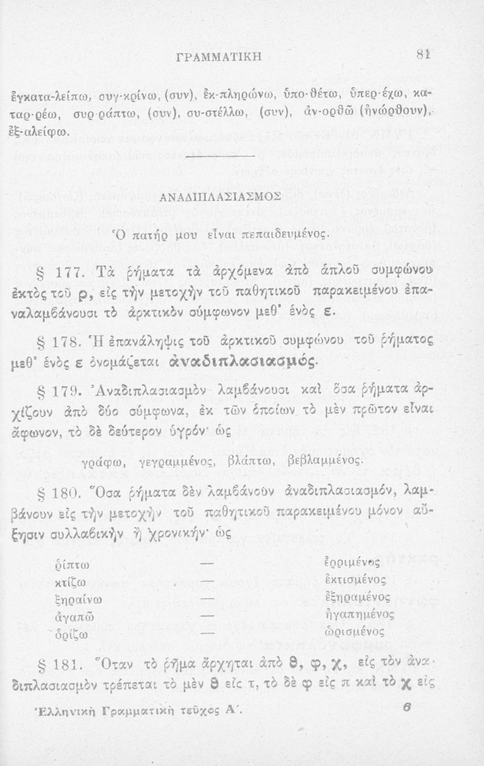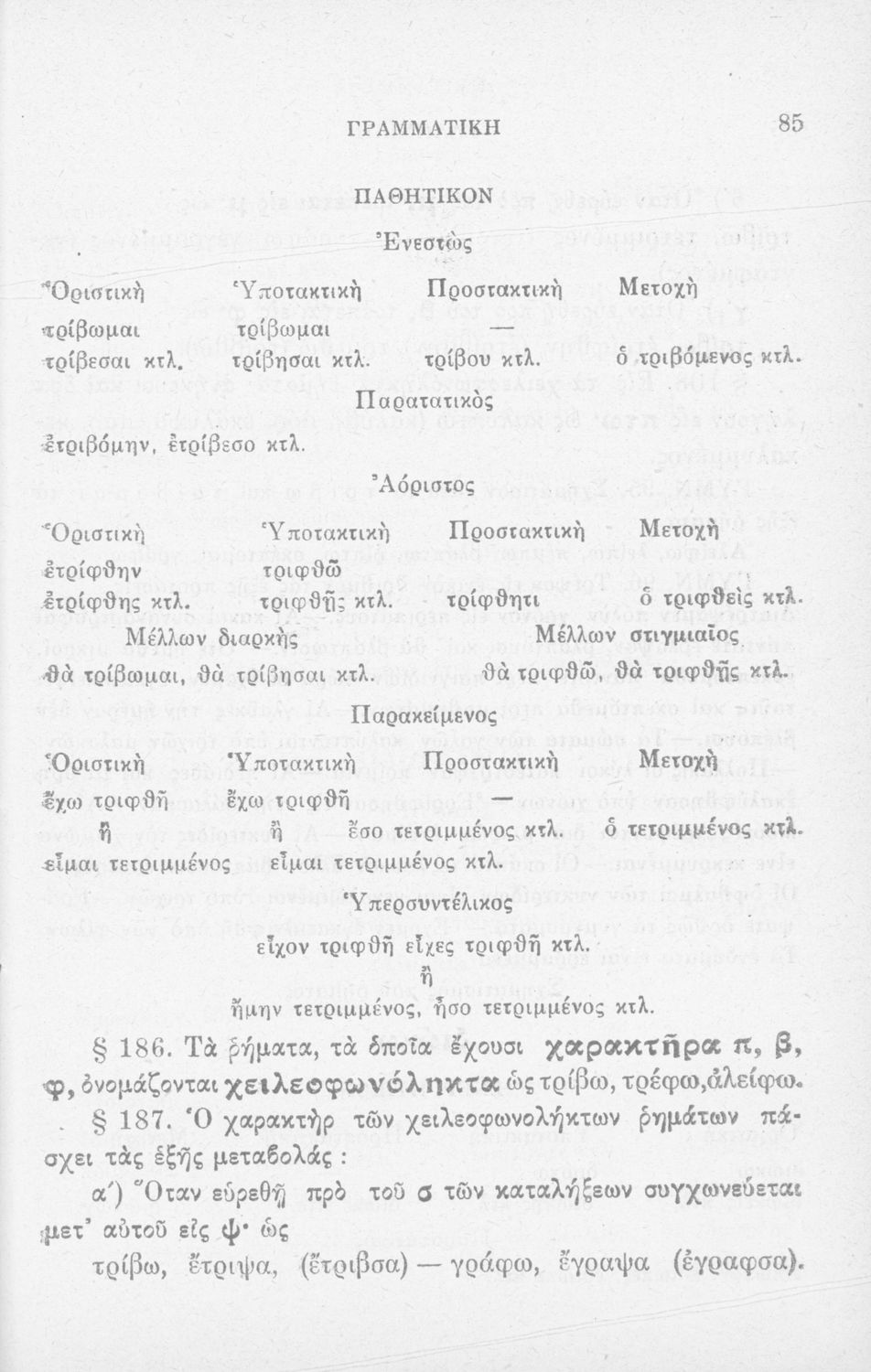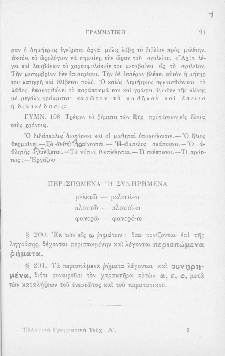 Σχολικό εγχειρίδιο Αρχαίων Ελληνικών Δημοτικού που περιλαμβάνει τους κανόνες γραμματικής και είναι χωρισμένο σε φθογγολογικό, τυπικό και ετυμολογικό μέρος.