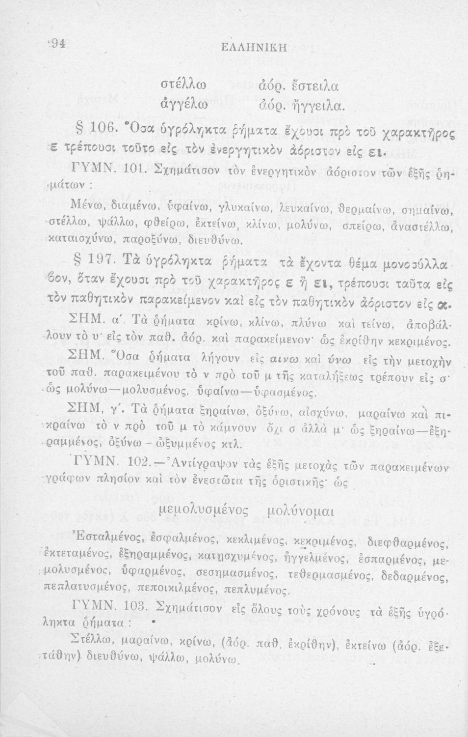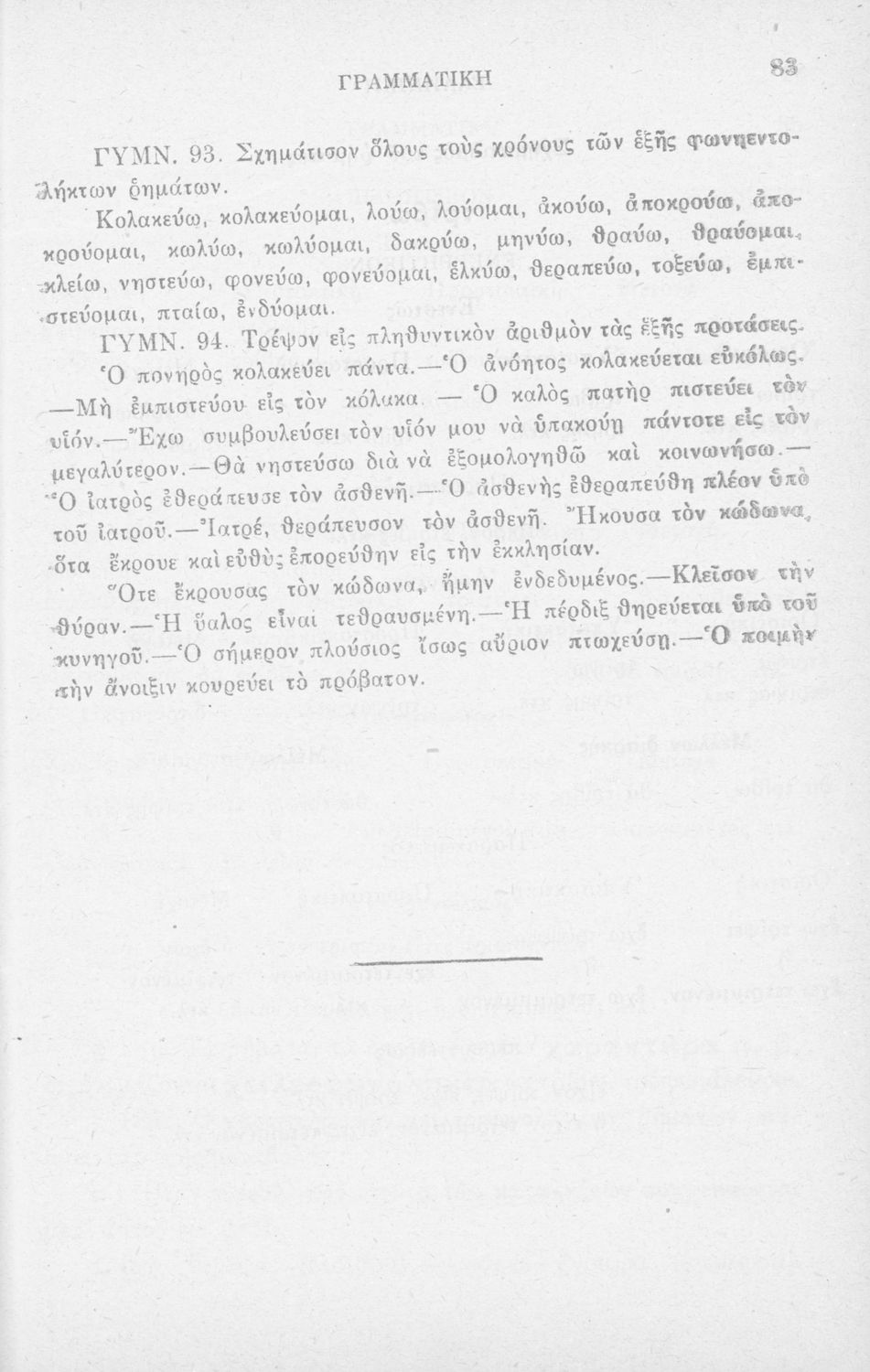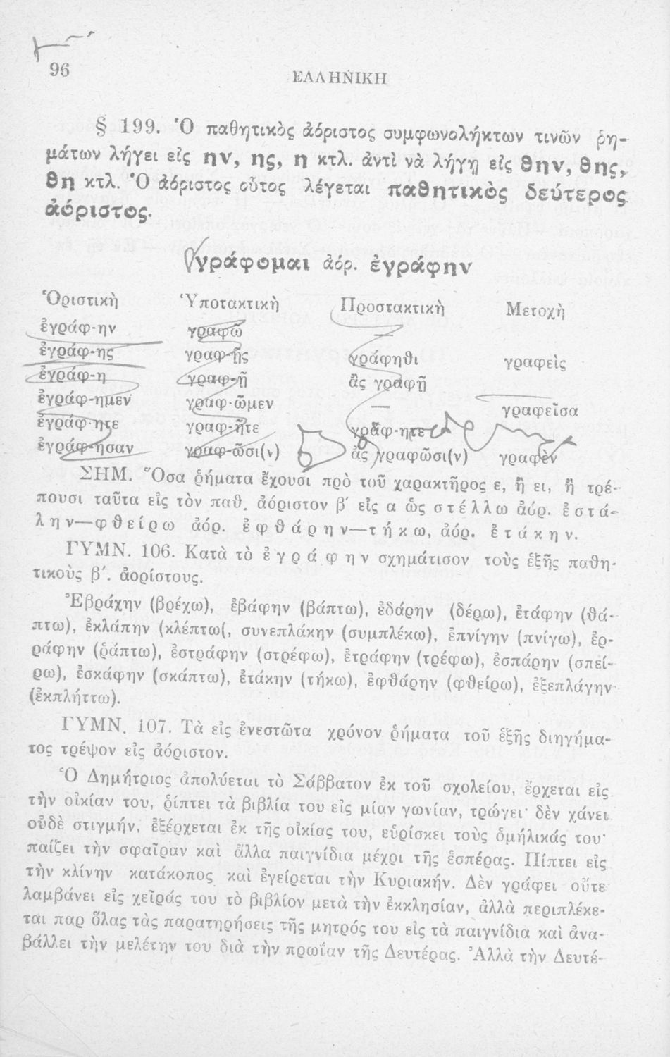 Σχολικό εγχειρίδιο Αρχαίων Ελληνικών Δημοτικού που περιλαμβάνει τους κανόνες γραμματικής και είναι χωρισμένο σε φθογγολογικό, τυπικό και ετυμολογικό μέρος.