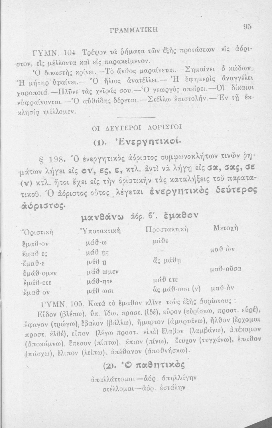 Σχολικό εγχειρίδιο που περιλαμβάνει τη γραμματική της αρχαίας ελληνικής, λεξικό ρημάτων και τους βασικότερους κανόνες του συντακτικού.