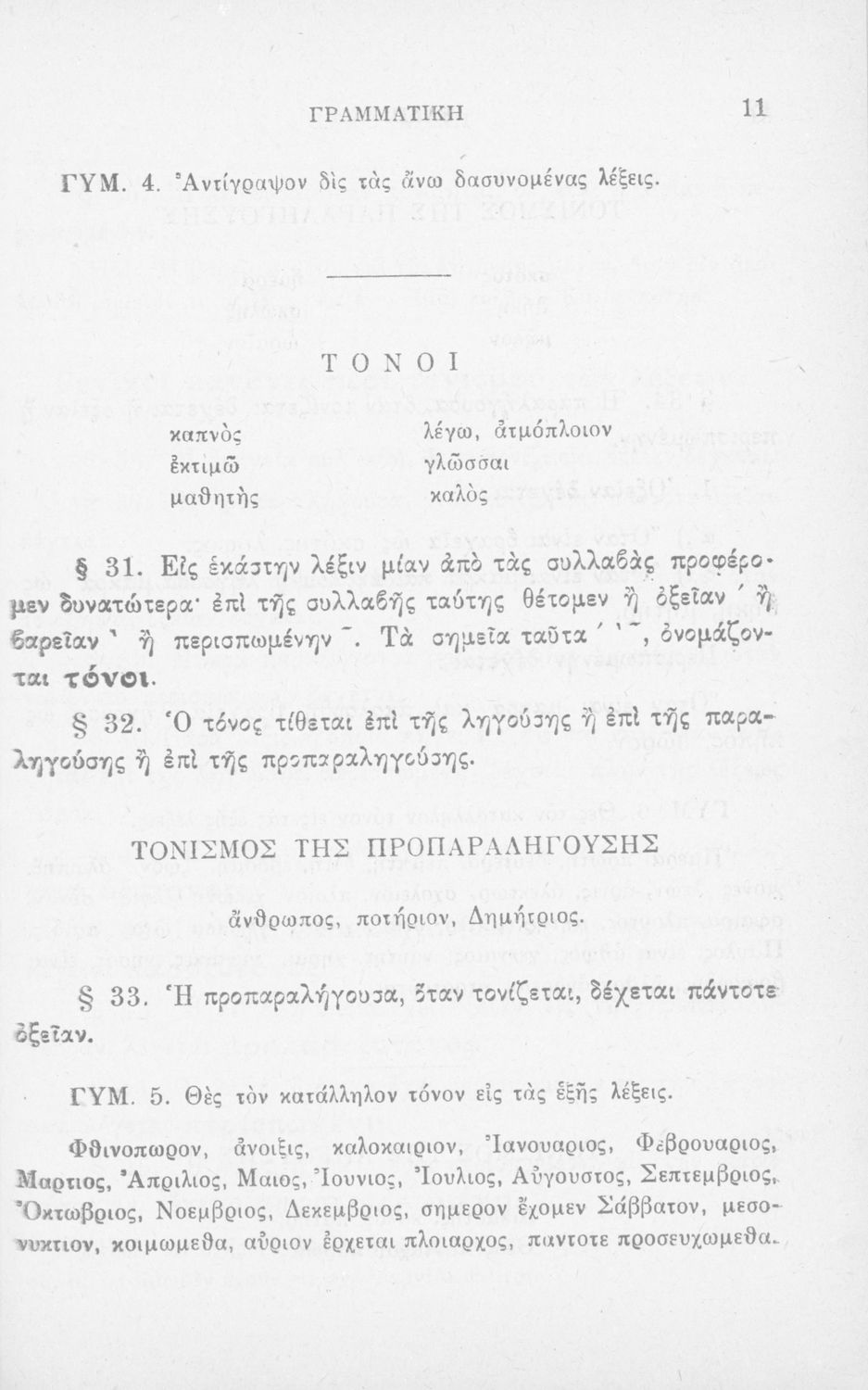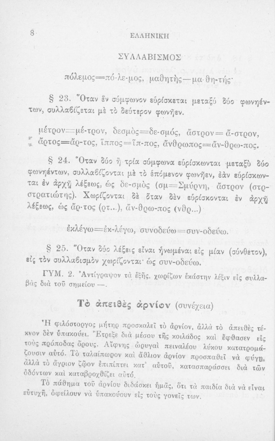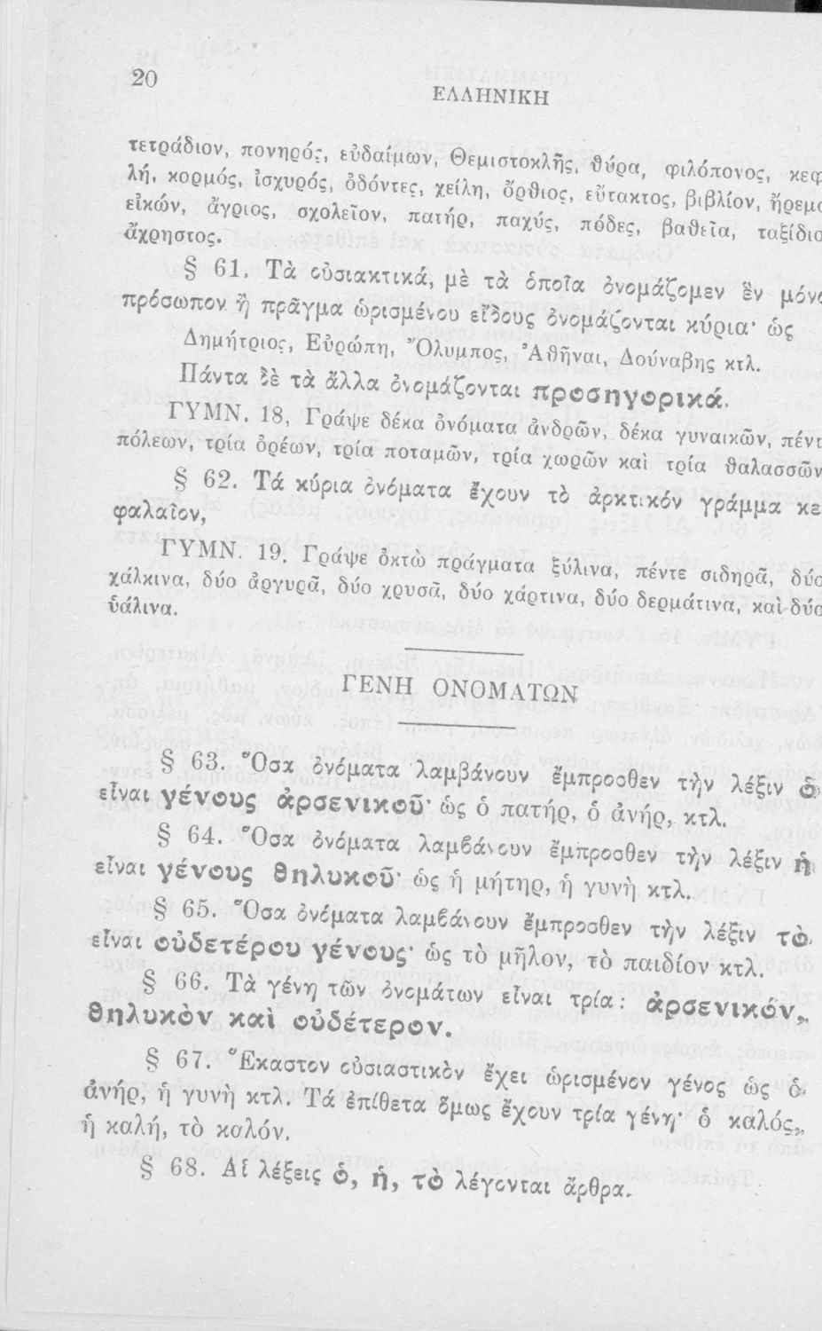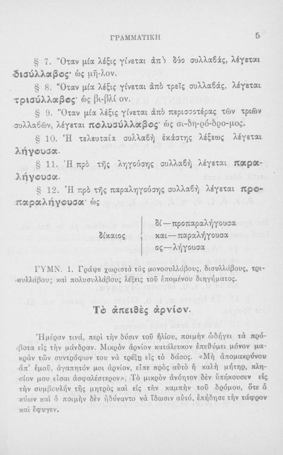Σχολικό εγχειρίδιο Γ΄ και Δ΄ Δημοτικού που περιέχει τη γραμματικής της νέας ελληνικής. Την έκδοση επιμελήθηκε ο Γ. Λογοθέτης, τέως διευθυντής του επταταξίου δημ. Τμήμ.της Ευαγγελικής Σχολής.
