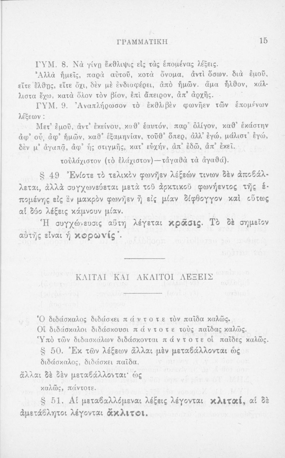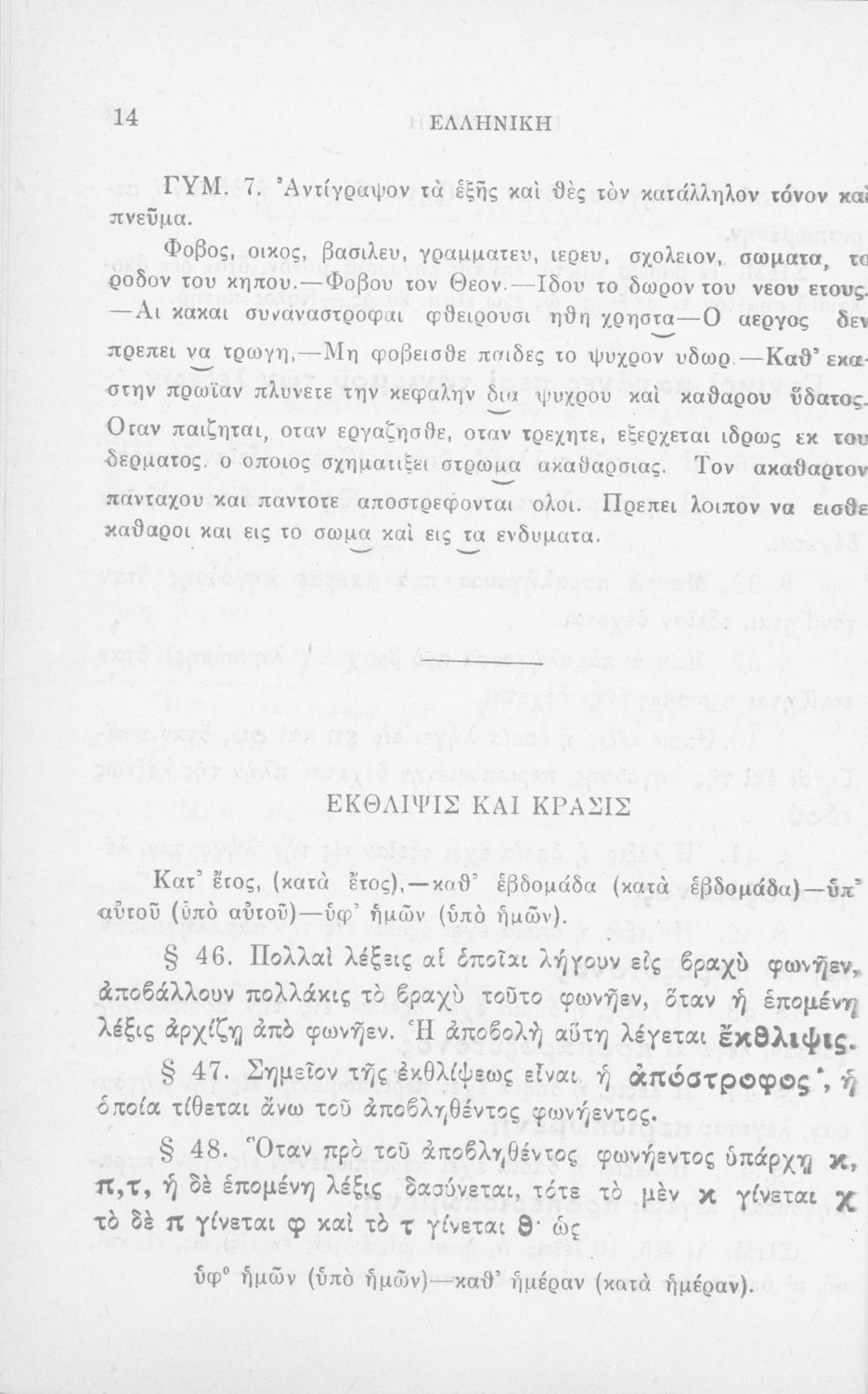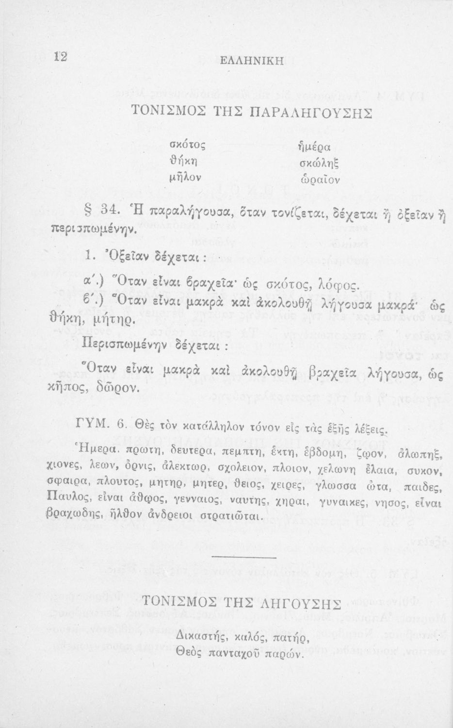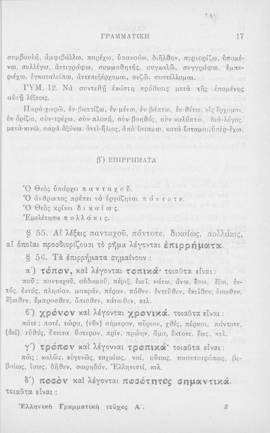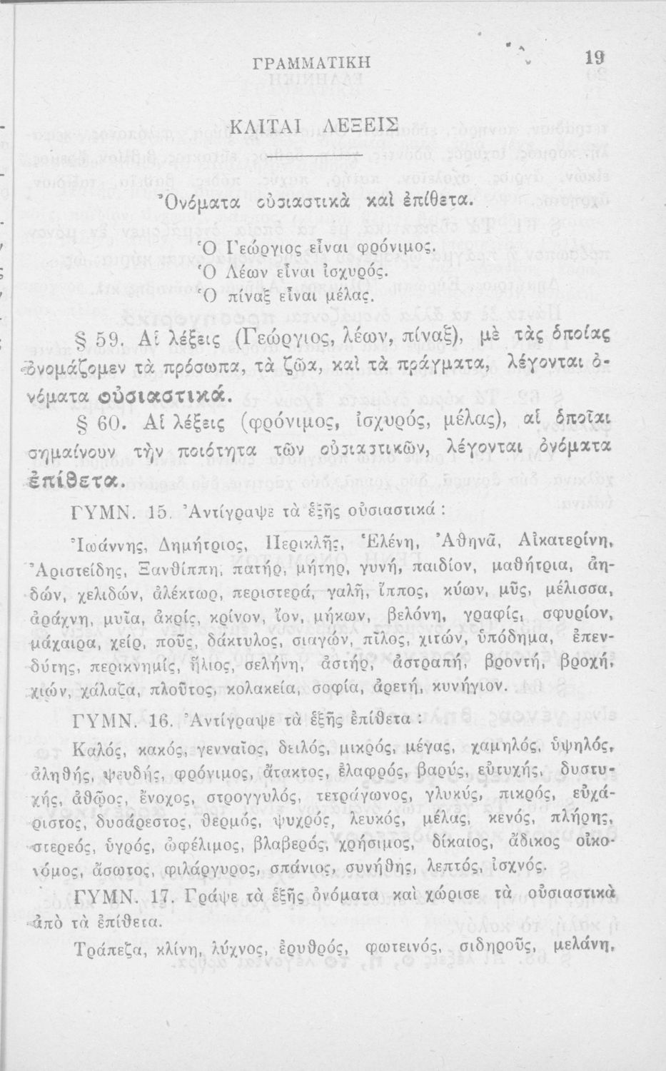 Σχολικό εγχειρίδιο Γ΄ και Δ΄ Δημοτικού που περιέχει τη γραμματικής της νέας ελληνικής. Την έκδοση επιμελήθηκε ο Γ. Λογοθέτης, τέως διευθυντής του επταταξίου δημ. Τμήμ.της Ευαγγελικής Σχολής.