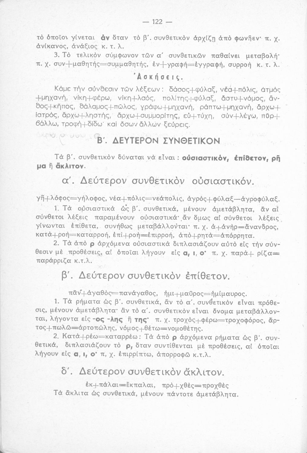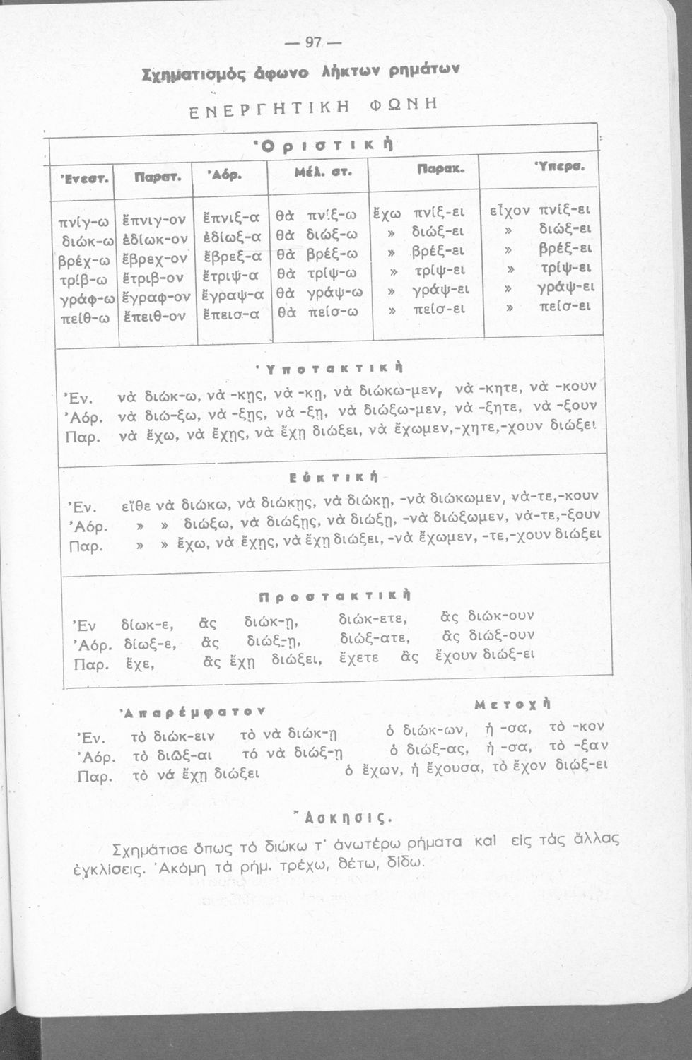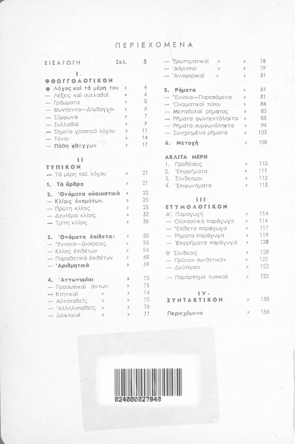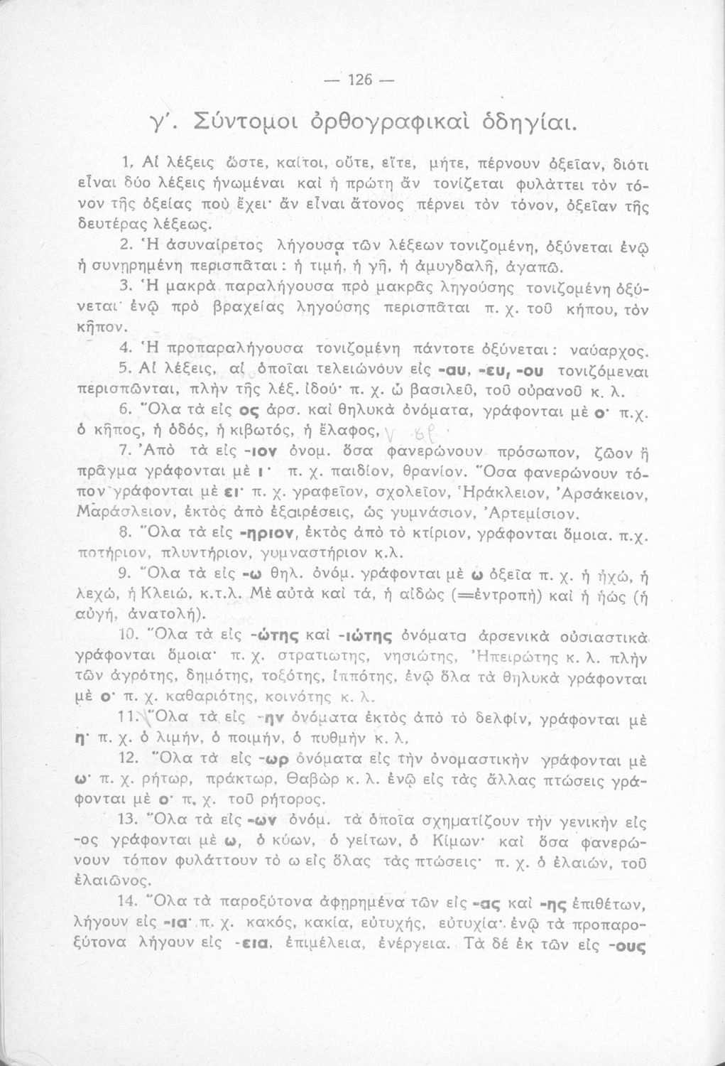 Σχολικό εγχειρίδιο Γλώσσας που περιλαμβάνει τους γραμματικούς κανόνες της καθαρεύουσας και είναι χωρισμένο σε φθογγολογικό και τυπολογικό μέρος