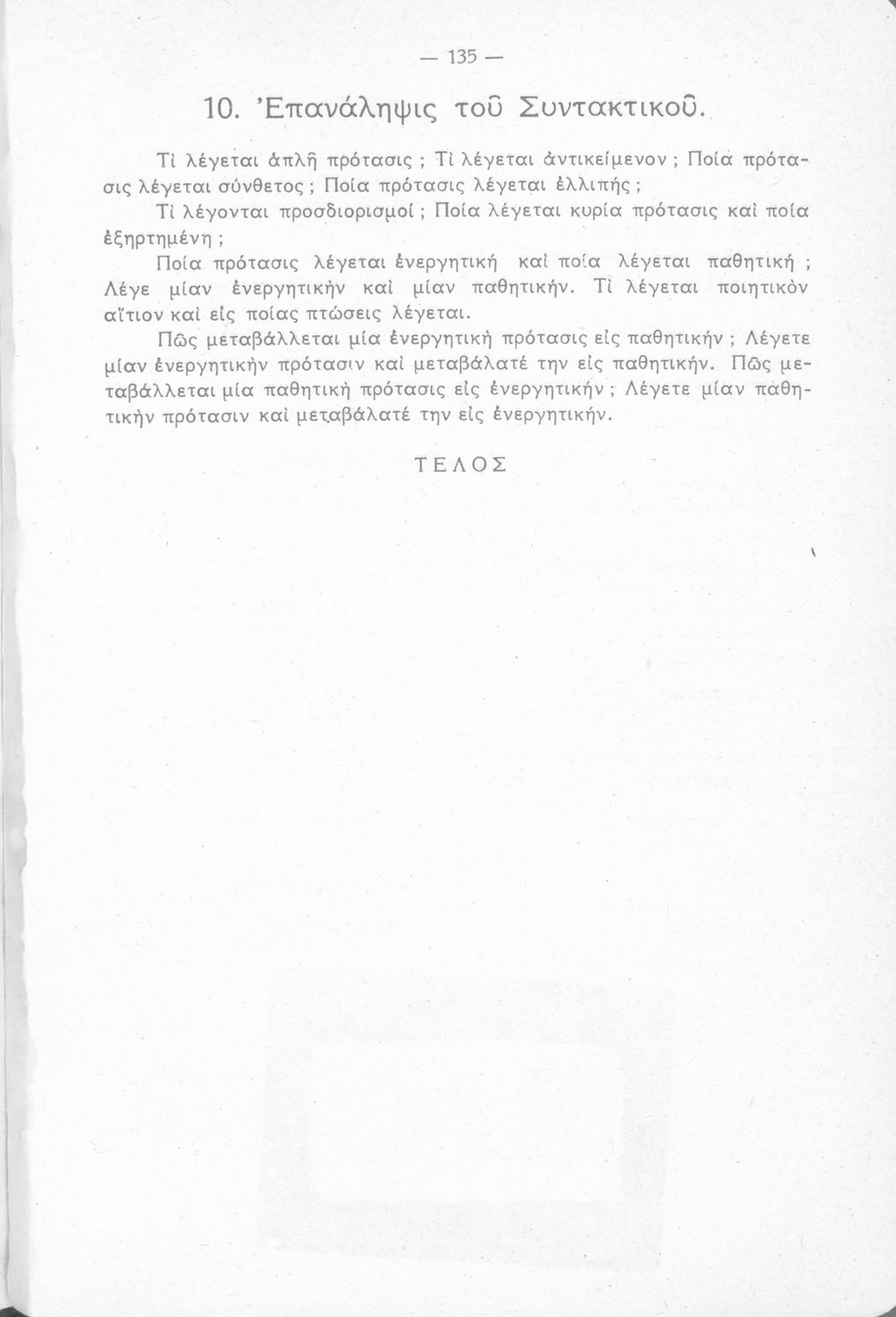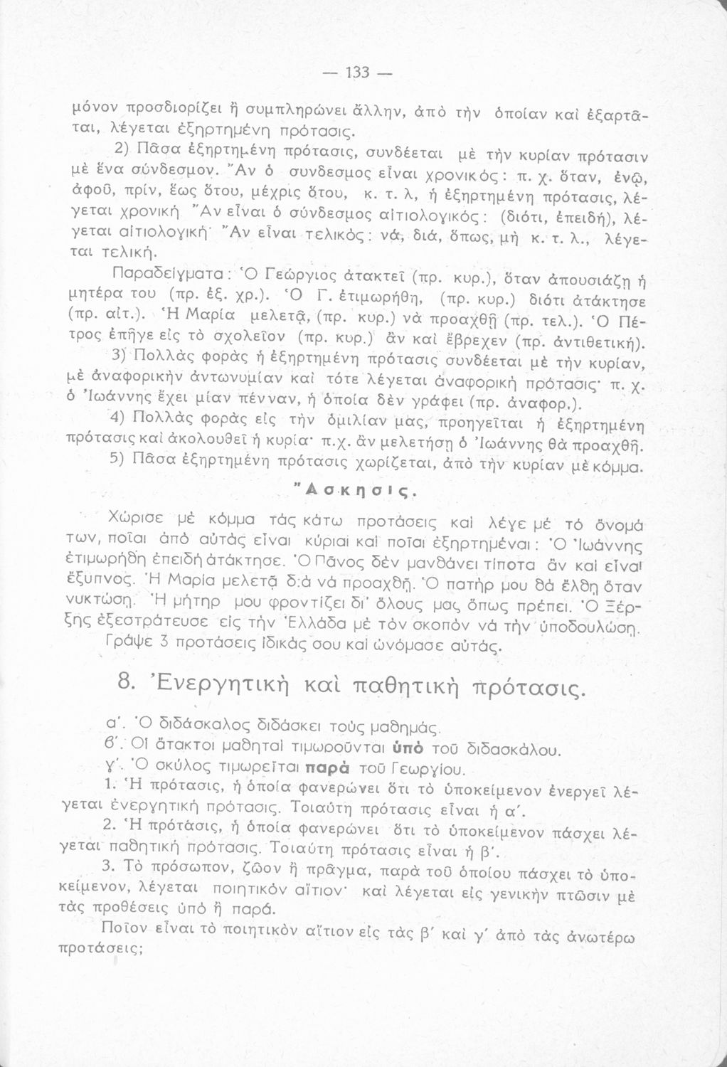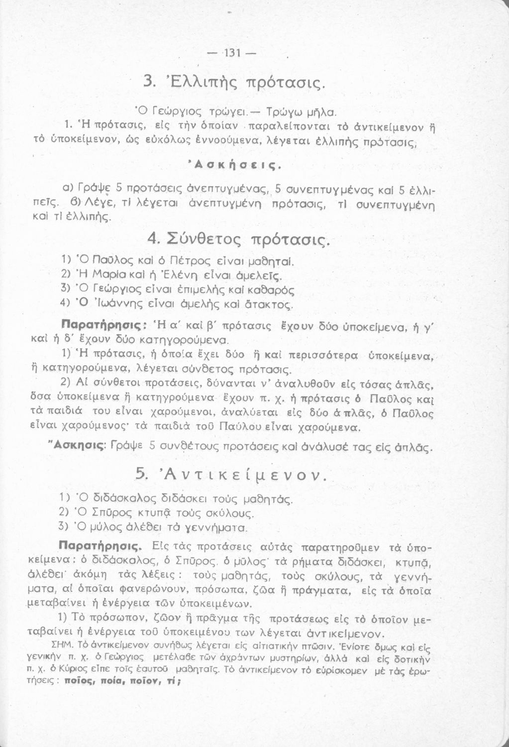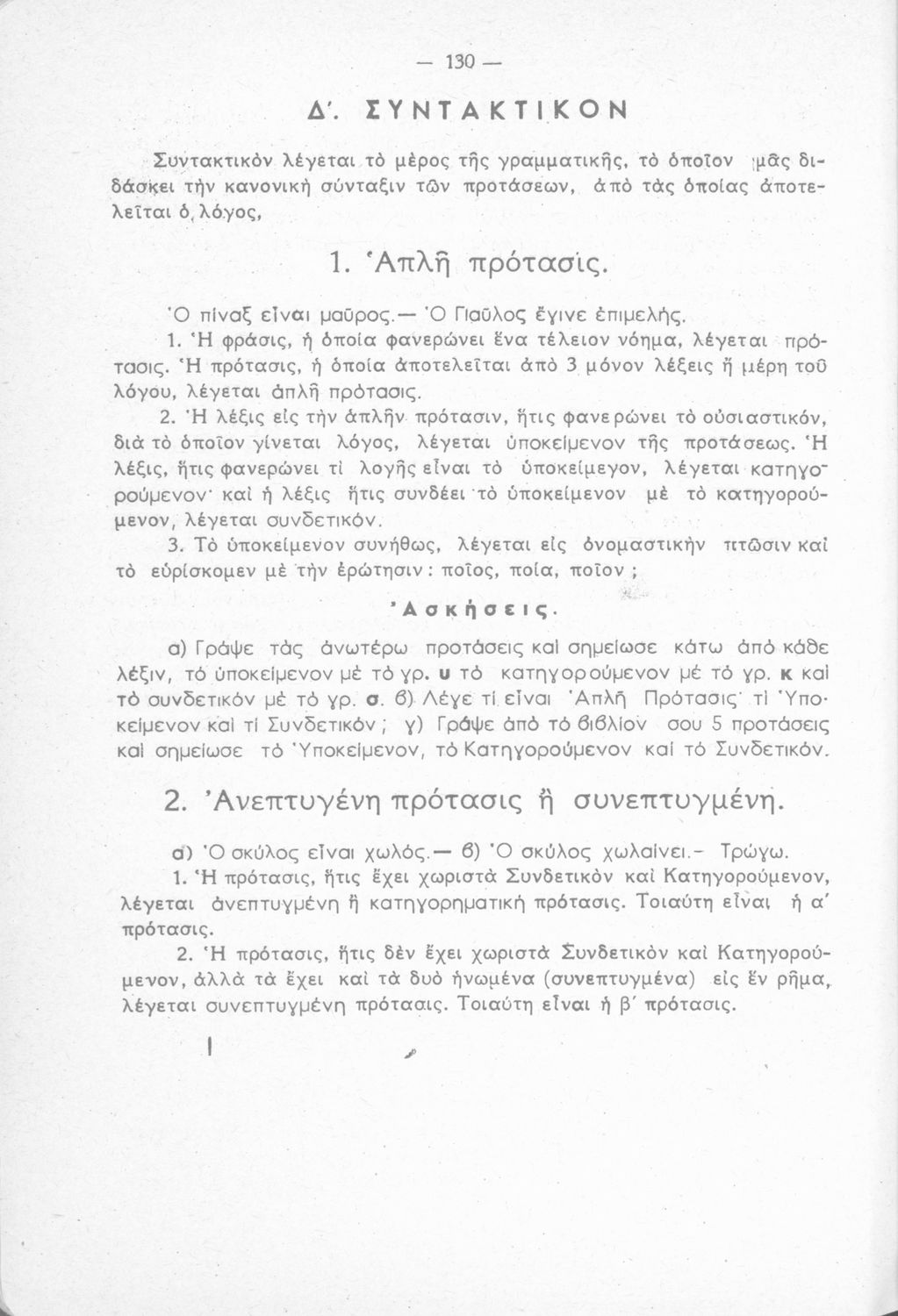 Σχολικό εγχειρίδιο Γραμματικής για τους μαθητές του Δημοτικού. Περιέχει την διδασκαλία της Γραμματικής της Καθαρεύουσας για τα Δημοτικά σχολεία.
