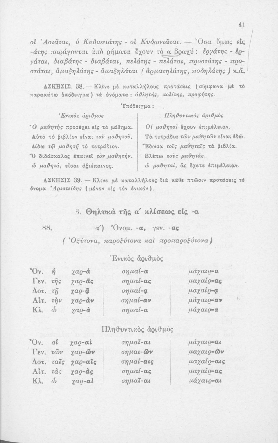 Μαθητικό βοήθημα Ε΄ και ΣΤ΄ Δημοτικού που περιέχει τη γραμματικής της απλής Καθαρεύουσας.