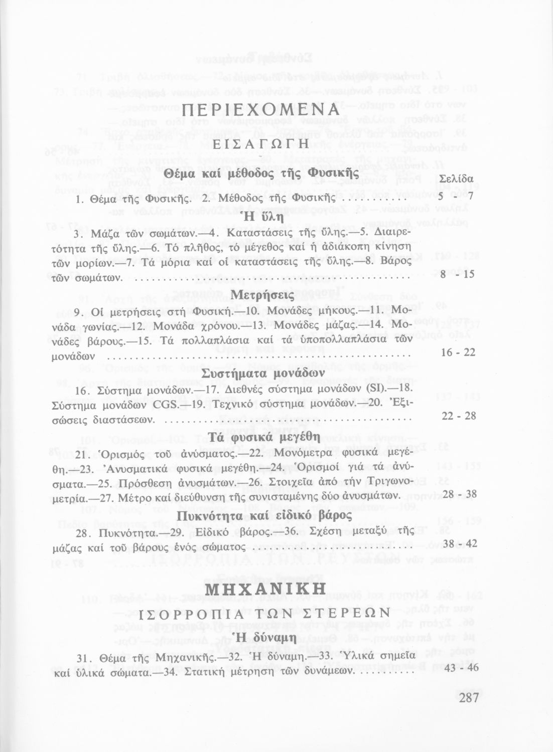 Παιδαγωγικό βοήθημα για το μάθημα της Φυσικής. Αρχικά, αναφέρεται στο σύστημα των φυσικών μονάδων μέτρησης. Στο δεύτερο μέρος περιέχει θεωρία της μηχανικής, της ακουστικής, της θερμότητας, του μαγνητισμού, της