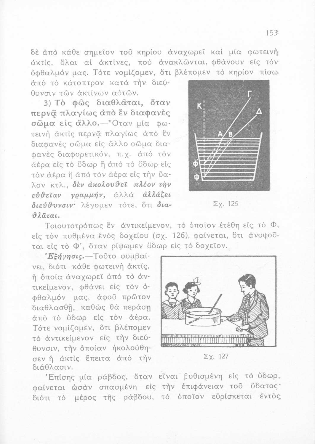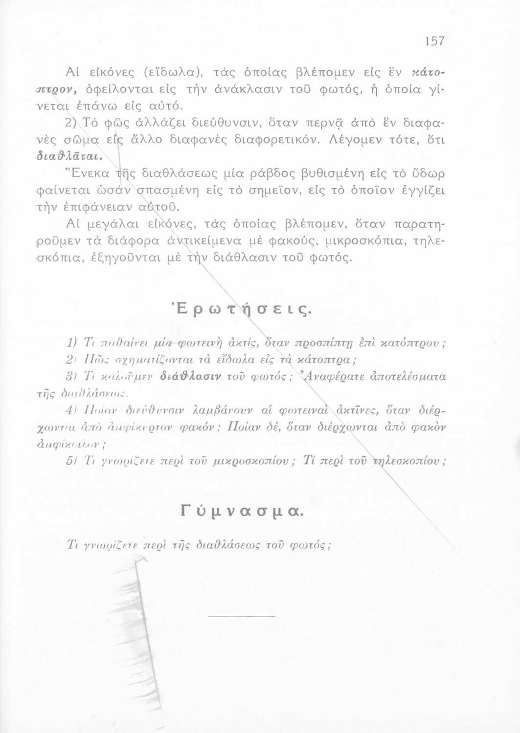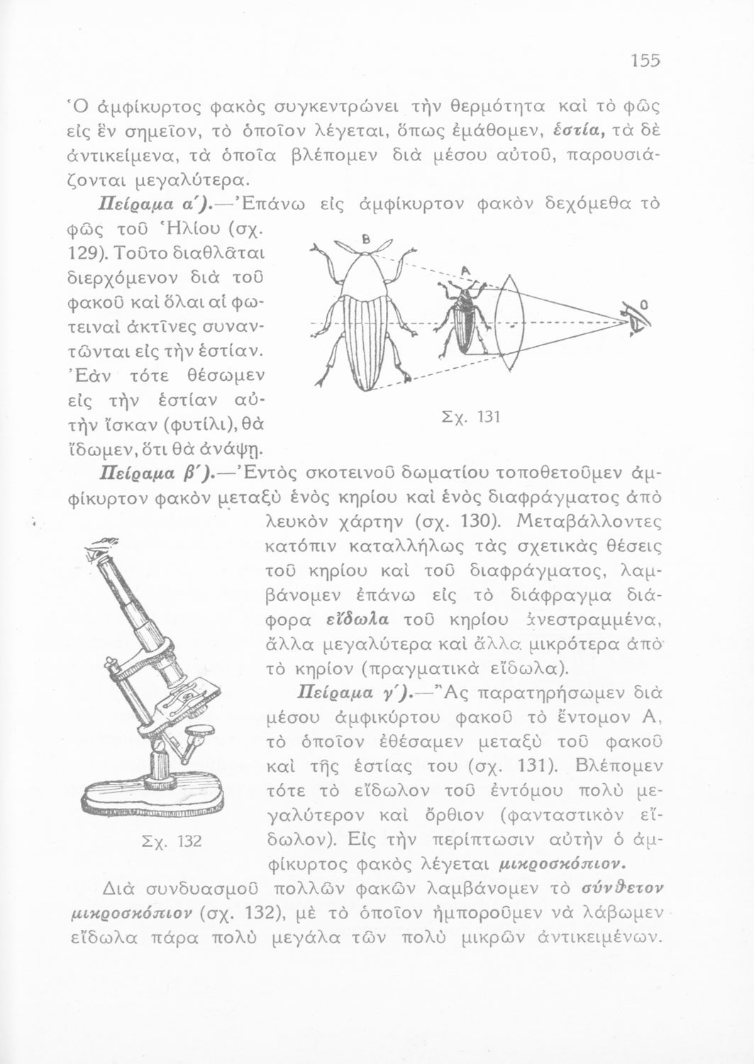 Σχολικό εγχειρίδιο της Α΄ Γυμνασίου για το μάθημα της Φυσικής. Παρέχει βασικές γνώσεις της Φυσικής επιστήμης και της Χημείας. Αναλύει τις ιδιότητες των σωμάτων, καθώς και της θερμότητας, του ηλεκτρισμού και του μαγνητισμού, την υδροστατική, την βαρύτητα και την αεροστατική. Σχετικά με τη Χημεία αναφέρεται στα μέταλλα, στα οξέα, τις βάσεις, τα άλατα. Αναφέρεται στην πρακτική εφαρμογή της Φυσικής και της Χημείας στην καθημερινότητά. Επίσης, περιλαμβάνει πολλά από τα όργανα, που χρησιμοποιούνται στη φυσική, και τη χημεία. Περιέχει εικόνες και σχεδιαγράμματα τα οποία βοηθούν τη διδασκαλία. Προτείνεται μια συγκεκριμένη δομή για τη διδασκαλία σύμφωνα με την οποία το μάθημα διαρθρώνεται αρχικά στην ανάγνωση, που αναφέρεται στη θεωρία, στην περίληψη των σημαντικότερων σημείων, στις ερωτήσεις κατανόησης και τέλος στο γύμνασμα, το οποίο είναι η πρακτική εφαρμογή για την εμπέδωση της θεωρίας.
