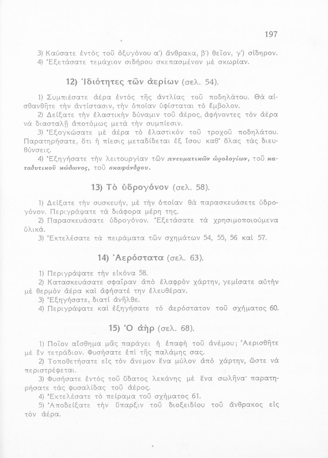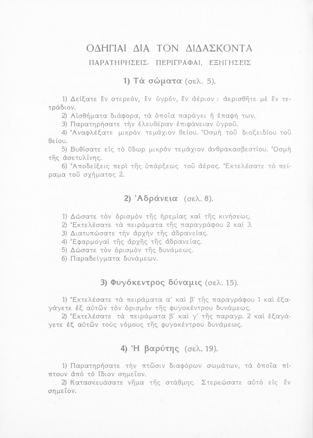 Σχολικό εγχειρίδιο Φυσικής και Χημείας που προσδιορίζει τη μηχανική στερεών σωμάτων, αναφέρει τις ιδιότητες ποικίλων στοιχείων της φύσης (οξυγόνο, υδρογόνο, αέρα, νερό) περιγράφοντας τις χημικές ενώσεις που ...