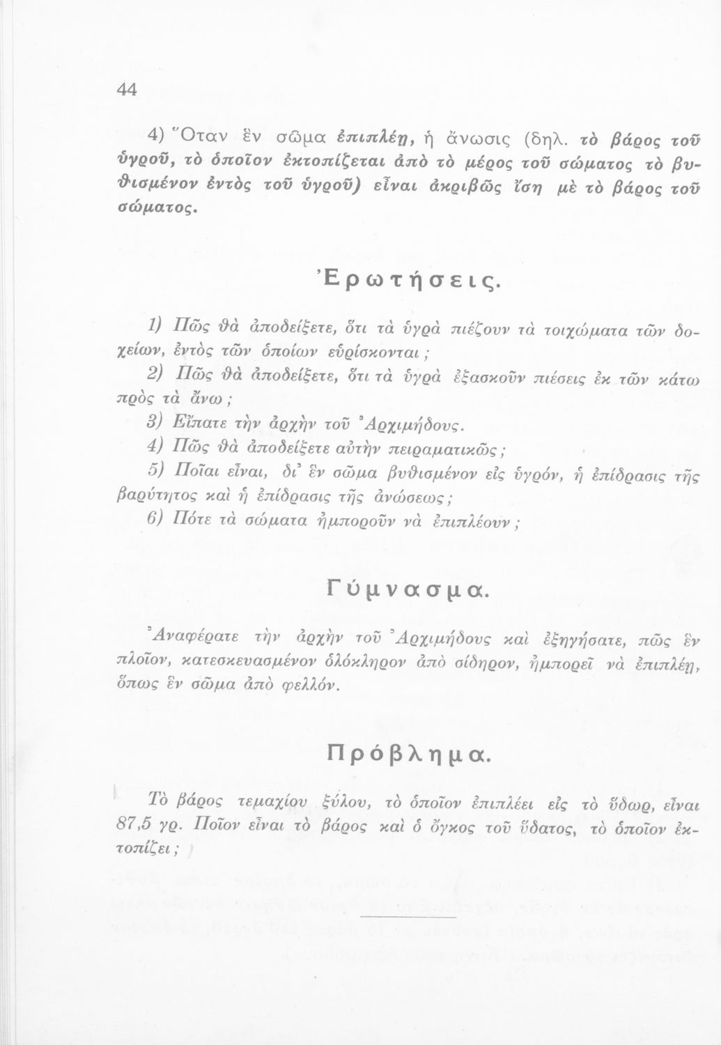Σχολικό εγχειρίδιο Φυσικής και Χημείας που προσδιορίζει τη μηχανική στερεών σωμάτων, αναφέρει τις ιδιότητες ποικίλων στοιχείων της φύσης (οξυγόνο, υδρογόνο, αέρα, νερό) περιγράφοντας τις χημικές ενώσεις που ...