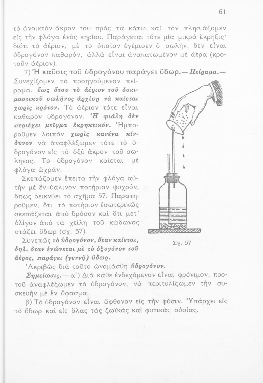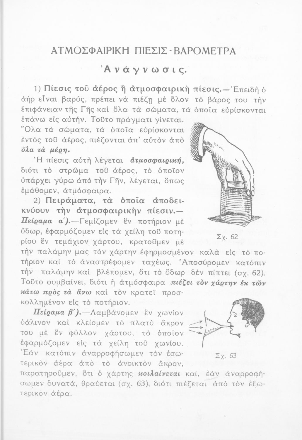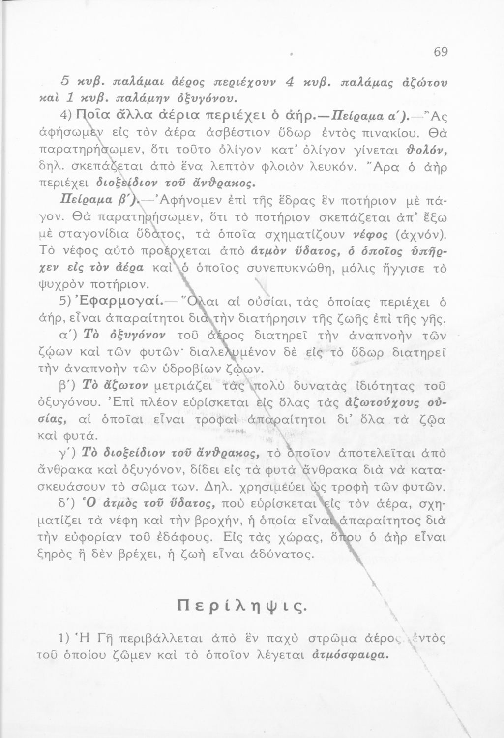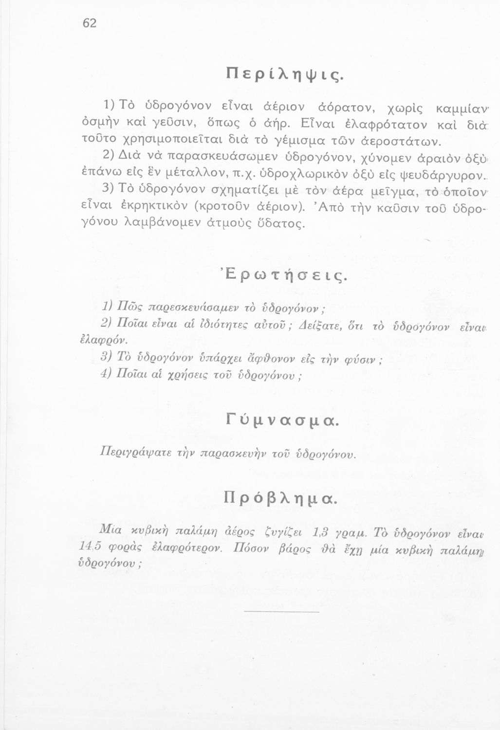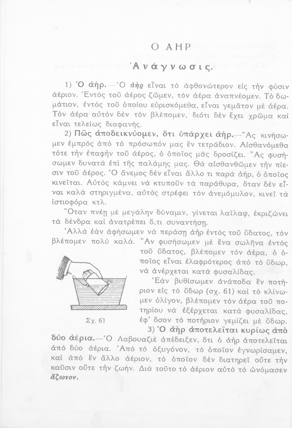 Σχολικό εγχειρίδιο Φυσικής και Χημείας που προσδιορίζει τη μηχανική στερεών σωμάτων, αναφέρει τις ιδιότητες ποικίλων στοιχείων της φύσης (οξυγόνο, υδρογόνο, αέρα, νερό) περιγράφοντας τις χημικές ενώσεις που ...