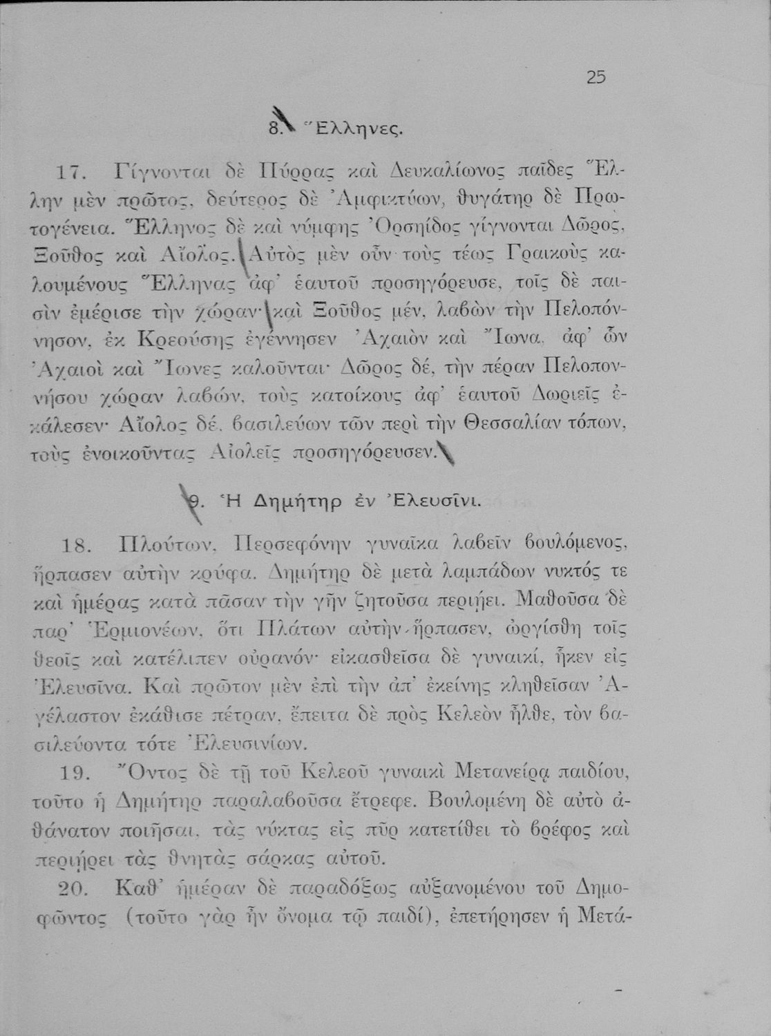 Σχολικό εγχειρίδιο Αρχαίων Ελληνικών Β΄ και Γ΄ Γυμνασίου και Αστικού Σχολείου που περιέχει αποσπάσματα από έργα αρχαίων Ελλήνων συγγραφέων, ερμηνευτικά και πραγματολογικά σχόλια και γραμματικές παρατηρήσεις.
