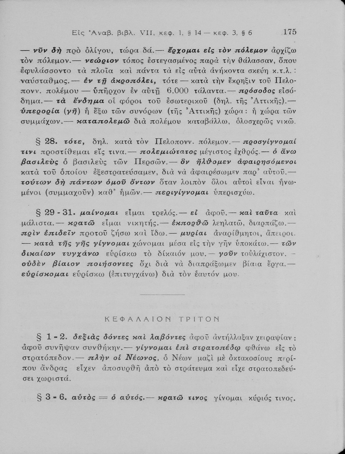 Σχολικό εγχειρίδιο της Γ' Ελληνικού Σχολείου και Αστικών Σχολείων για το μάθημα των Αρχαίων Ελληνικών. Το σύγγραμμα περιλαμβάνει κείμενα κατ΄ επιλογή από τα τέσσερα τελευταία βιβλία του έργου Κύρου Ανάβασις. ...