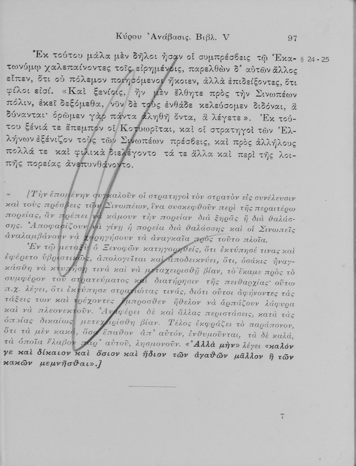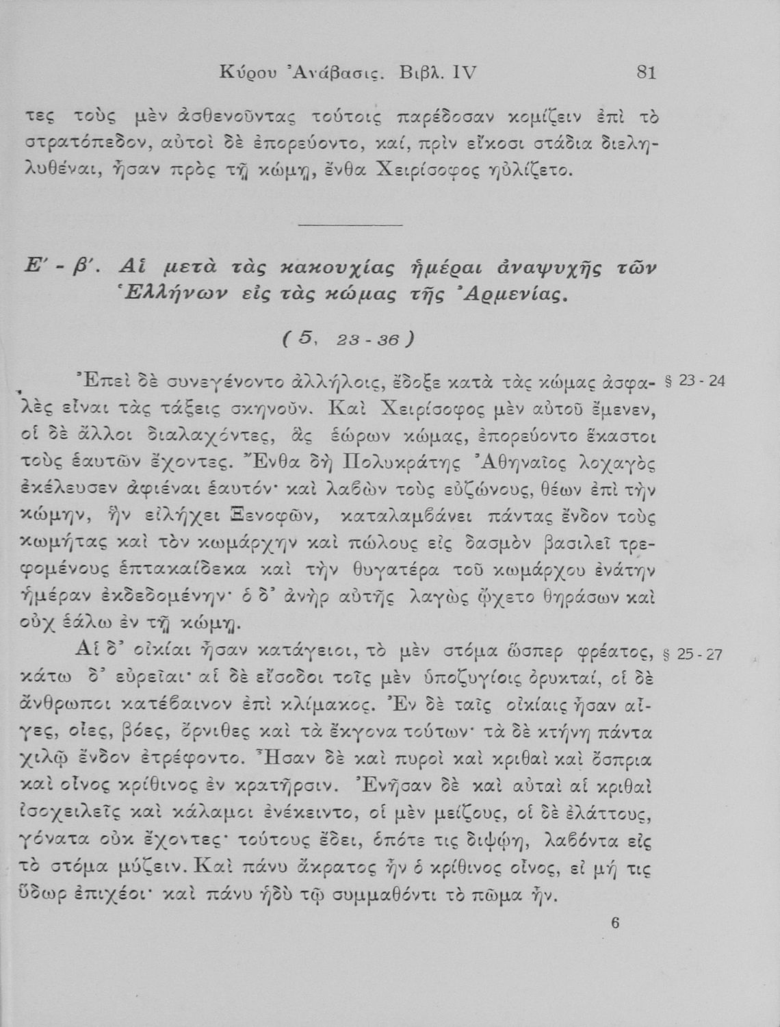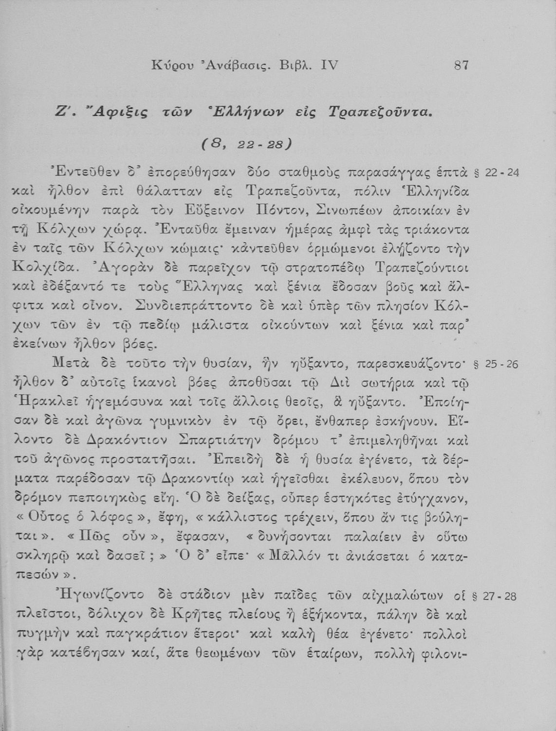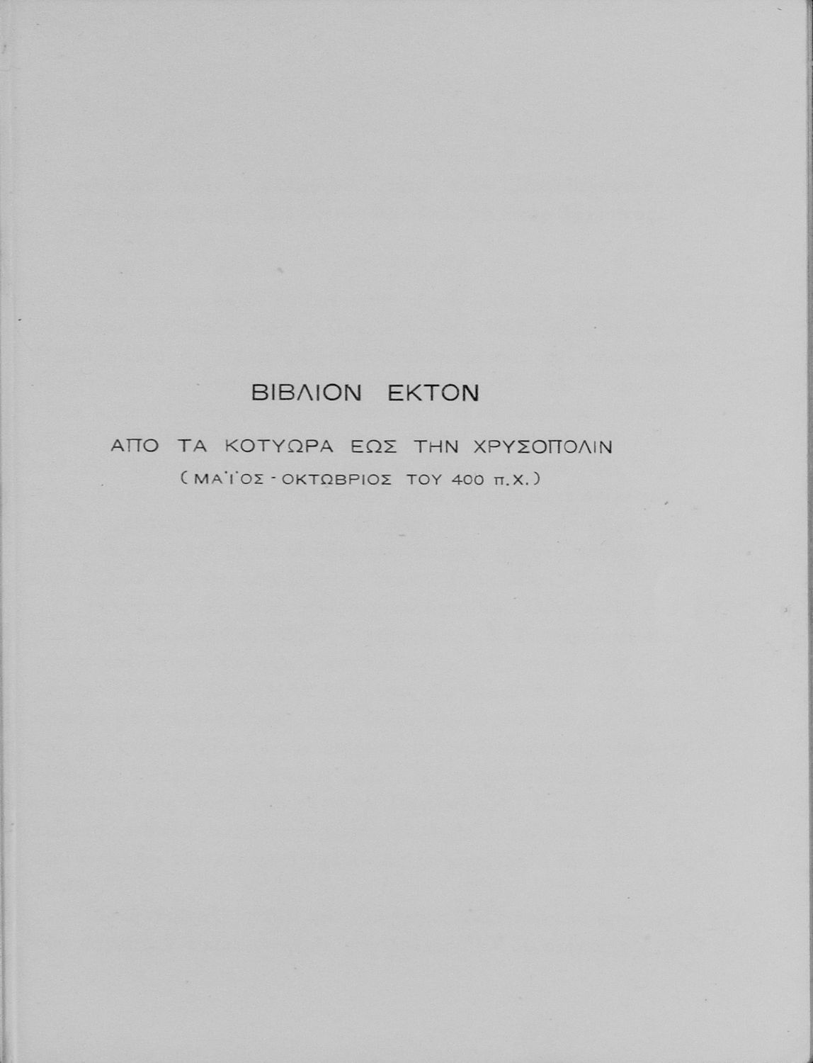 Σχολικό εγχειρίδιο της Γ' Ελληνικού Σχολείου και Αστικών Σχολείων για το μάθημα των Αρχαίων Ελληνικών. Το σύγγραμμα περιλαμβάνει κείμενα κατ΄ επιλογή από τα τέσσερα τελευταία βιβλία του έργου Κύρου Ανάβασις. ...