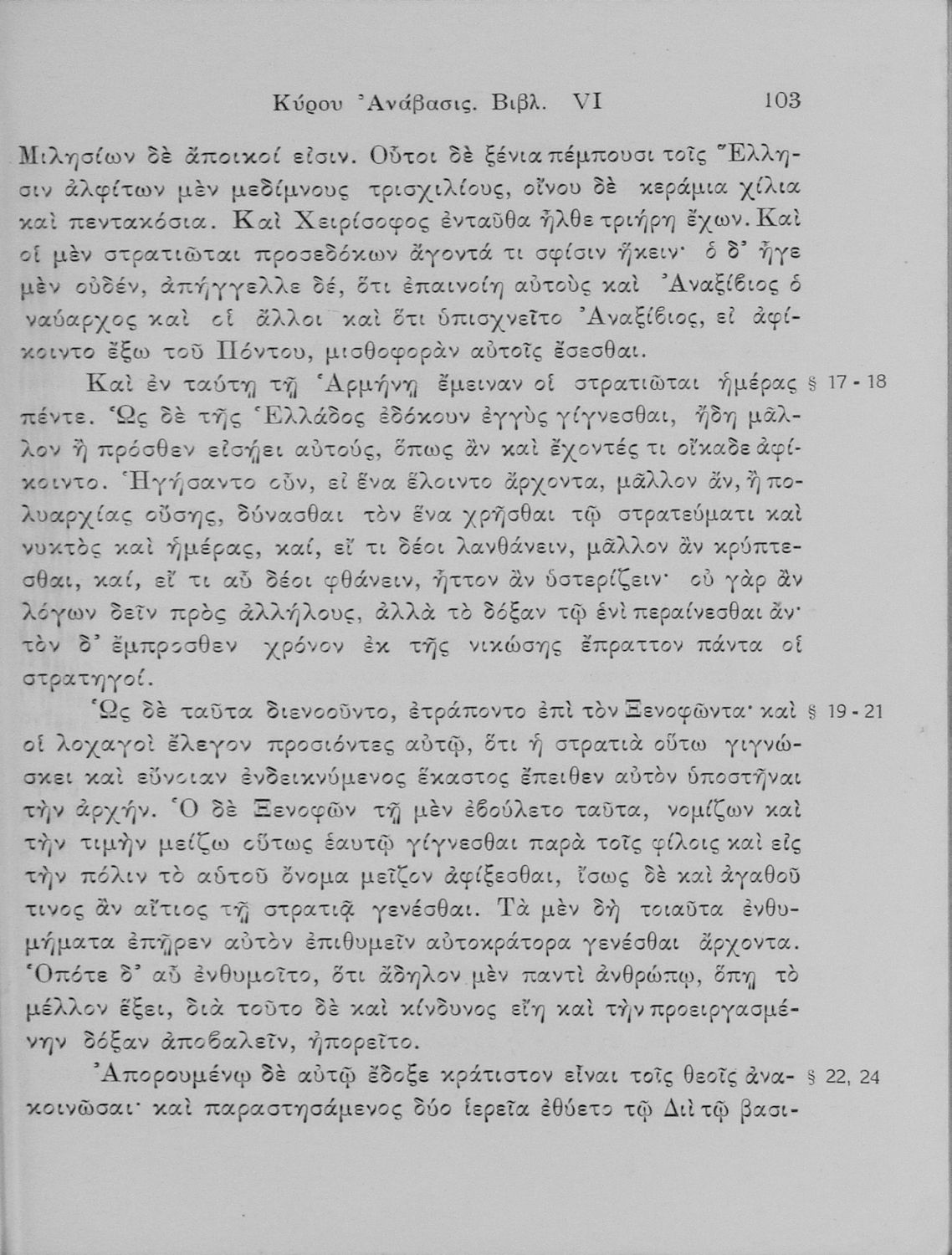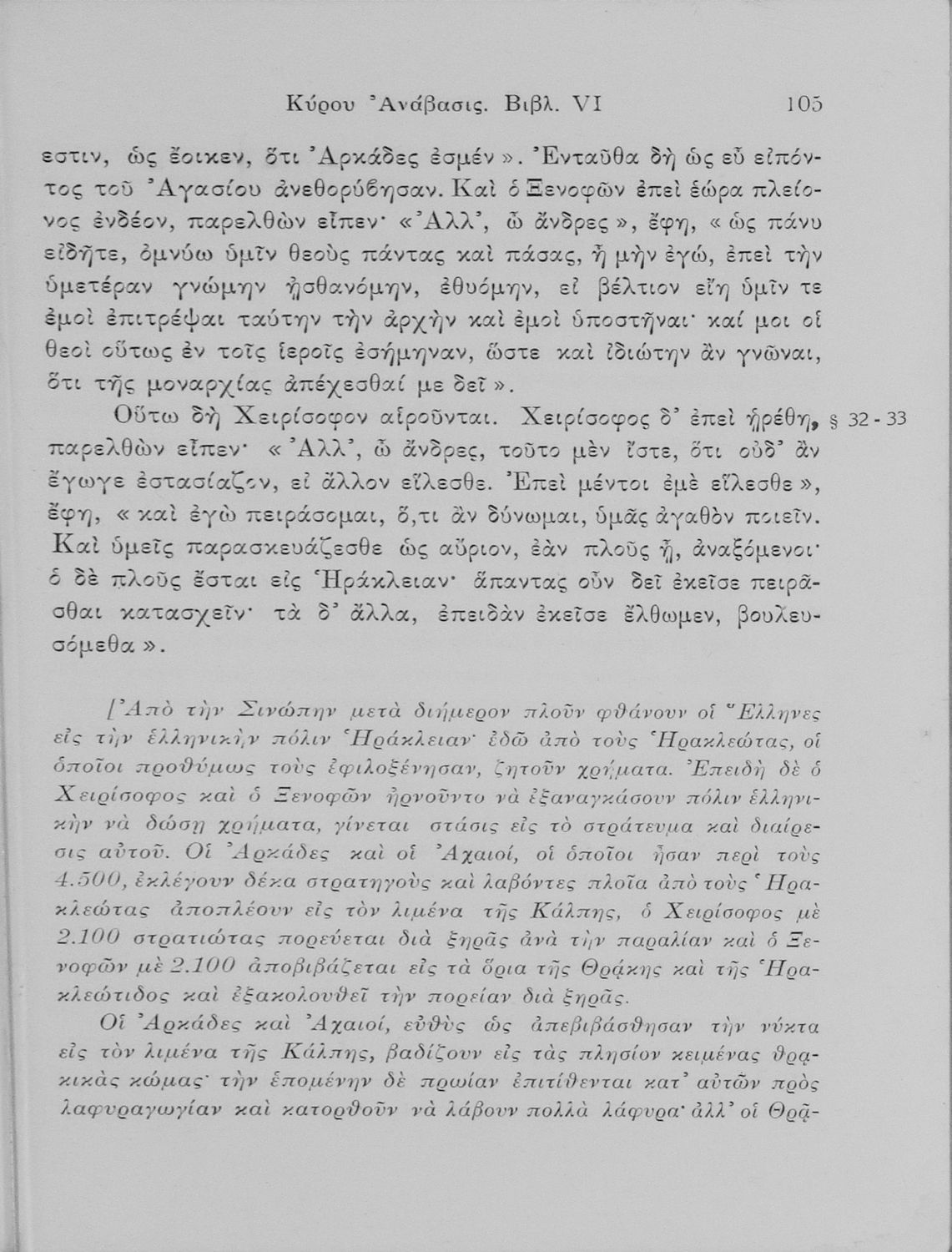 Σχολικό εγχειρίδιο της Γ' Ελληνικού Σχολείου και Αστικών Σχολείων για το μάθημα των Αρχαίων Ελληνικών. Το σύγγραμμα περιλαμβάνει κείμενα κατ΄ επιλογή από τα τέσσερα τελευταία βιβλία του έργου Κύρου Ανάβασις. ...
