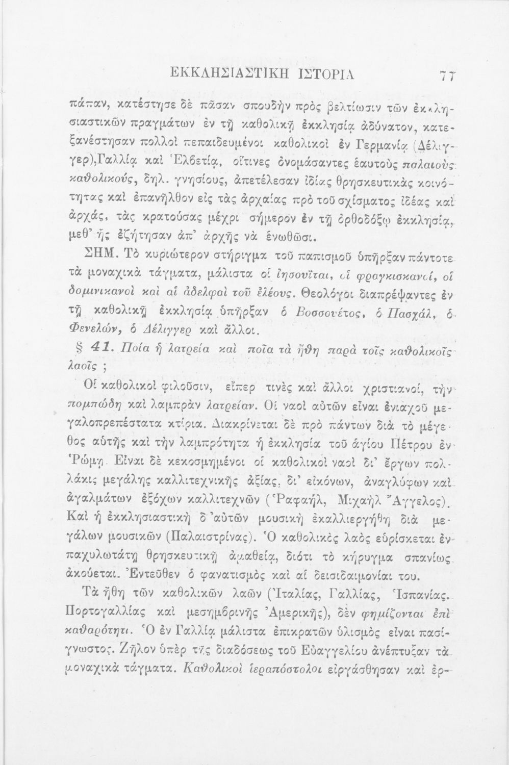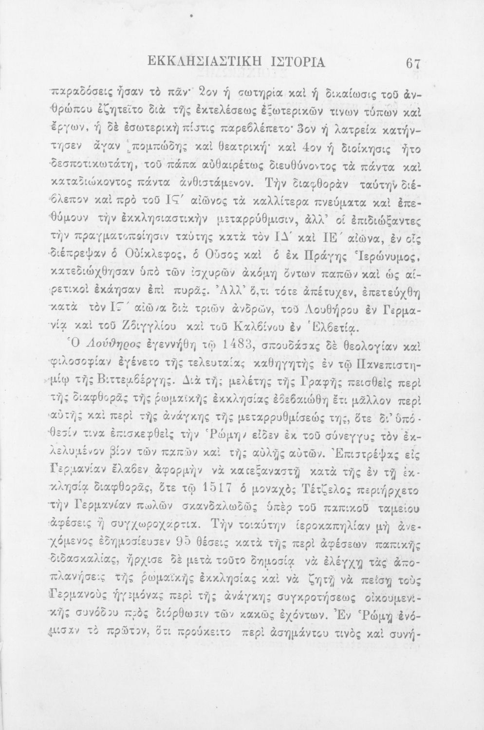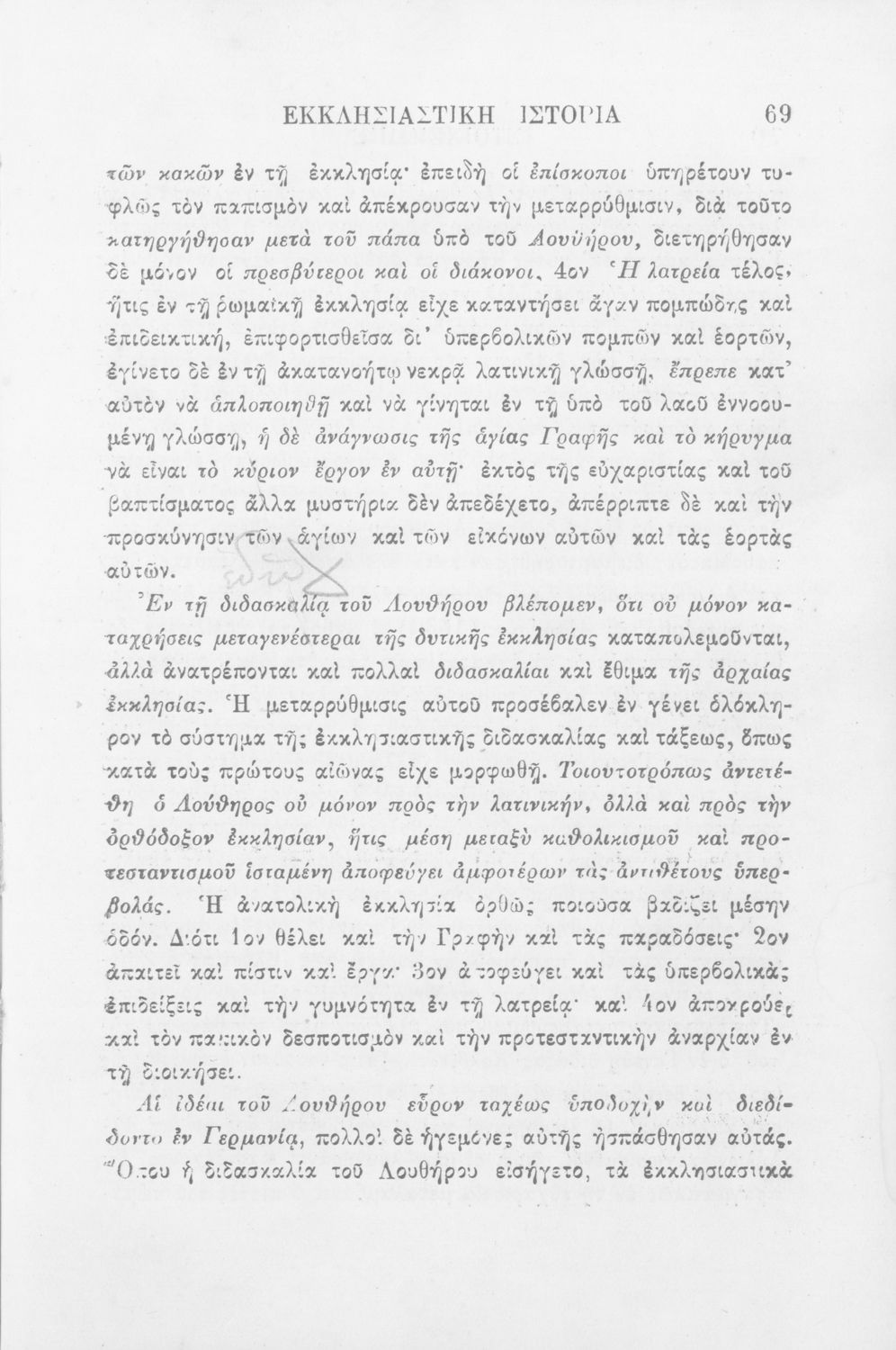Σχολικό εγχειρίδιο Θρησκευτικών. Περιέχει την ιστορία της Εκκλησίας από την ίδρυσή της μέχρι την δημιουργία της Εκκλησίας της Ελλάδας. Ο συγγραφέας ήταν καθηγητής της Θεολογίας στο Εθνικό Πανεπιστήμιο.