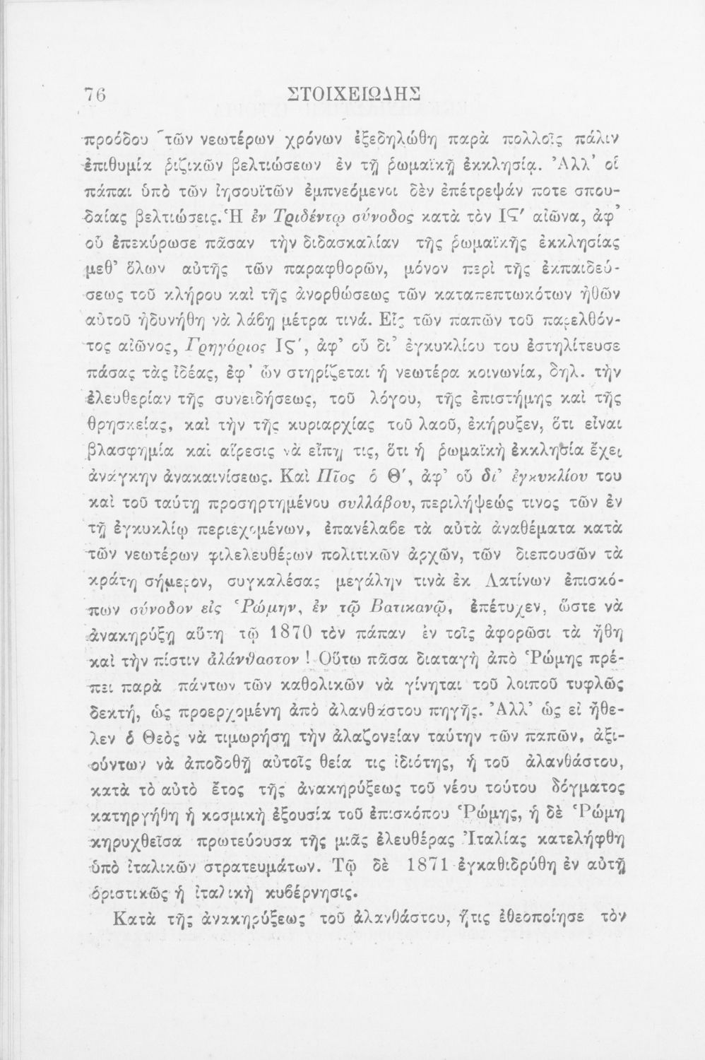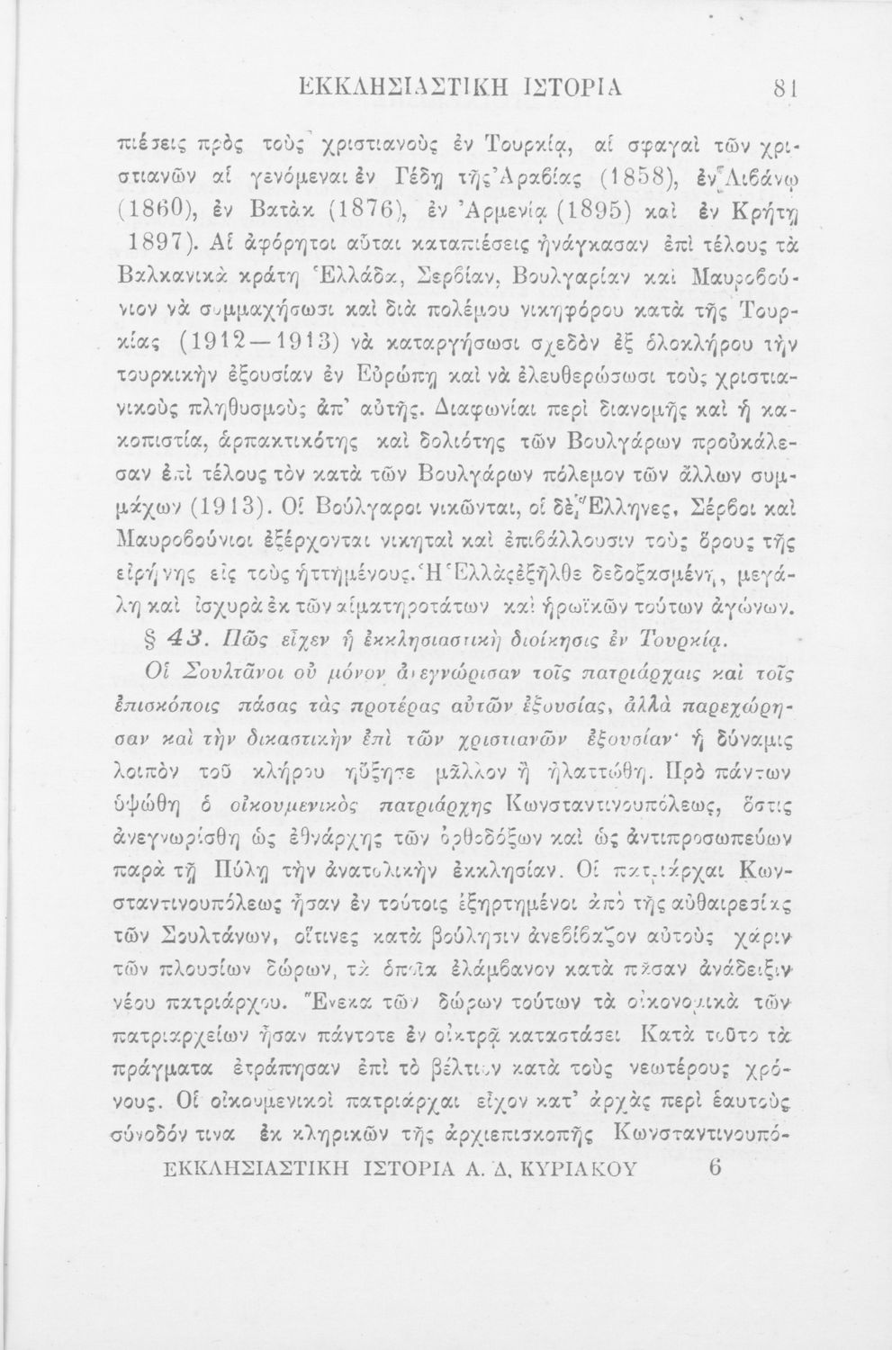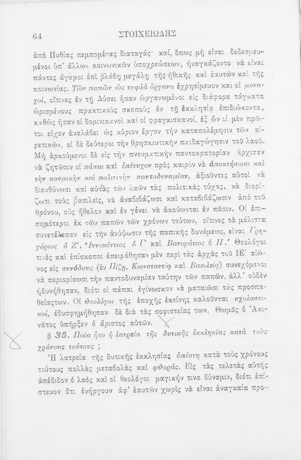 Σχολικό εγχειρίδιο Θρησκευτικών. Περιέχει την ιστορία της Εκκλησίας από την ίδρυσή της μέχρι την δημιουργία της Εκκλησίας της Ελλάδας. Ο συγγραφέας ήταν καθηγητής της Θεολογίας στο Εθνικό Πανεπιστήμιο.