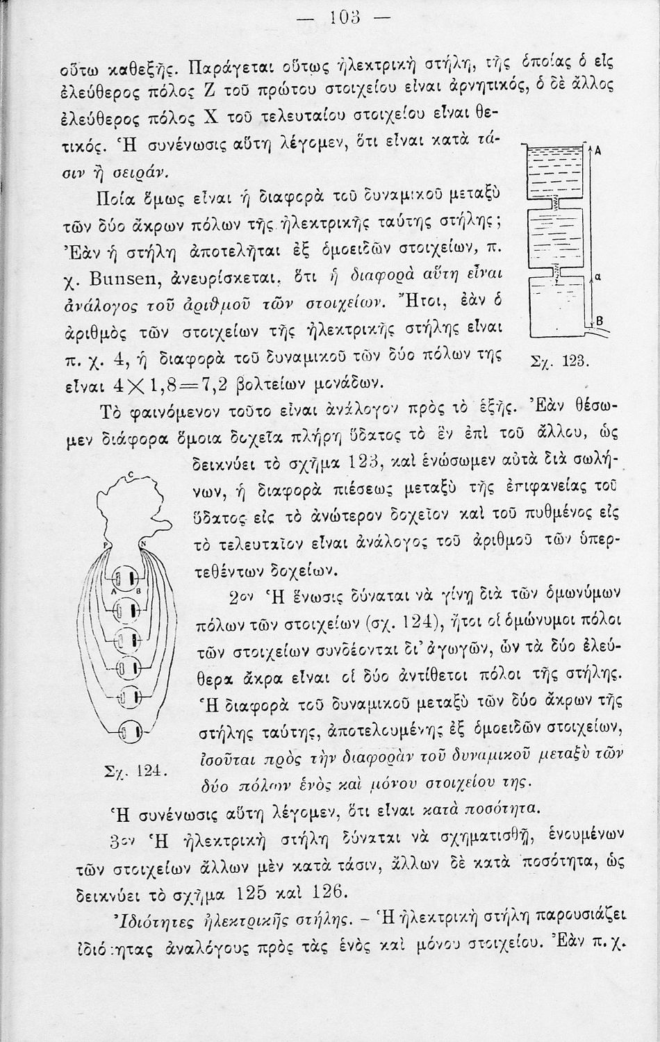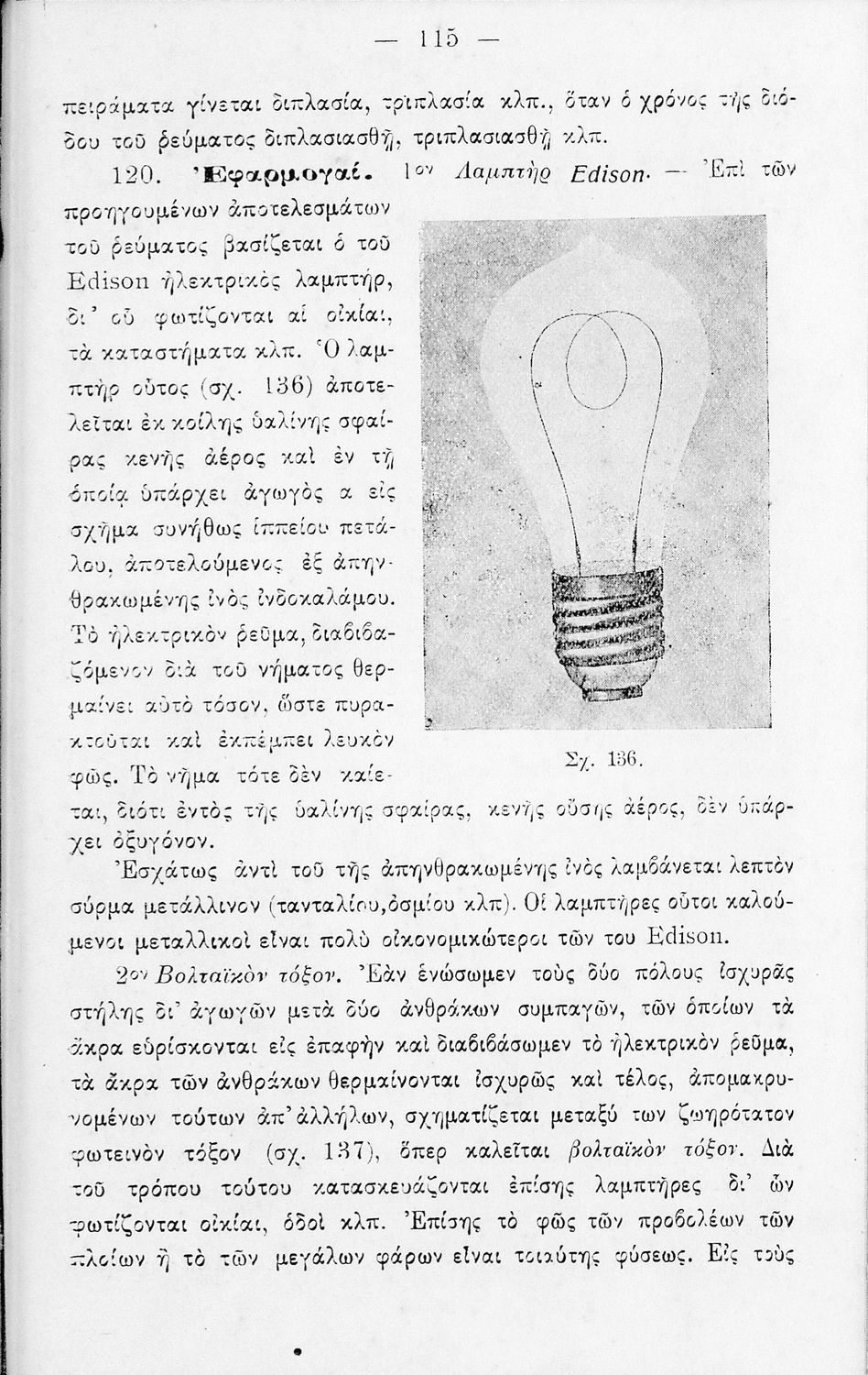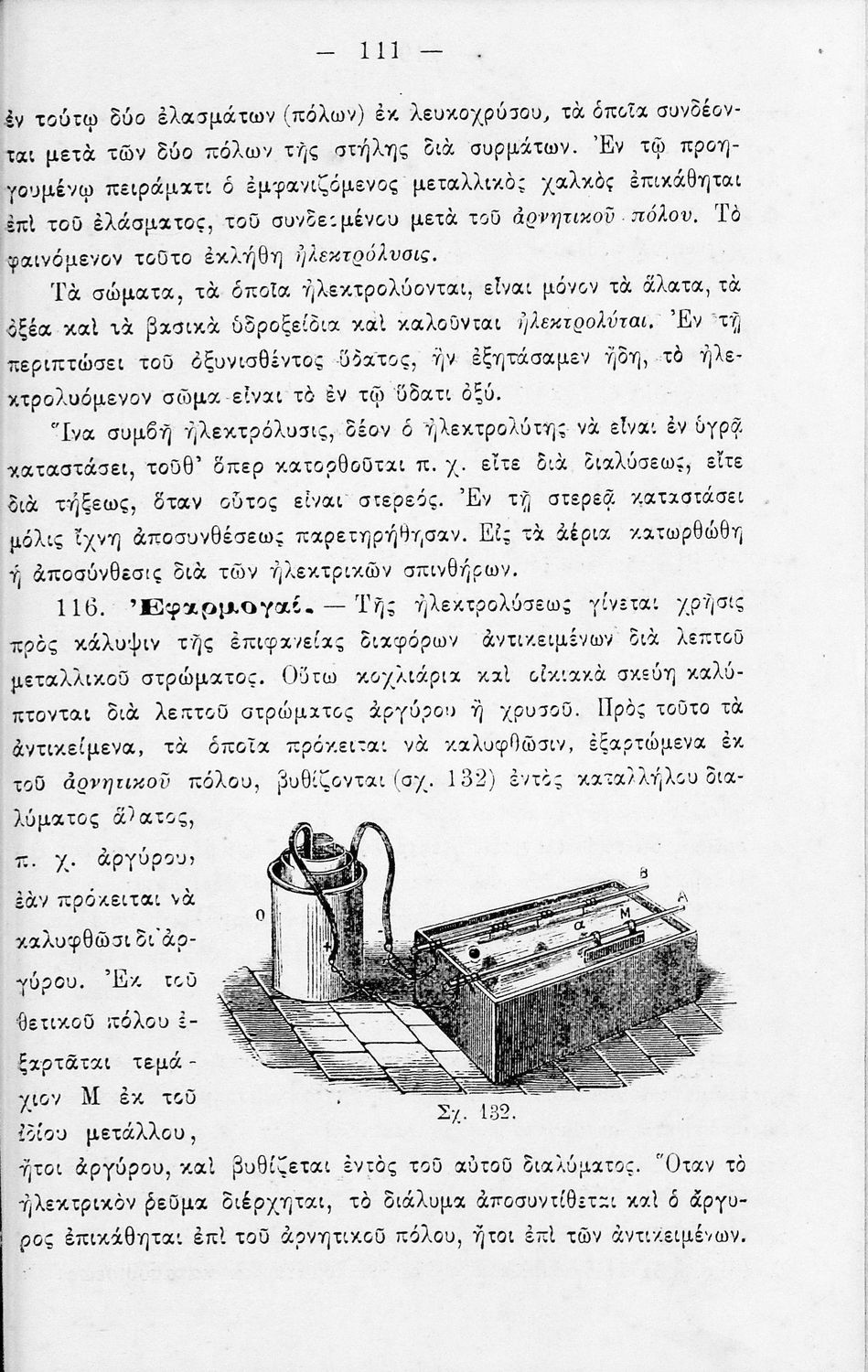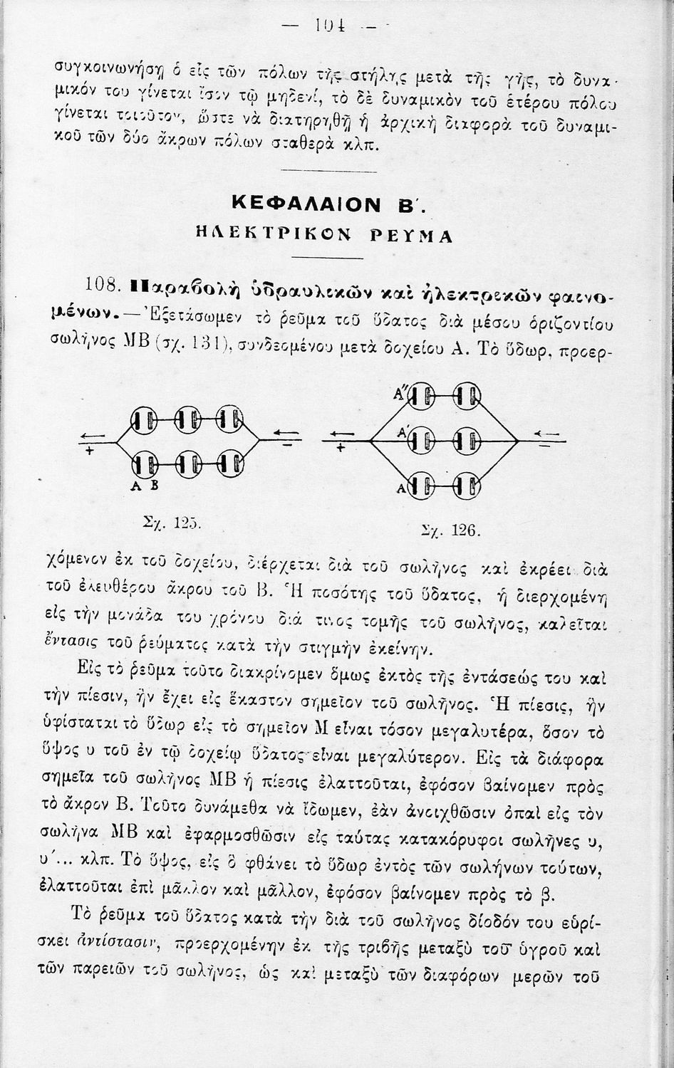 Βαθμίδα εκπαίδευσης: Δευτεροβάθμια Τάξη: Δ' Γυμνασίου Μάθημα: Φυσική Γλώσσα: Καθαρεύουσα Παρουσίαση περιεχομένου: Σχολικό εγχειρίδιο της Δ΄ Γυμνασίου για το μάθημα της Φυσικής. Παρέχει βασικές γνώσεις της φυσικής επιστήμης και της χημείας. Αναλύει τις ιδιότητες των σωμάτων, καθώς και της θερμότητας, του ηλεκτρισμού και του μαγνητισμού, την υδροστατική, την βαρύτητα και την αεροστατική. Αναφέρει πολλά από τα όργανα, που χρησιμοποιούνται στη φυσική, καθώς και τις πρακτικές εφαρμογές της επιστήμης στην καθημερινότητα. Περιέχει εικόνες και σχεδιαγράμματα τα οποία βοηθούν τη διδασκαλία. |
