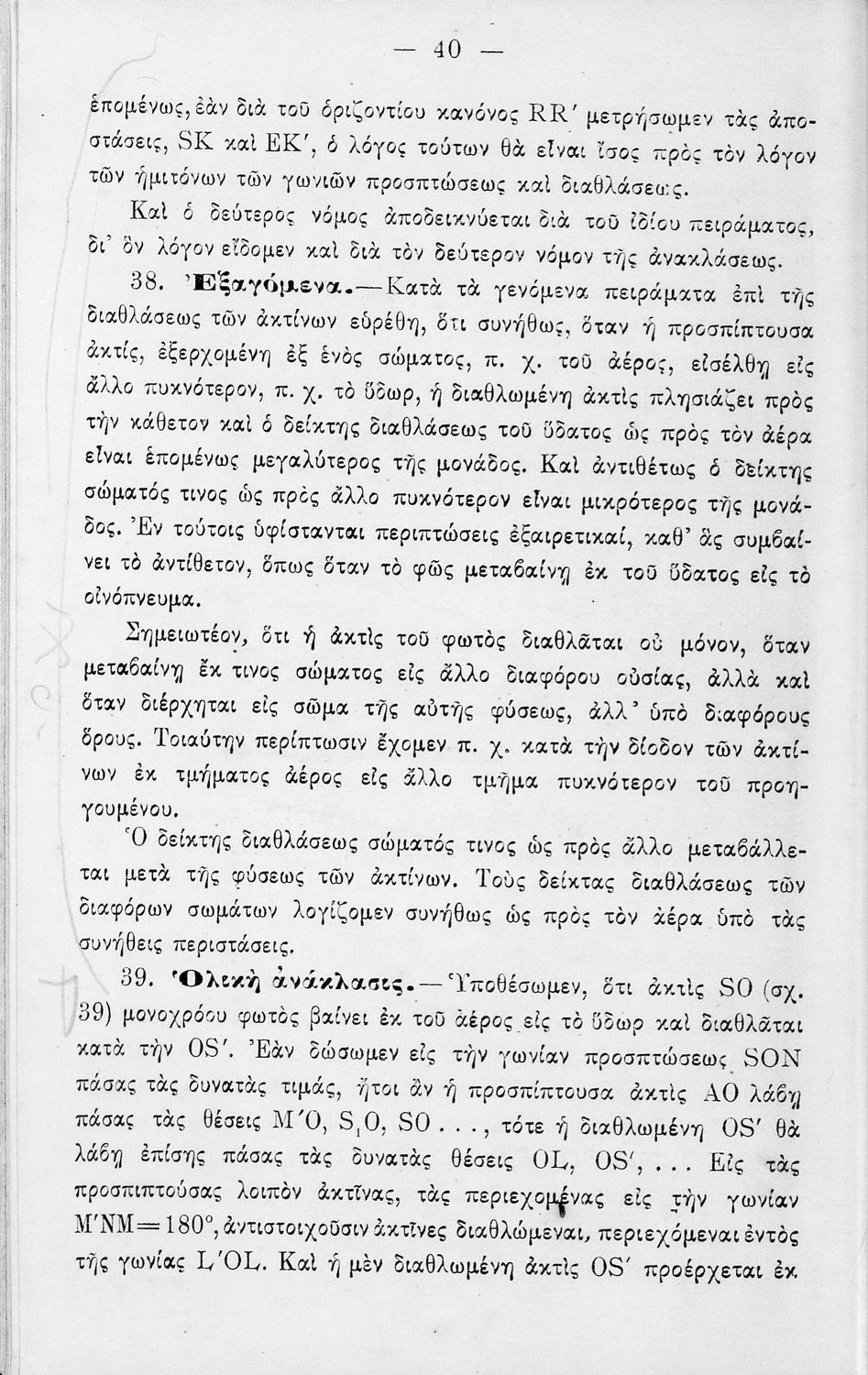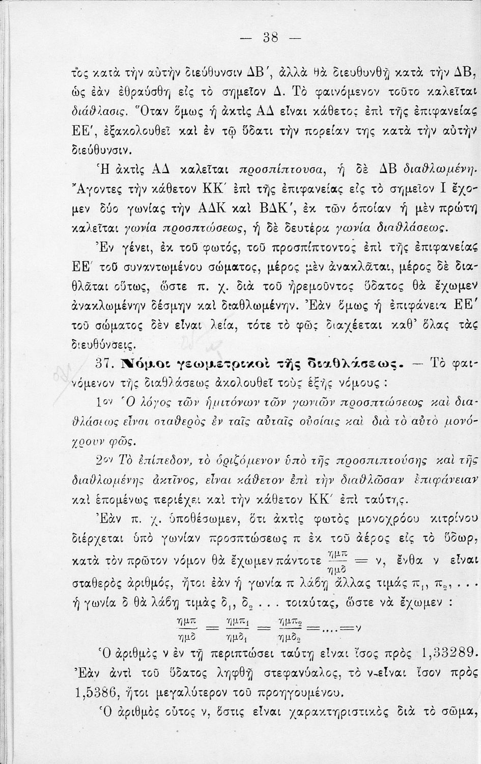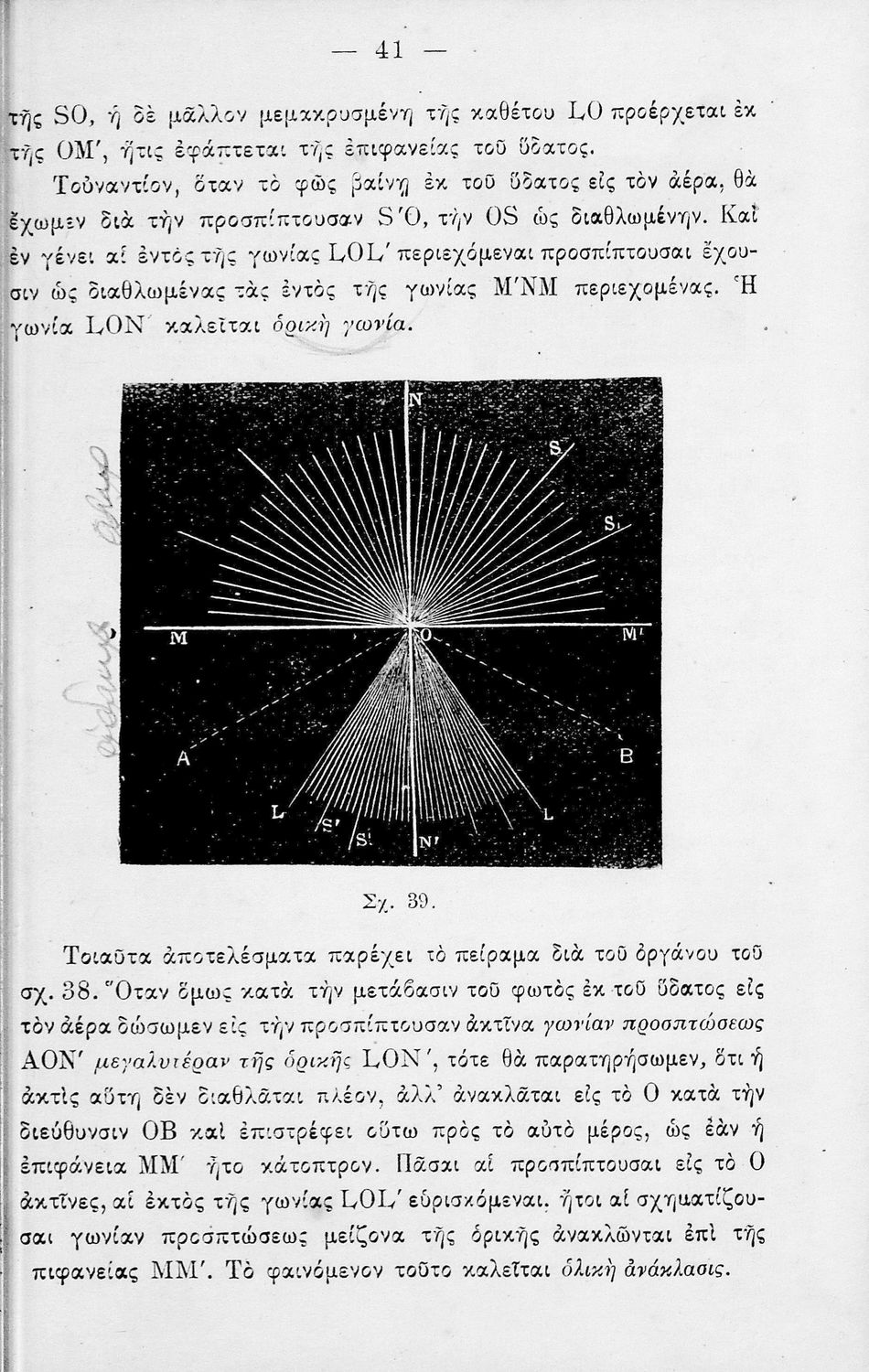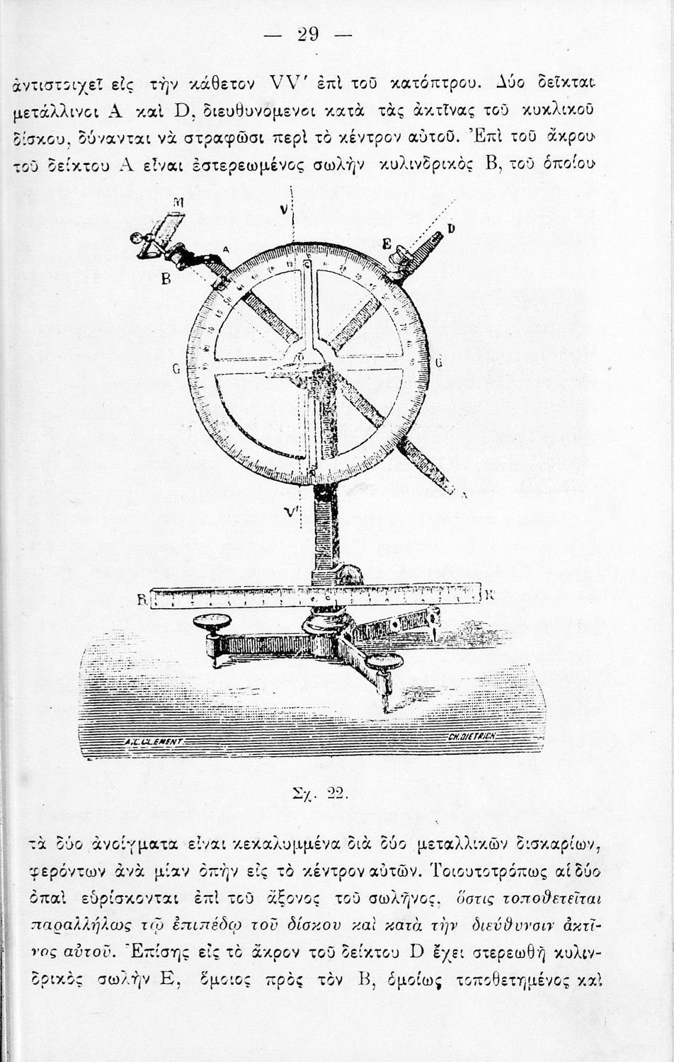 Βαθμίδα εκπαίδευσης: Δευτεροβάθμια Τάξη: Δ' Γυμνασίου Μάθημα: Φυσική Γλώσσα: Καθαρεύουσα Παρουσίαση περιεχομένου: Σχολικό εγχειρίδιο της Δ΄ Γυμνασίου για το μάθημα της Φυσικής. Παρέχει βασικές γνώσεις της φυσικής επιστήμης και της χημείας. Αναλύει τις ιδιότητες των σωμάτων, καθώς και της θερμότητας, του ηλεκτρισμού και του μαγνητισμού, την υδροστατική, την βαρύτητα και την αεροστατική. Αναφέρει πολλά από τα όργανα, που χρησιμοποιούνται στη φυσική, καθώς και τις πρακτικές εφαρμογές της επιστήμης στην καθημερινότητα. Περιέχει εικόνες και σχεδιαγράμματα τα οποία βοηθούν τη διδασκαλία. |