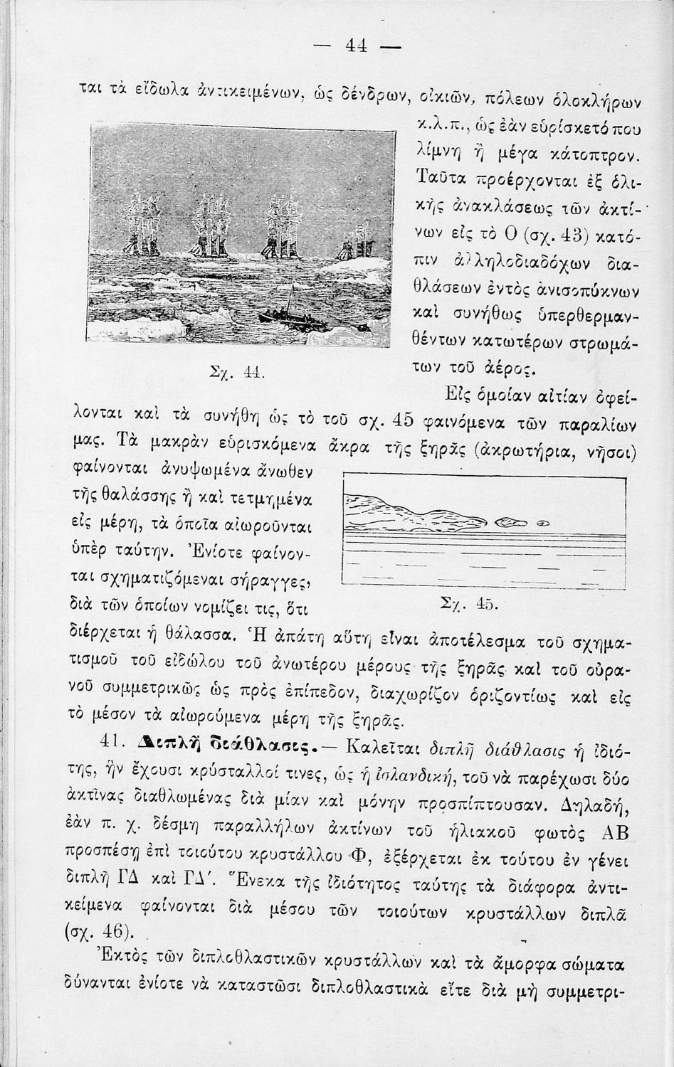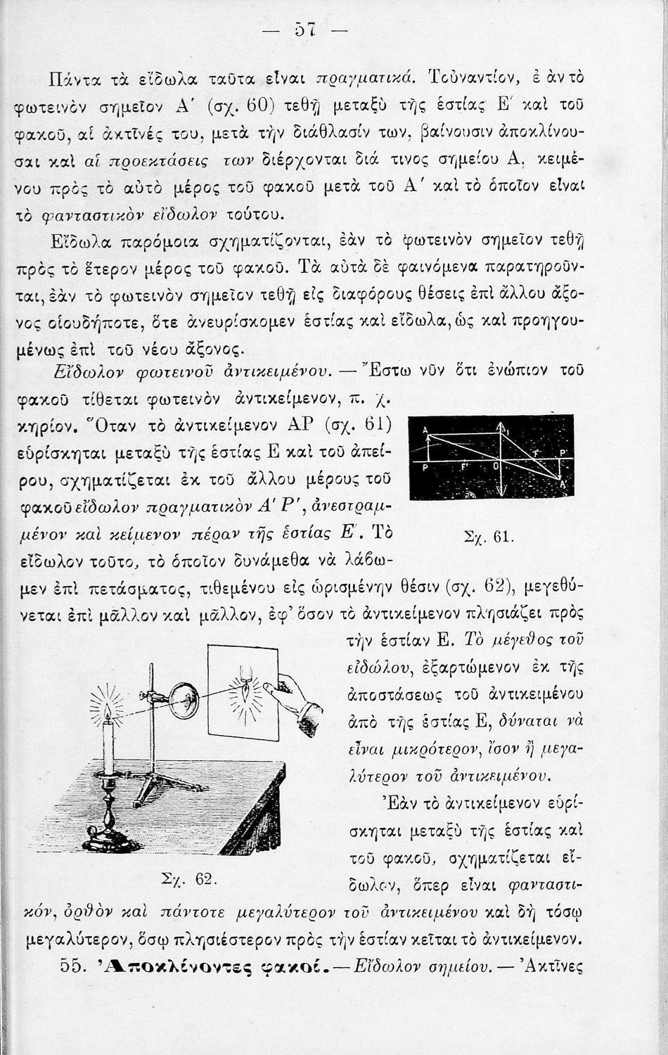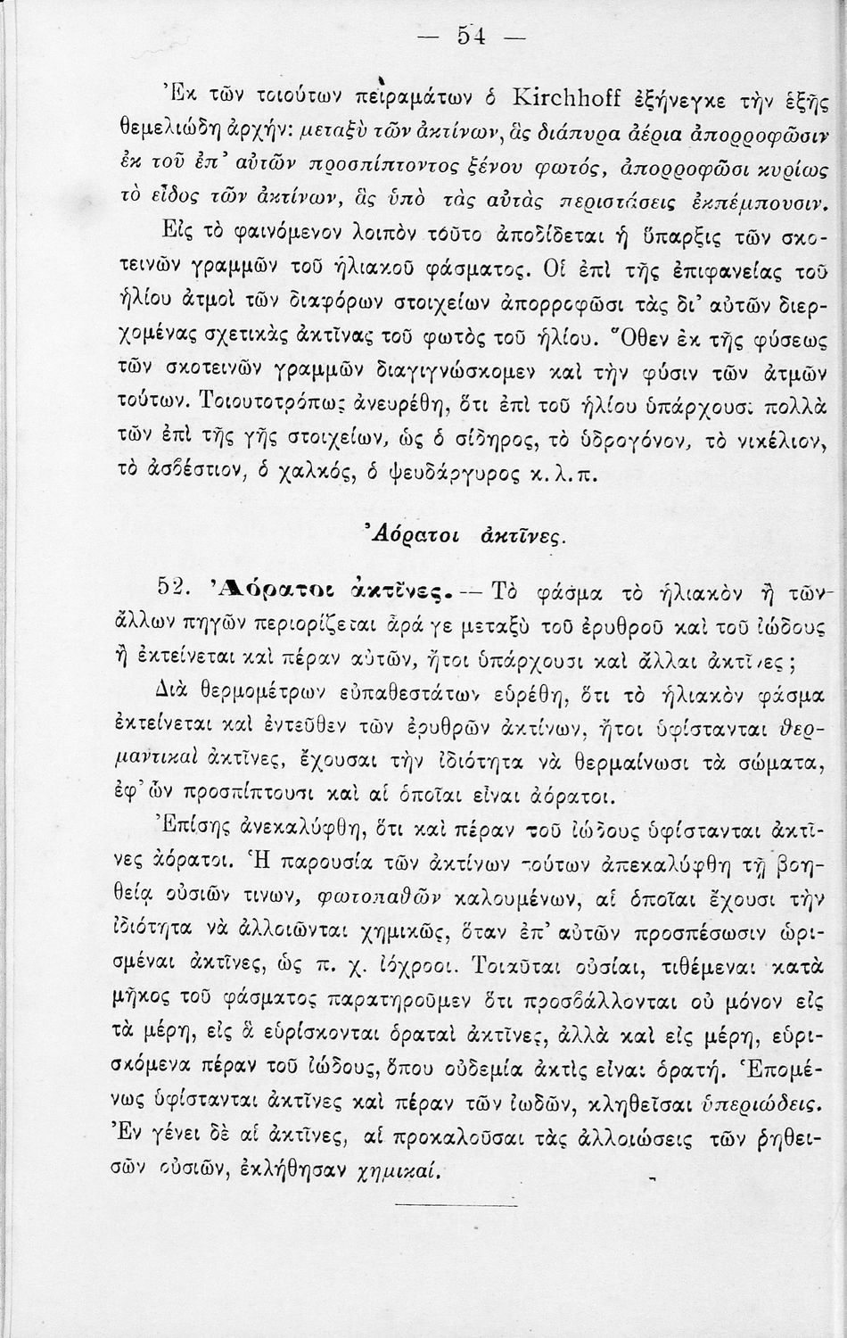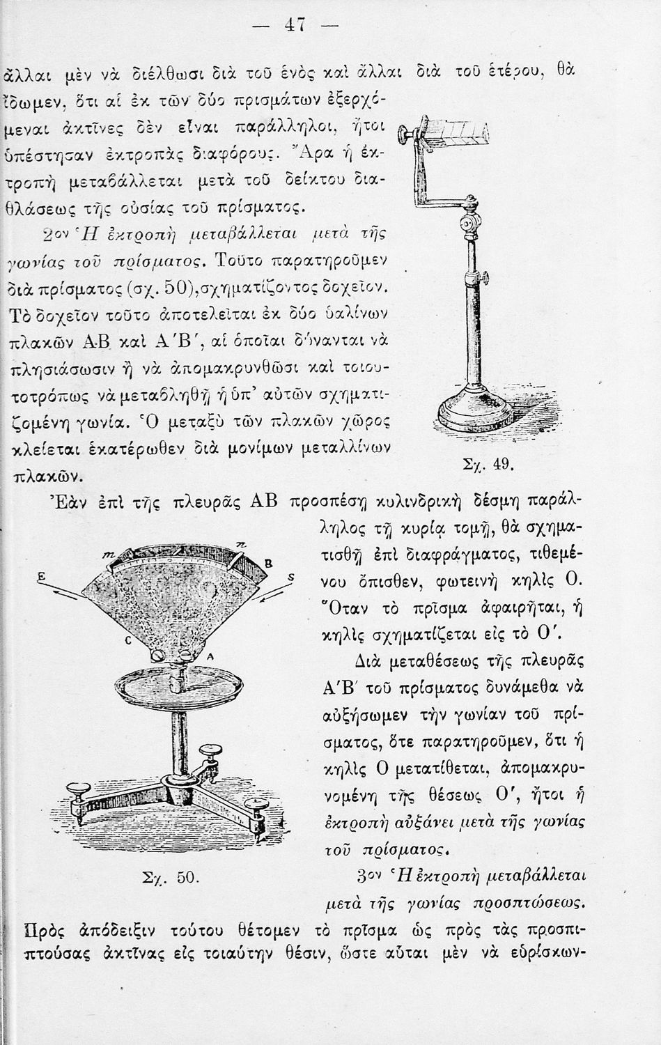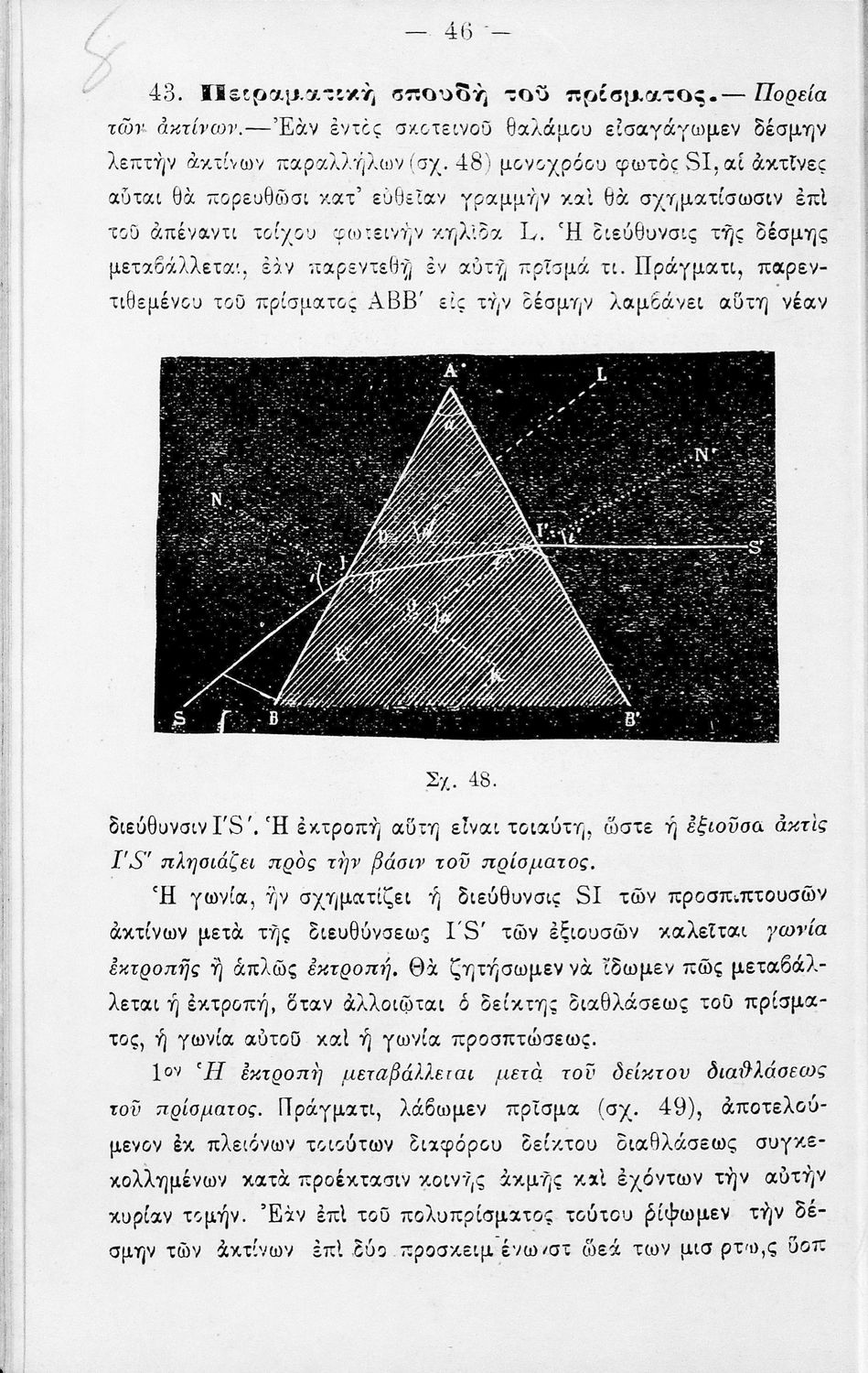 Βαθμίδα εκπαίδευσης: Δευτεροβάθμια Τάξη: Δ' Γυμνασίου Μάθημα: Φυσική Γλώσσα: Καθαρεύουσα Παρουσίαση περιεχομένου: Σχολικό εγχειρίδιο της Δ΄ Γυμνασίου για το μάθημα της Φυσικής. Παρέχει βασικές γνώσεις της φυσικής επιστήμης και της χημείας. Αναλύει τις ιδιότητες των σωμάτων, καθώς και της θερμότητας, του ηλεκτρισμού και του μαγνητισμού, την υδροστατική, την βαρύτητα και την αεροστατική. Αναφέρει πολλά από τα όργανα, που χρησιμοποιούνται στη φυσική, καθώς και τις πρακτικές εφαρμογές της επιστήμης στην καθημερινότητα. Περιέχει εικόνες και σχεδιαγράμματα τα οποία βοηθούν τη διδασκαλία. |