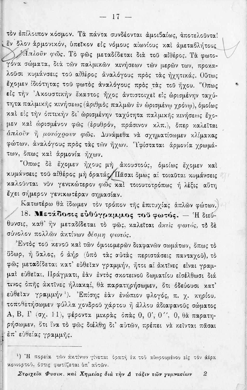 Στοιχεία Φυσικής και Χημείας τόμος Β΄ δια την Τετάρτη Τάξιν των Γυμνασίων