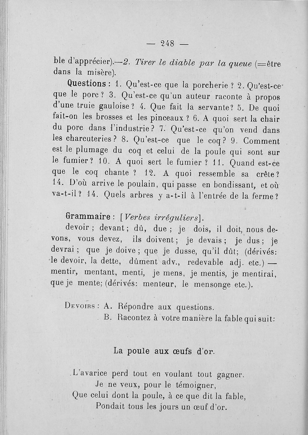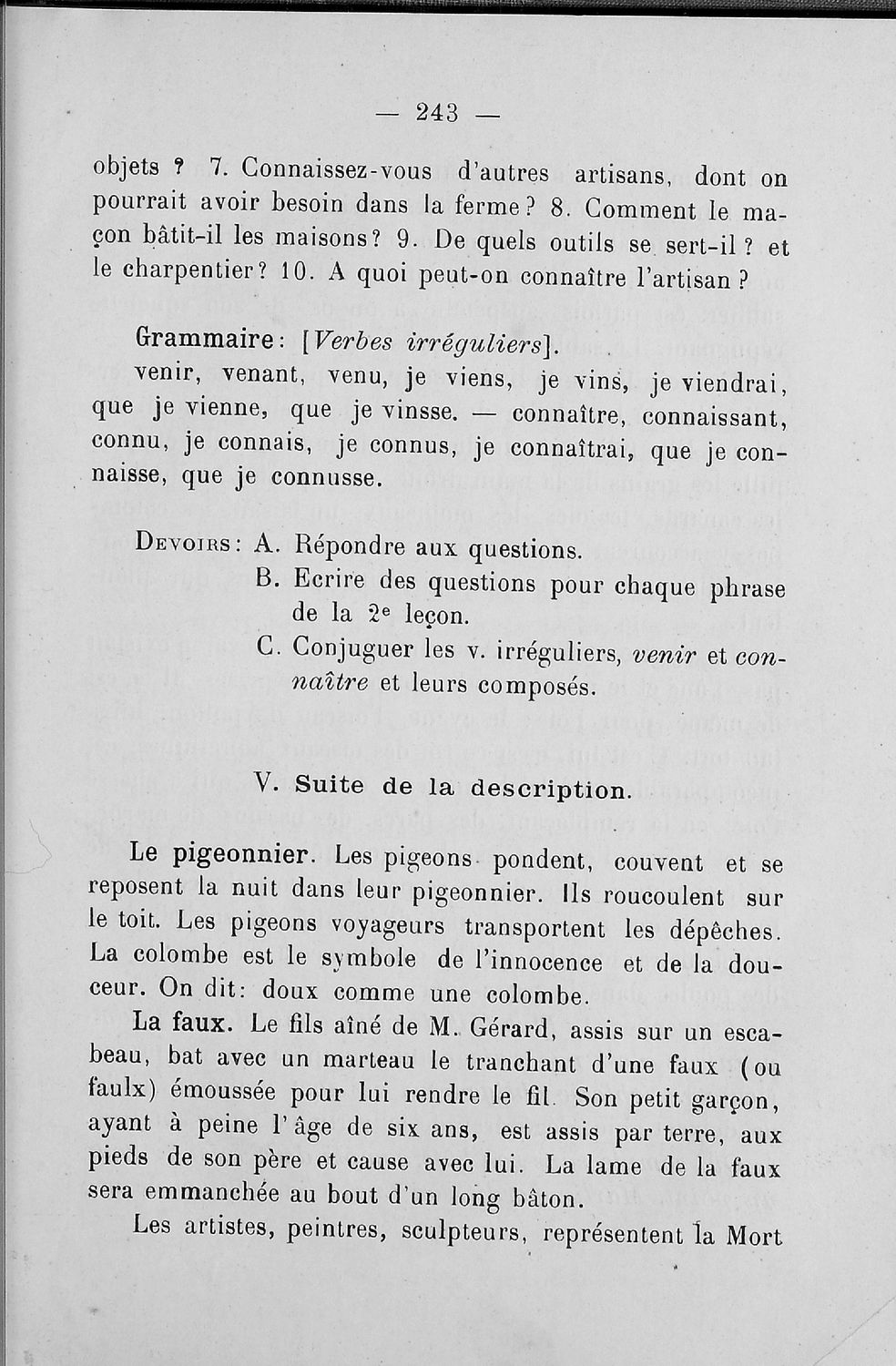 Σχολικό εγχειρίδιο Γαλλικών που περιλαμβάνει κείμενα, λεξιλόγιο και ασκήσεις. Ο συγγραφέας ήταν καθηγητής της Δημόσιας Εμπορικής Σχολής Αθηνών και του Αρσακείου.