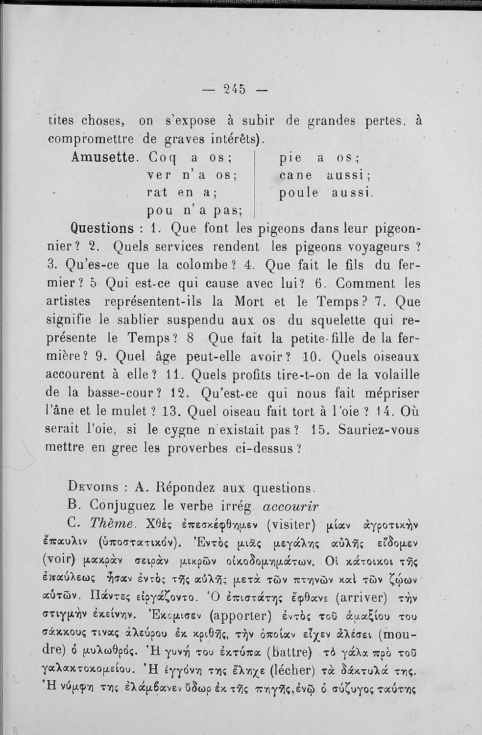 Γραμματική της Γαλλικής γλώσσας για τα Τετρατάξια Γυμνάσια, τη Γ΄ τάξη των Αστικών Σχολείων Θηλέων και τα Διδασκαλεία της Δημοτικής Εκπαίδευσης που περιλαμβάνει θεωρία, ασκήσεις και λεξιλόγιο.