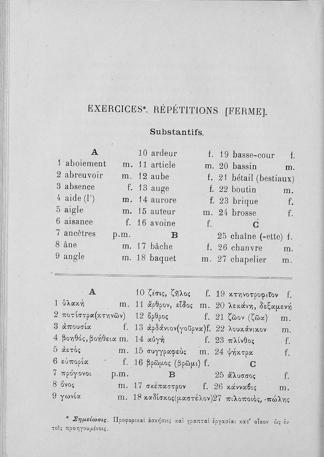 Μέθοδος προς εποπτικήν και πρακτικήν διδασκαλίαν της γαλλικής γλώσσης δια τας κατωτέρας τάξεις των Γυμνασίων του Βαρβακείου Λυκείου και των εμπορικών σχολών επί τη βάσει των εικόνων του Ed. Holzel.